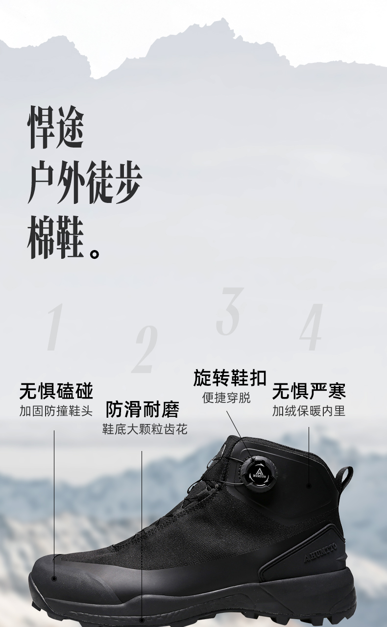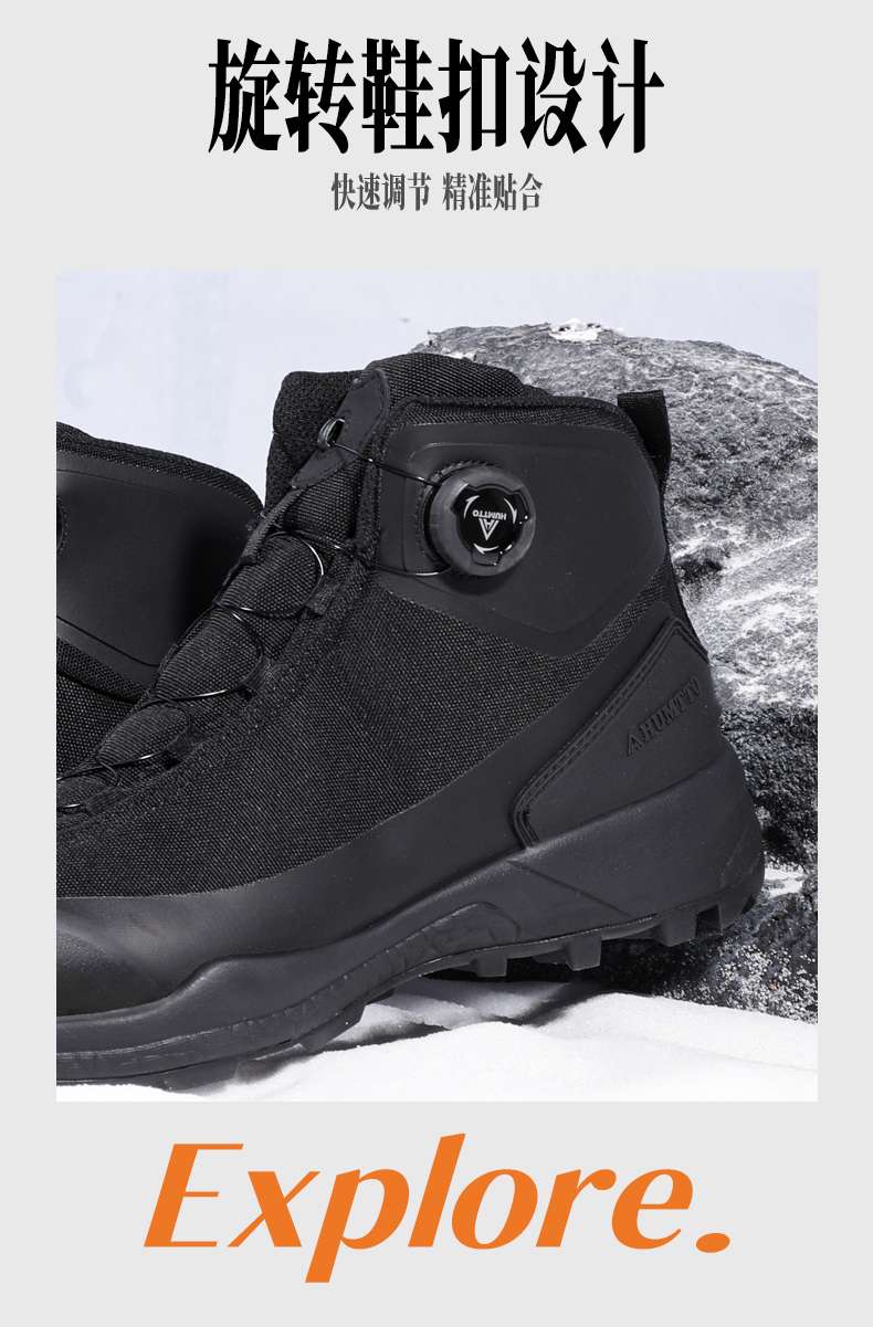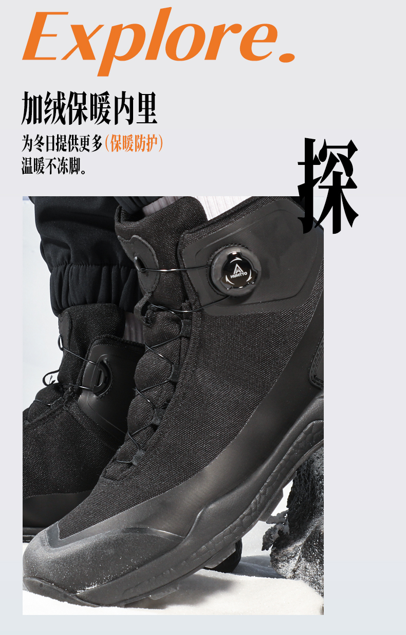 Haitu Winter Cotton Shoes for Men, Thickened and Warm Snow Boots, Outdoor Fleece-Lined Sneakers, Men's Non-Slip High-Top Hiking Shoes