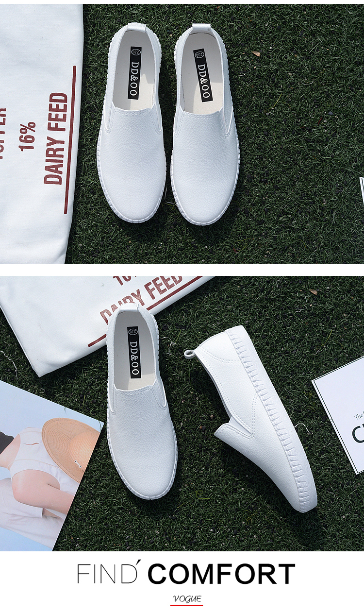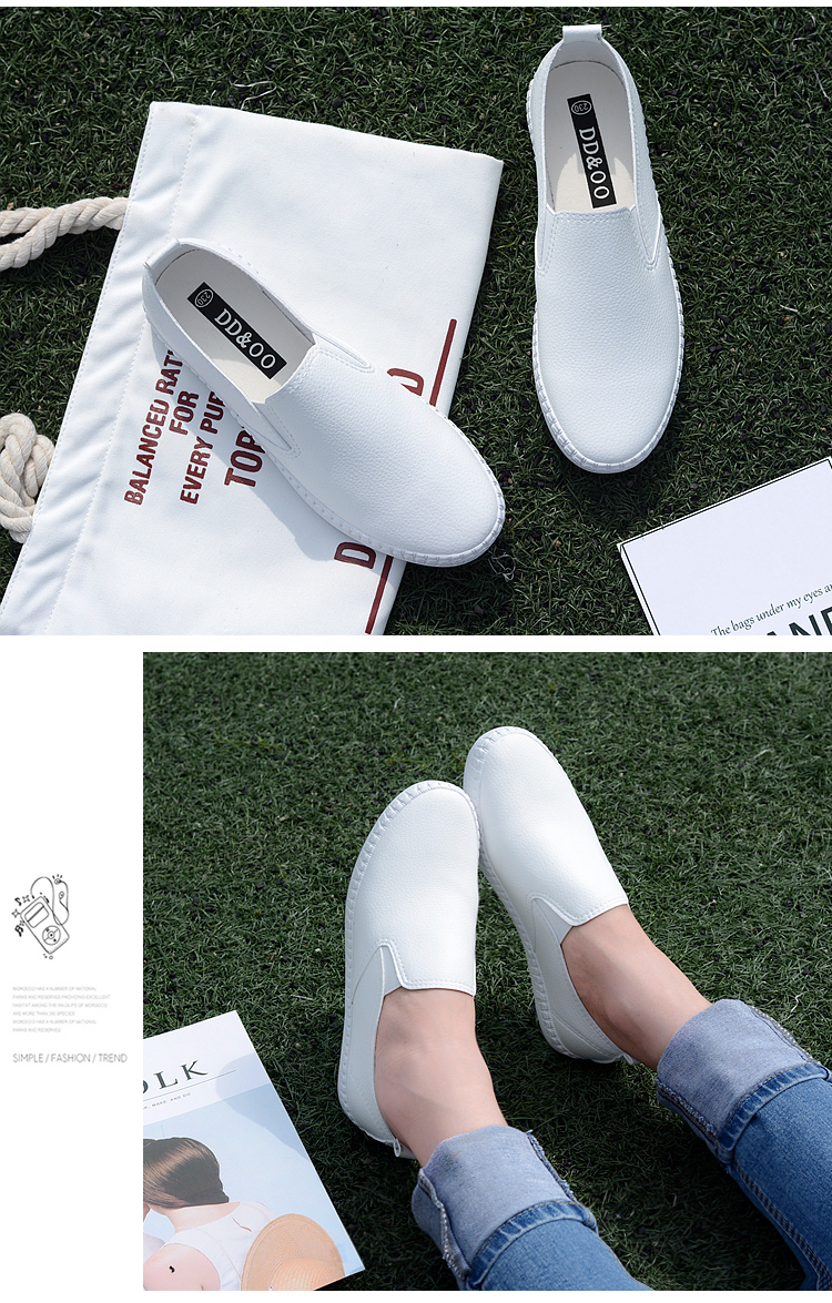Summer and Autumn Breathable Leather Thick-Soled Versatile Women's Loafers Slip-On Lazy Shoes Women's White Shoes Slip-On Casual Sneakers