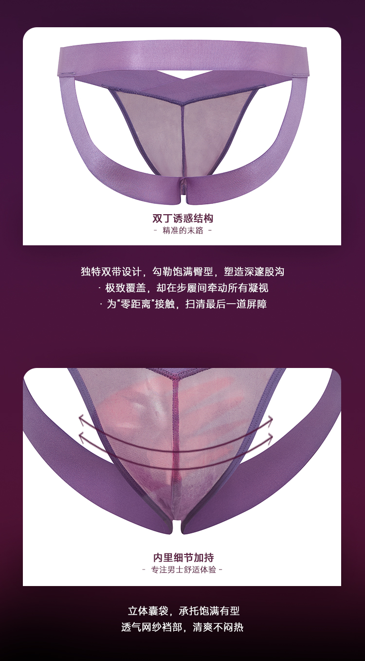 Venteryu Assassin Temperature Change See-Through Men's Briefs Men's Charming Purple Breathable Underwear