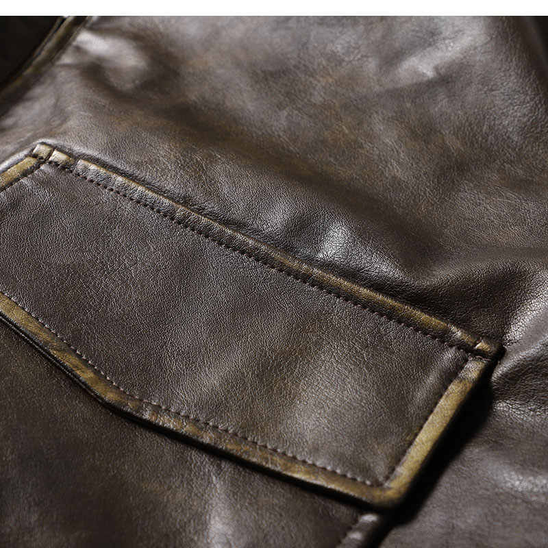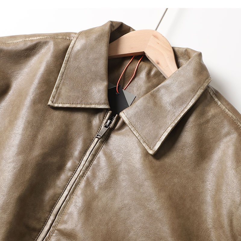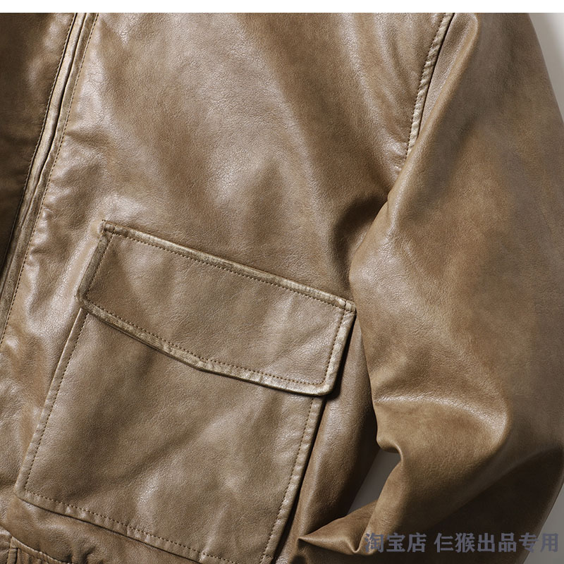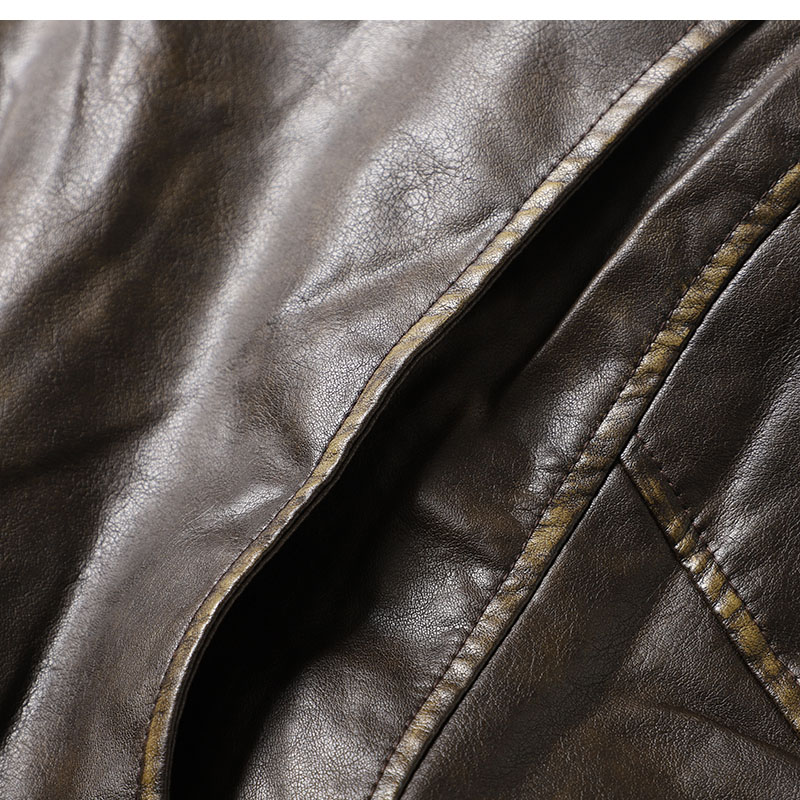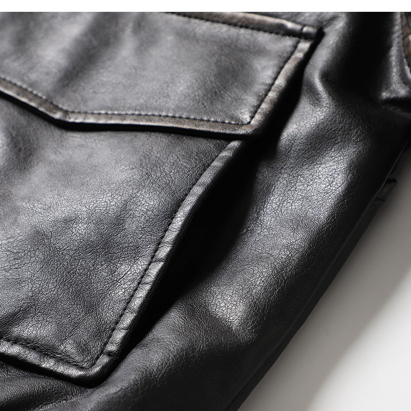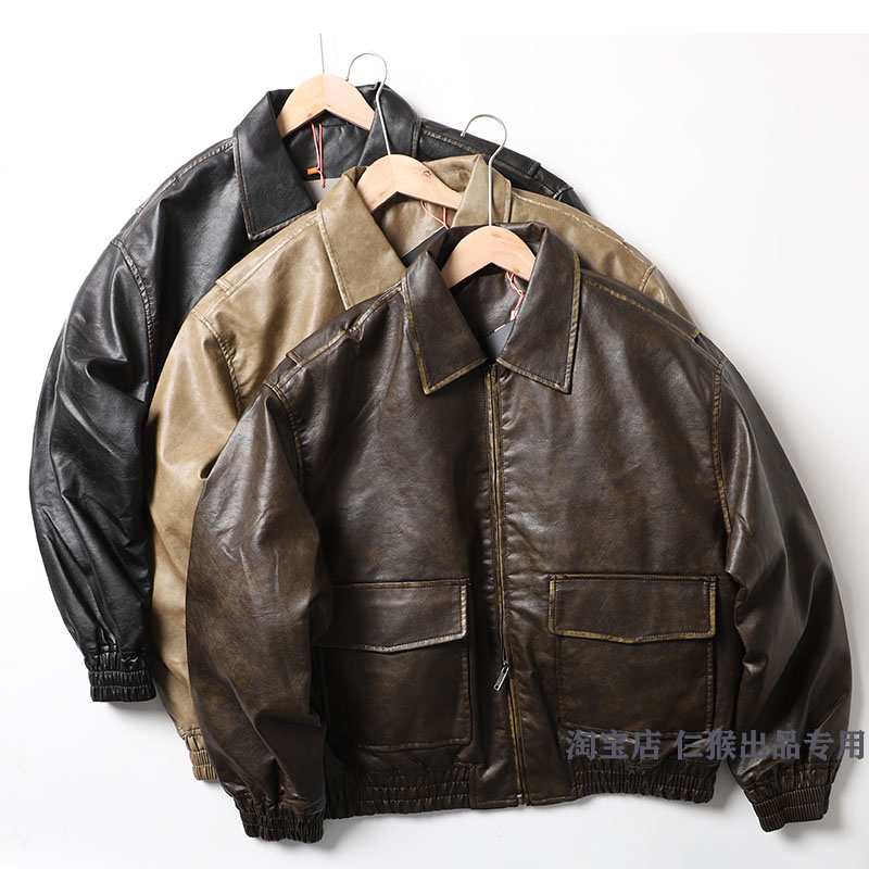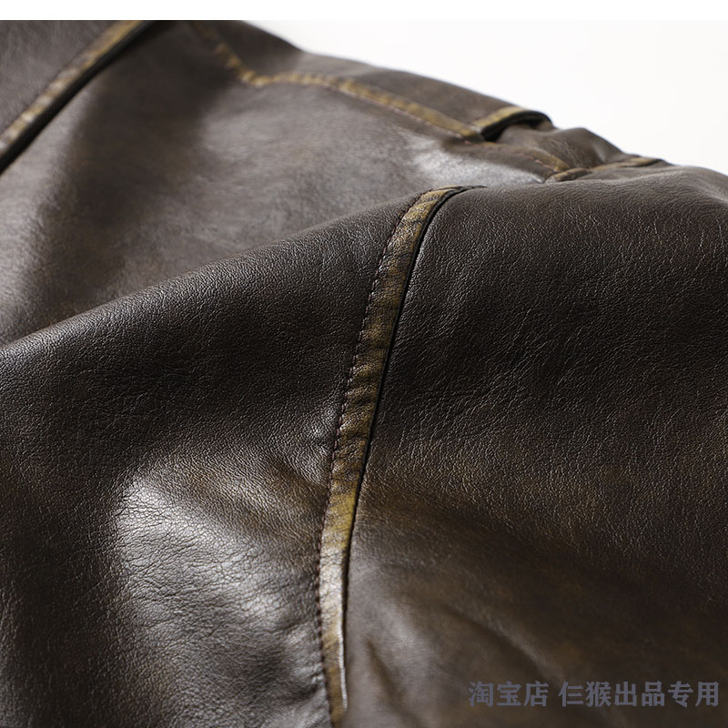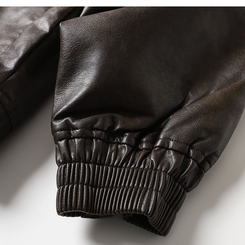 American-Style Vintage Washed Distressed Pu Leather Padded Warm Leather Jacket for Men, Loose Biker Jacket, Trendy Leather Jacket