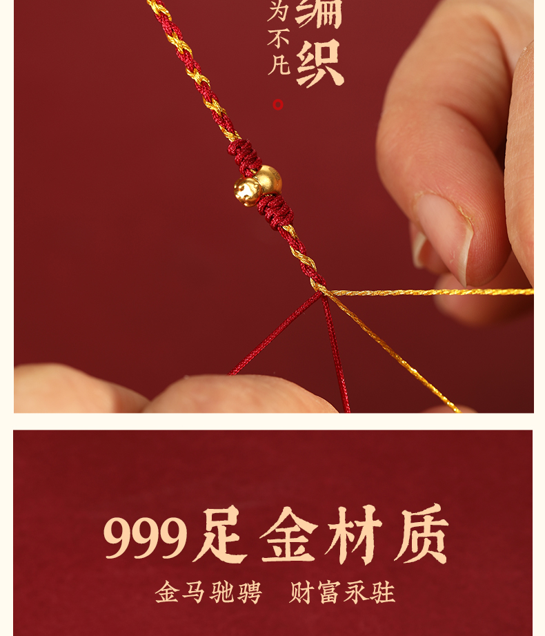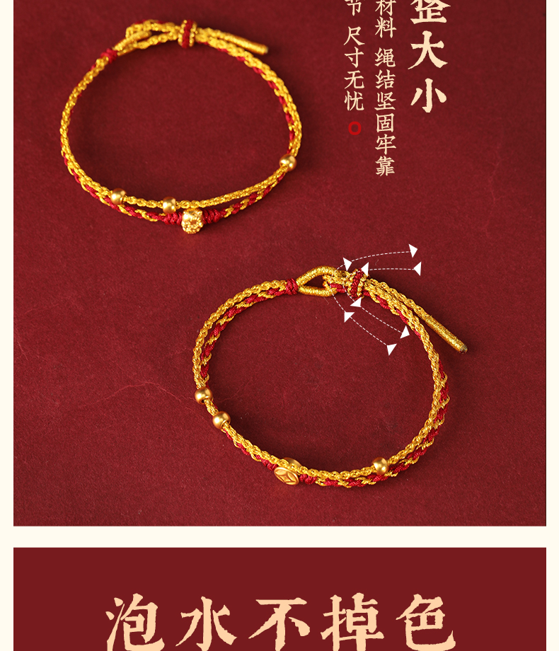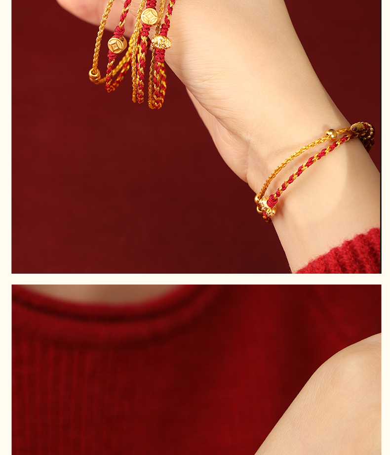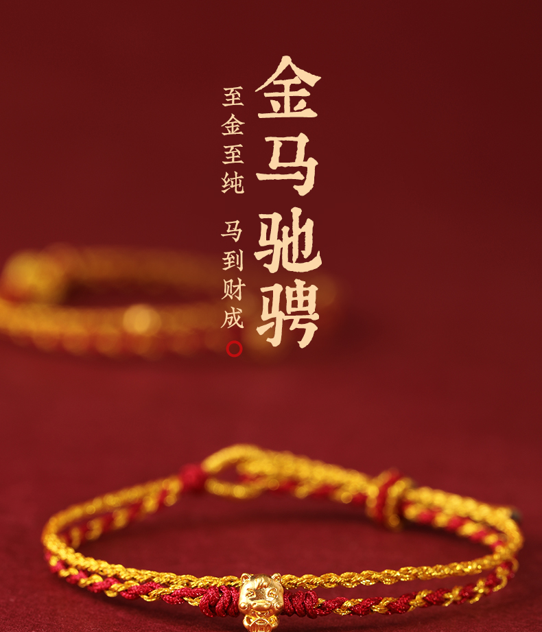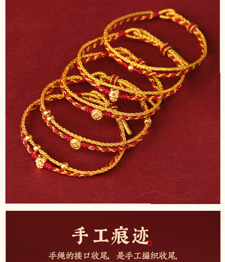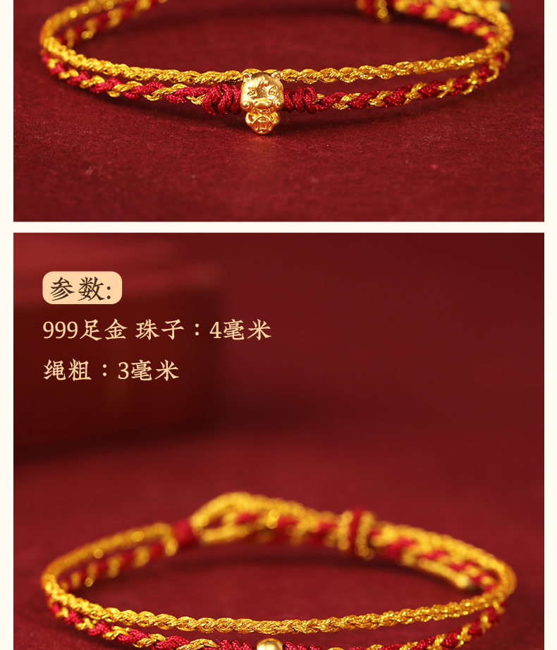 999 Pure Gold Pony Red String Bracelet with Gold Fortune Beads, Double-Circle Auspicious Bracelet for Women, High-End Zodiac Year Bracelet for Men