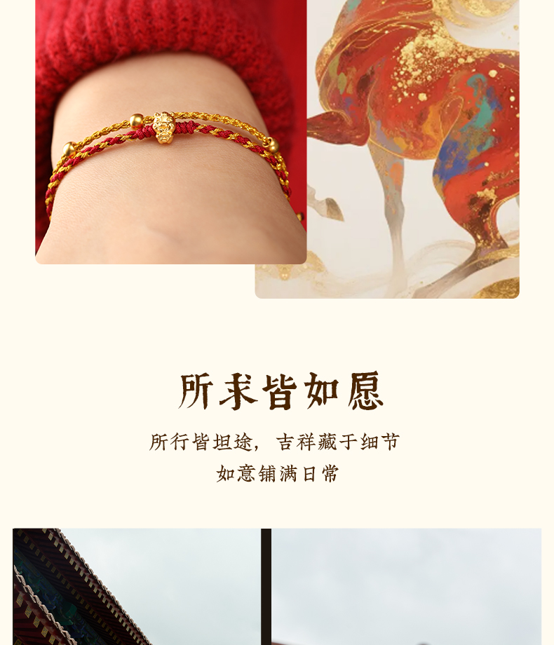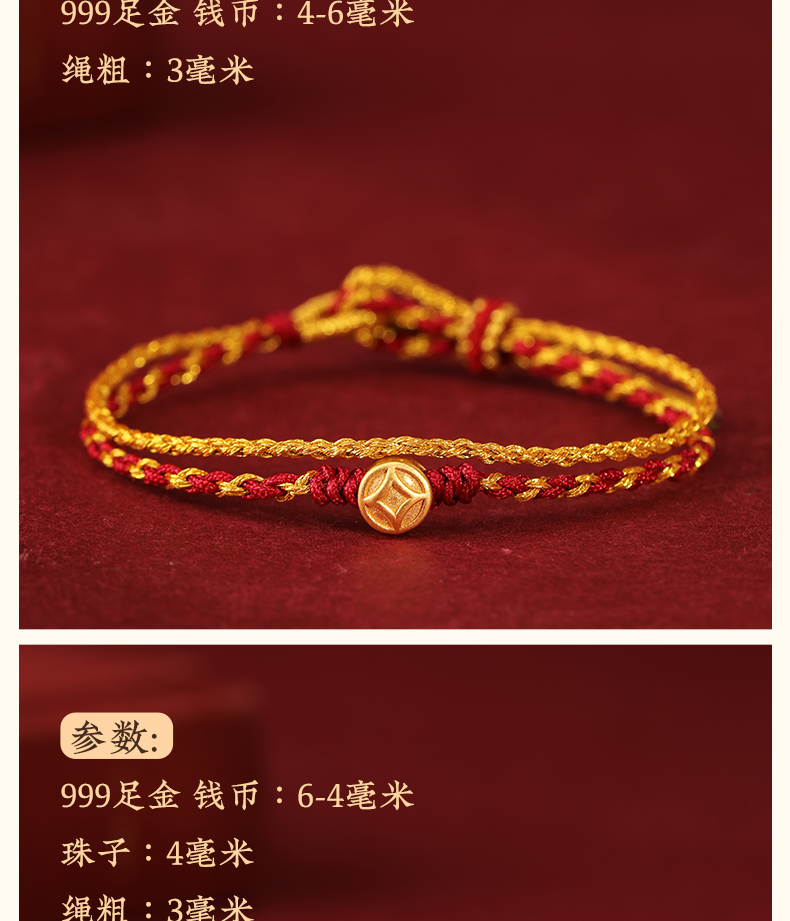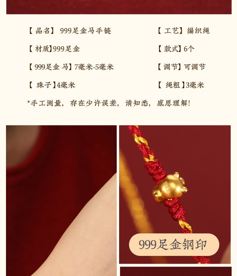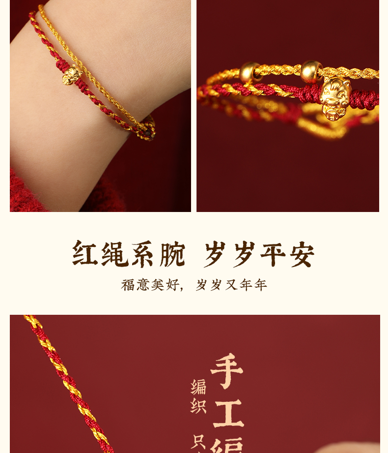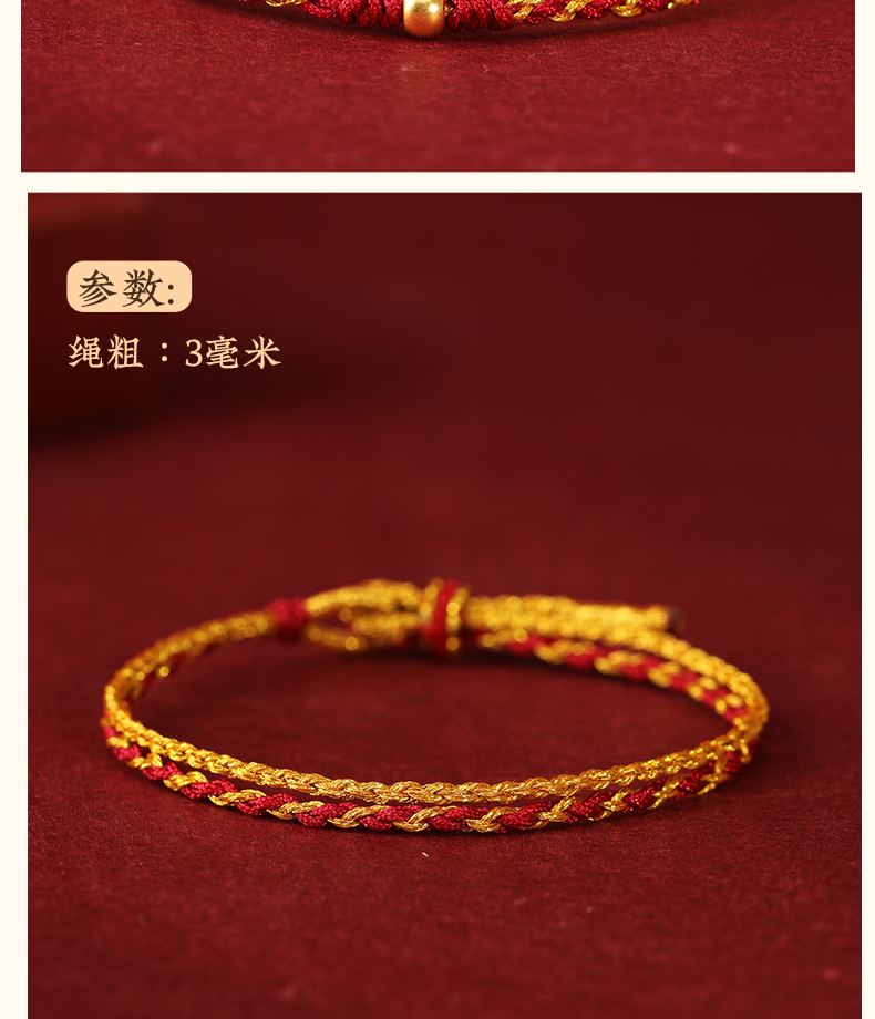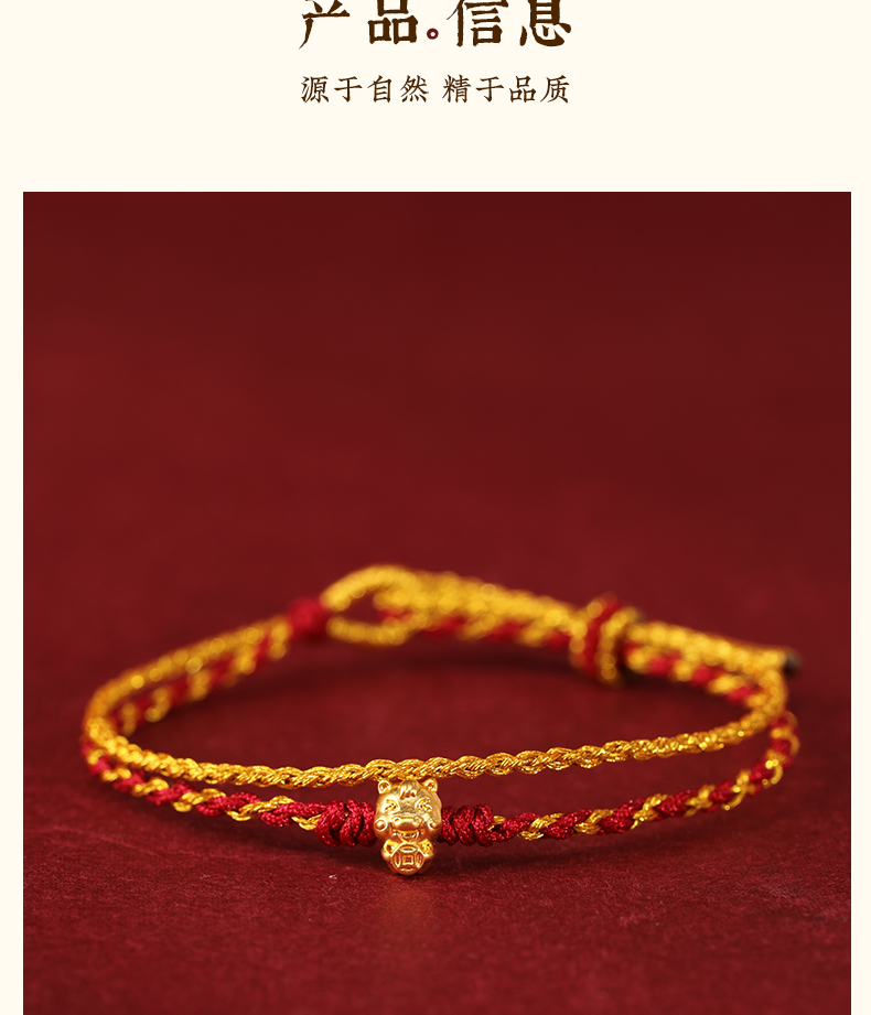 999 Pure Gold Pony Red String Bracelet with Gold Fortune Beads, Double-Circle Auspicious Bracelet for Women, High-End Zodiac Year Bracelet for Men