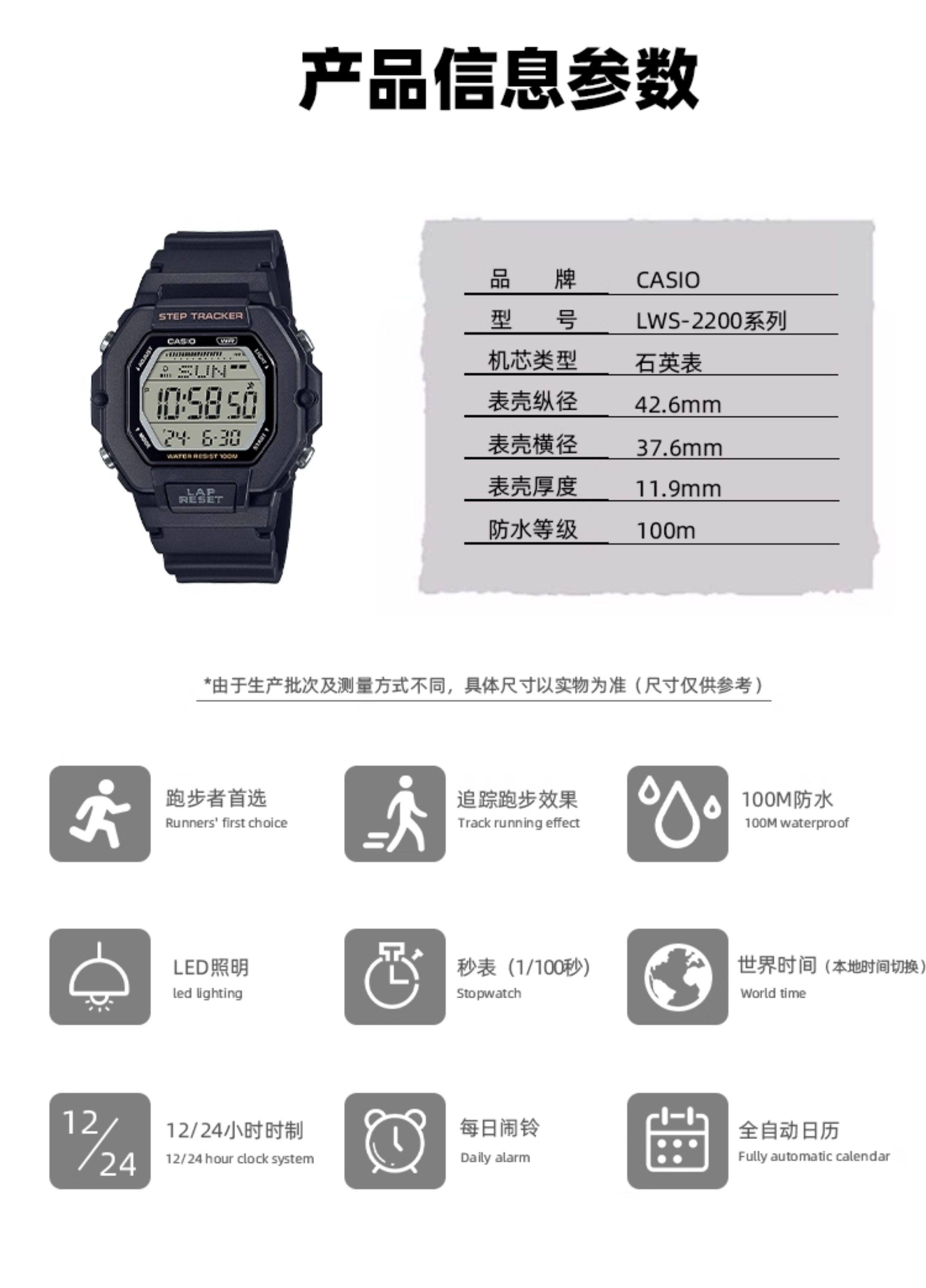 Casio Casio Watch Junior High School Students Men and Women Same Style Sports Small Square Student Digital Watch Lws-2200H