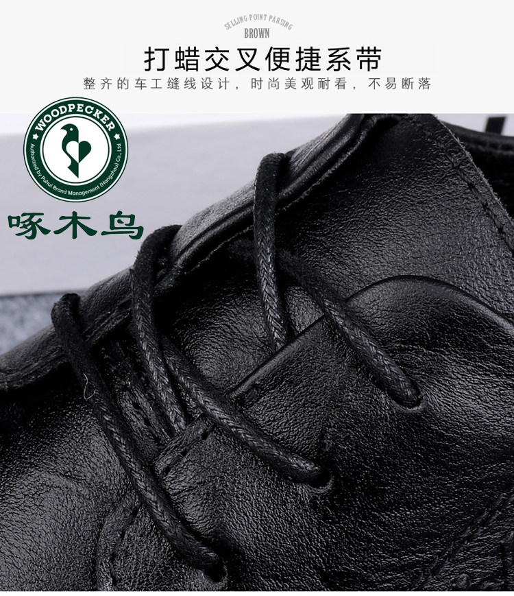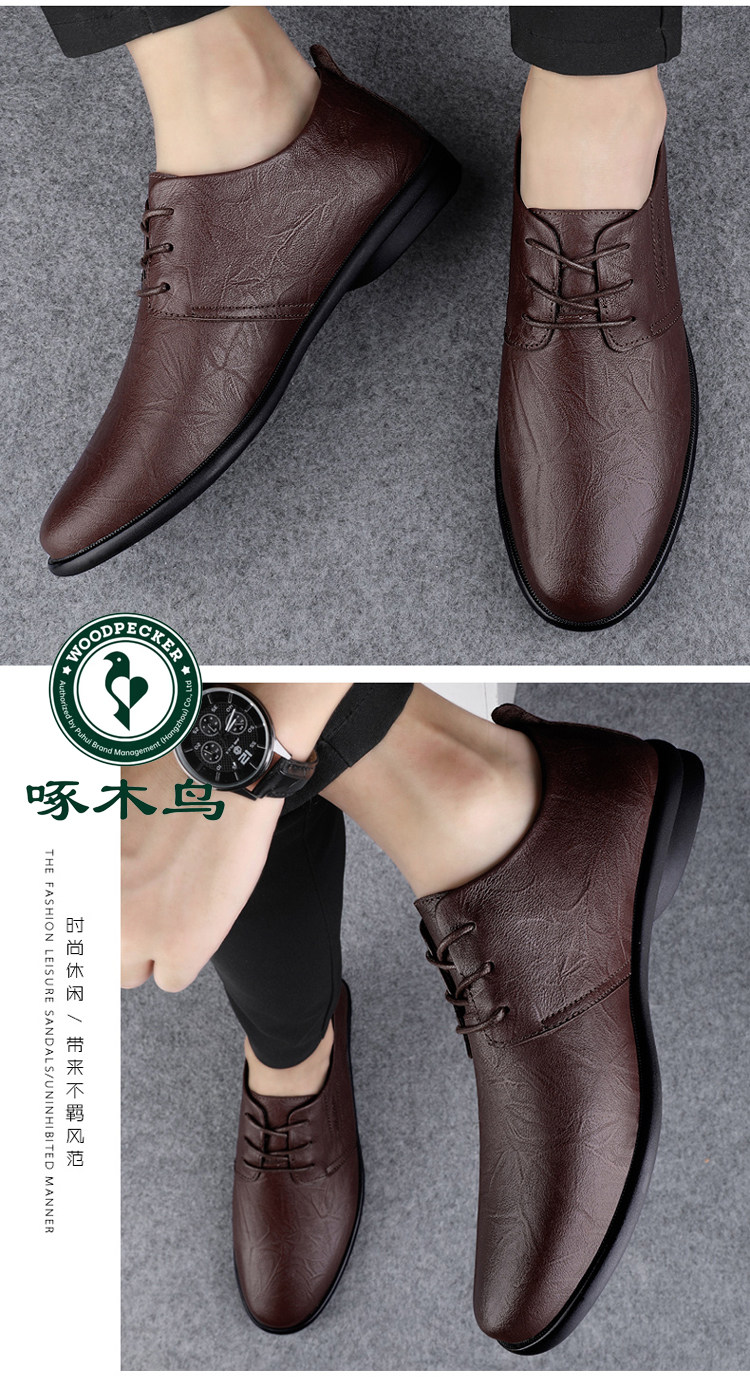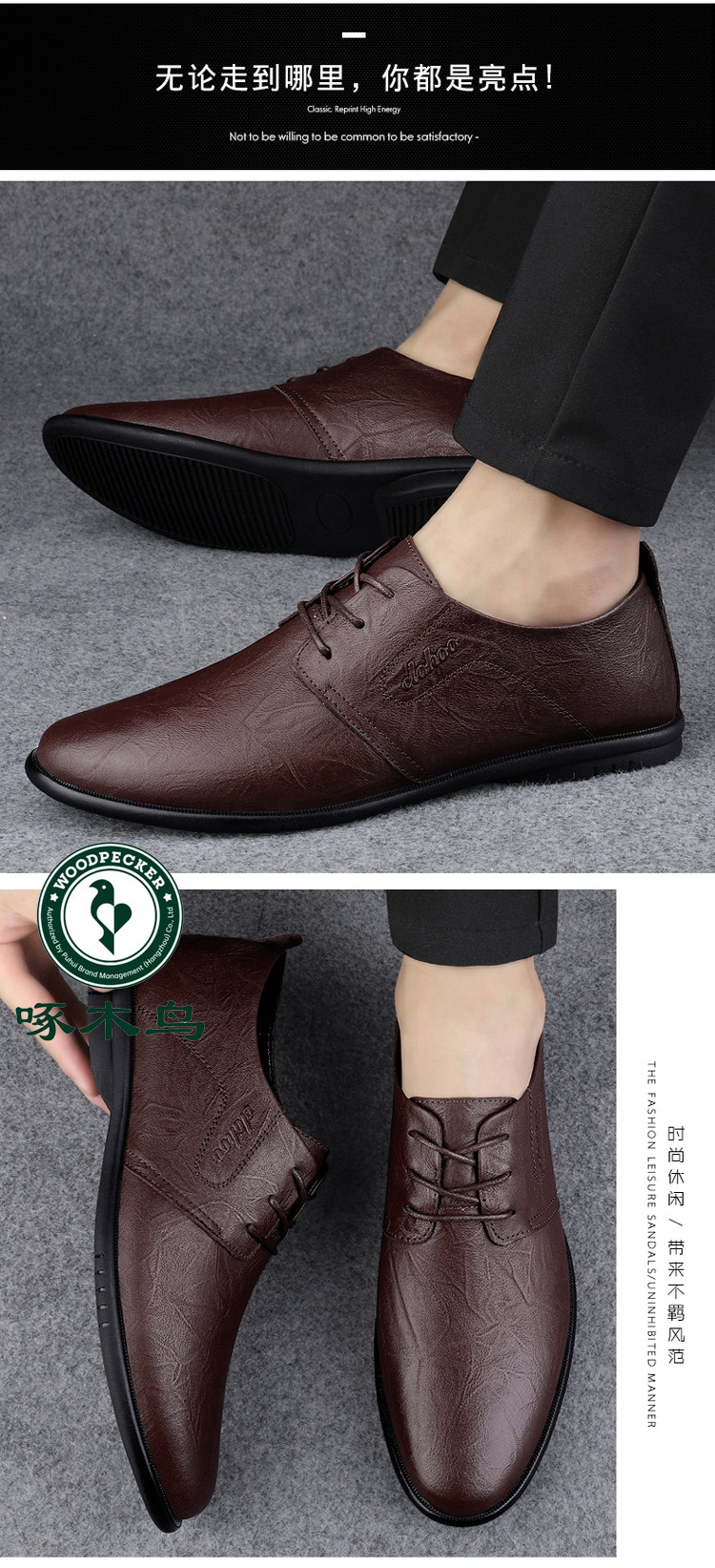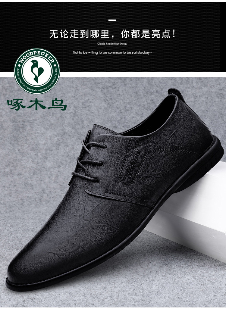 Woodpecker Autumn Business Casual Fashion Shoes Genuine Leather Lace-Up Men's Leather Shoes Soft Leather Soft Sole Breathable Driving Shoes