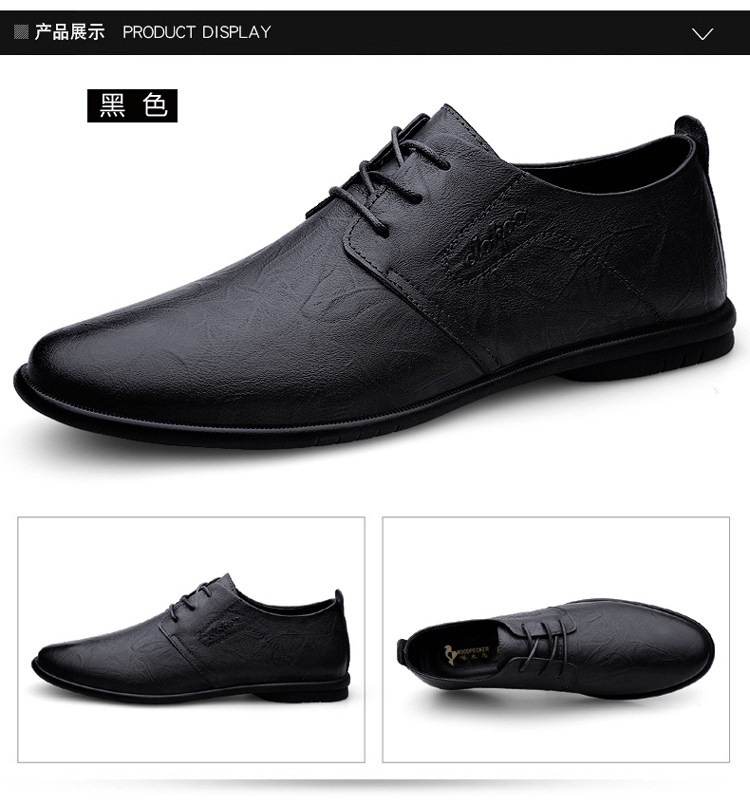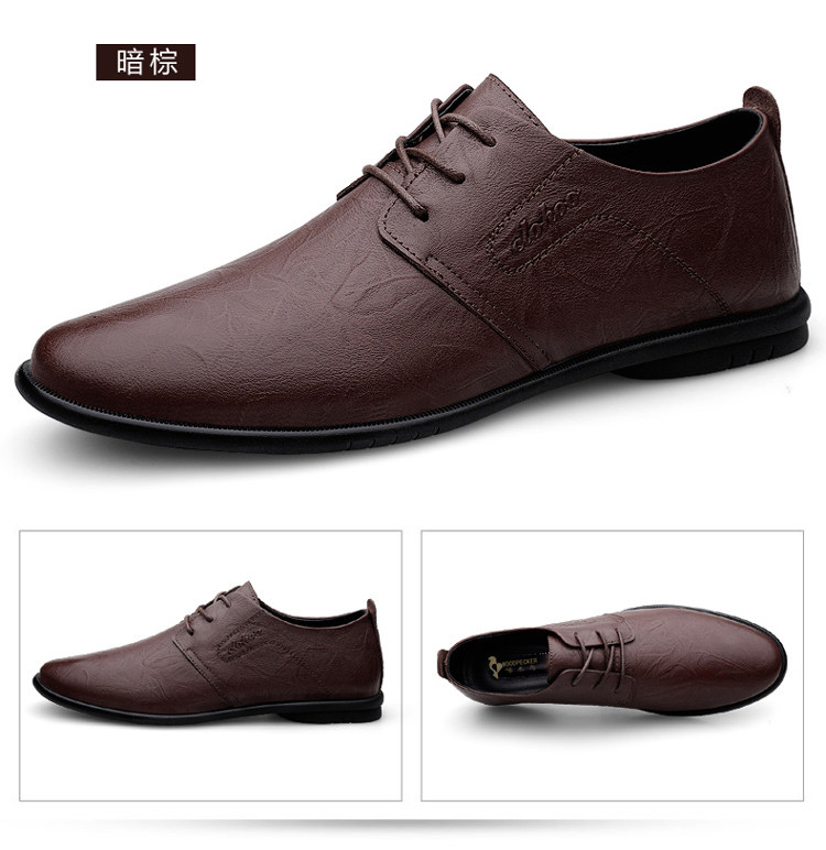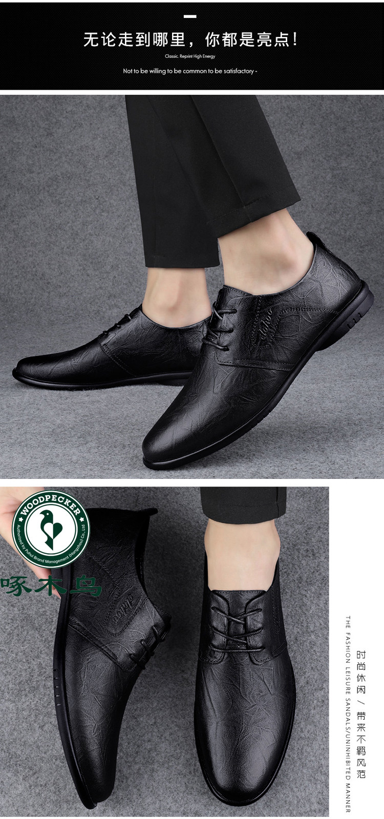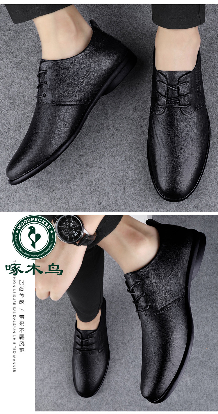 Woodpecker Autumn Business Casual Fashion Shoes Genuine Leather Lace-Up Men's Leather Shoes Soft Leather Soft Sole Breathable Driving Shoes