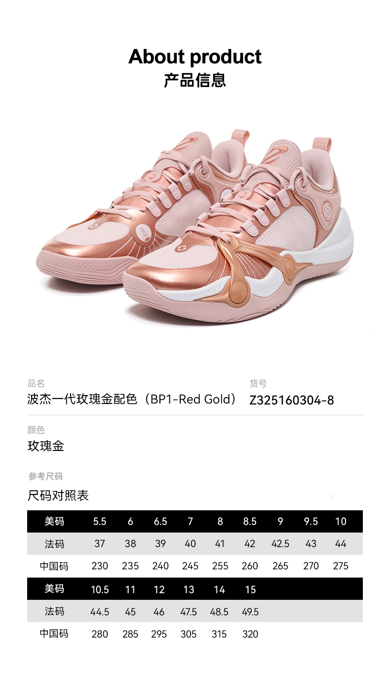 Zhuizhe Bojie First Generation Rose Gold Basketball Shoes, Practical Low-Top Non-Slip Wear-Resistant Sports Shoes, Couple Gift Trendy Shoes