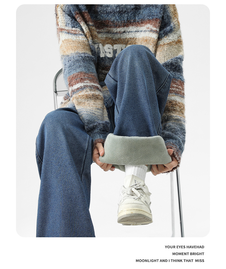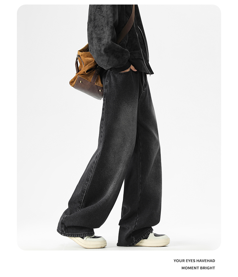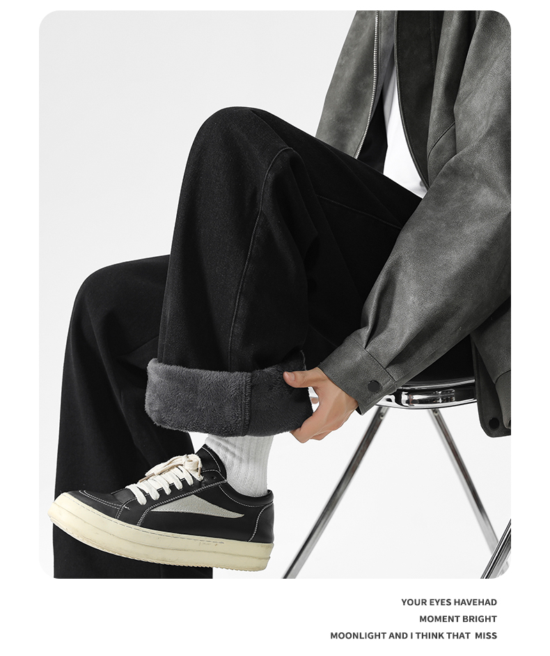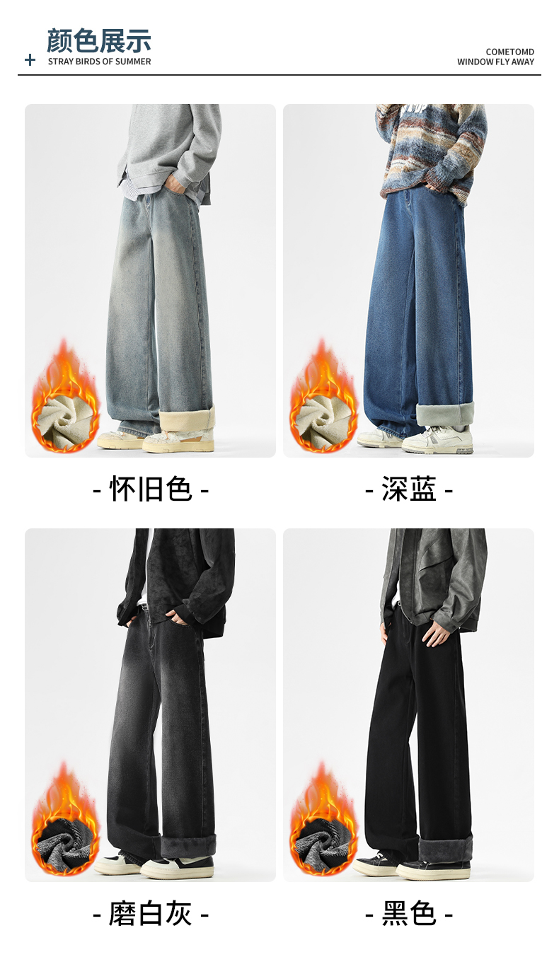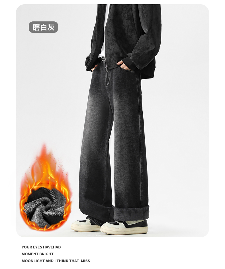 Warrior Brand Autumn and Winter 2025 New Men's Jeans, Loose Wide-Leg Straight Pants with Fleece Lining and Thickened Long Trousers for Men