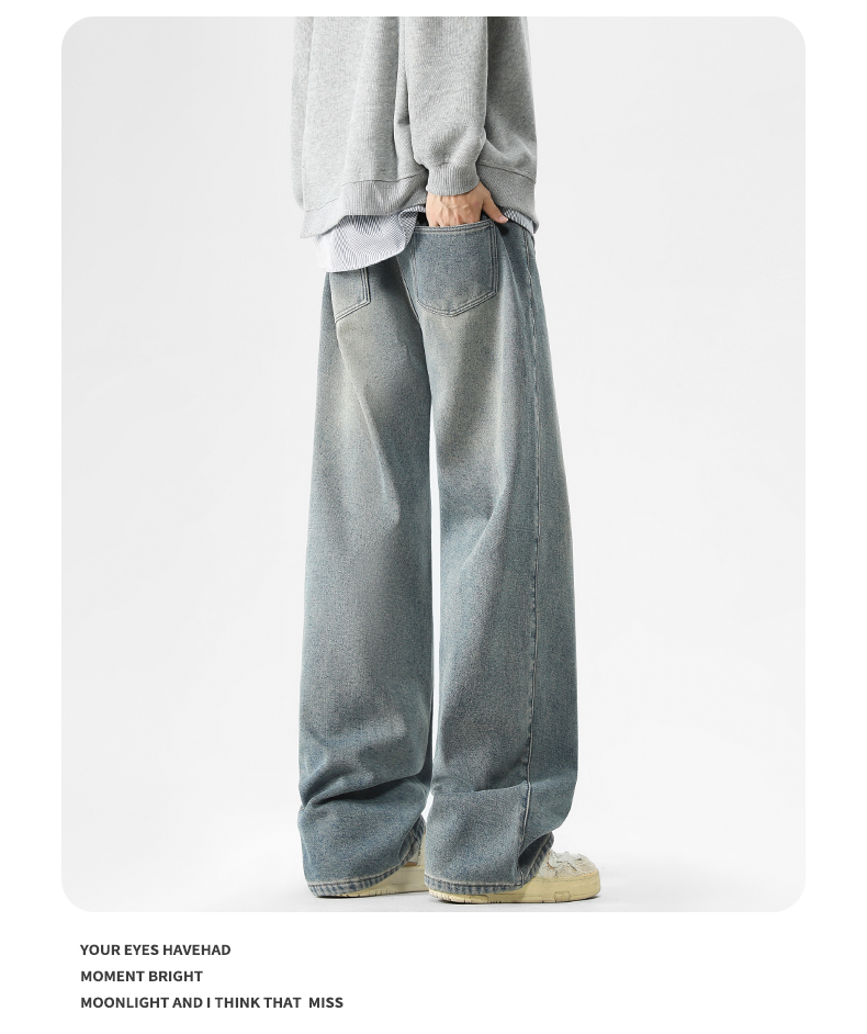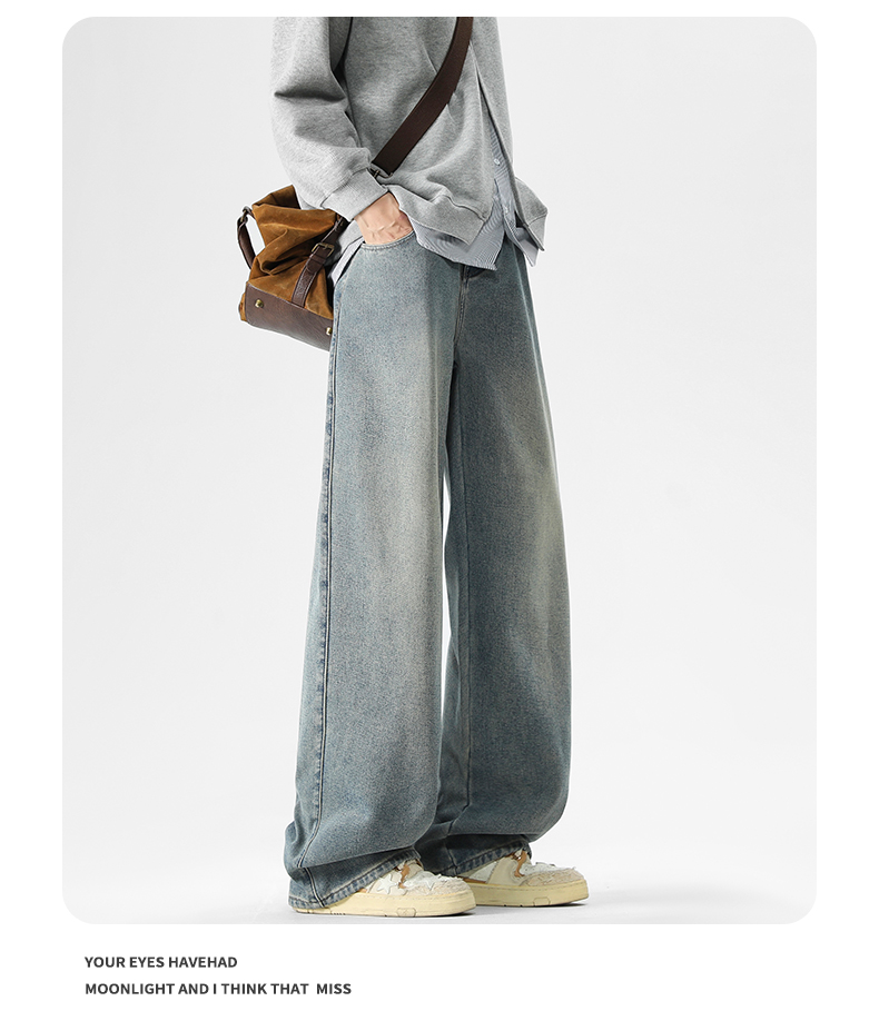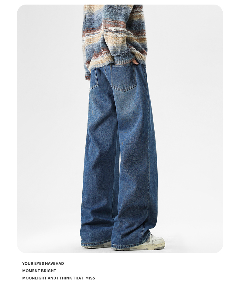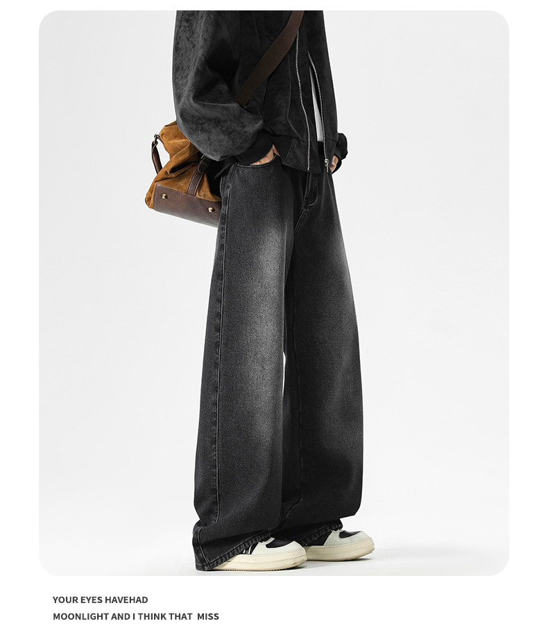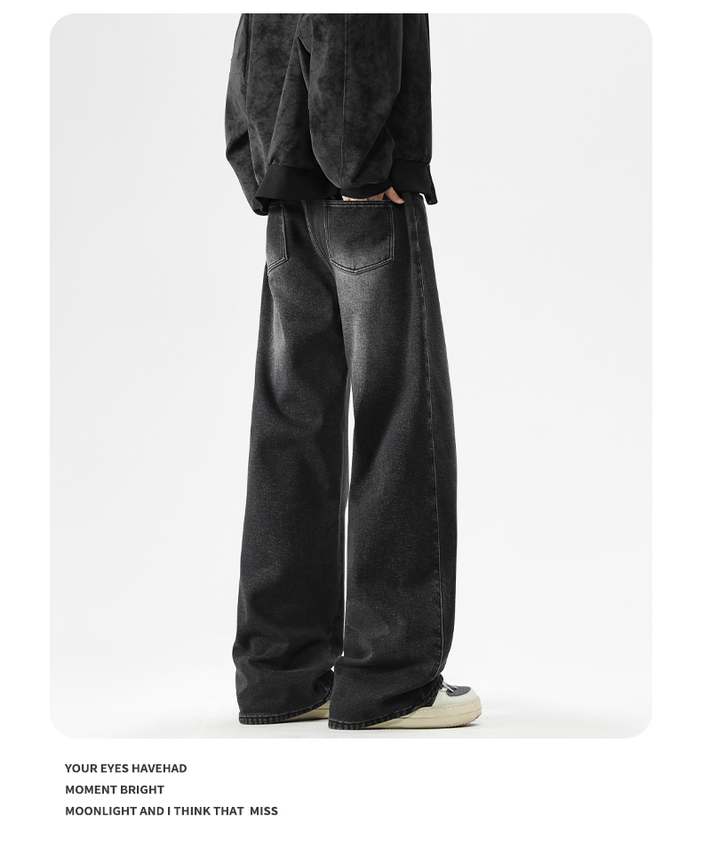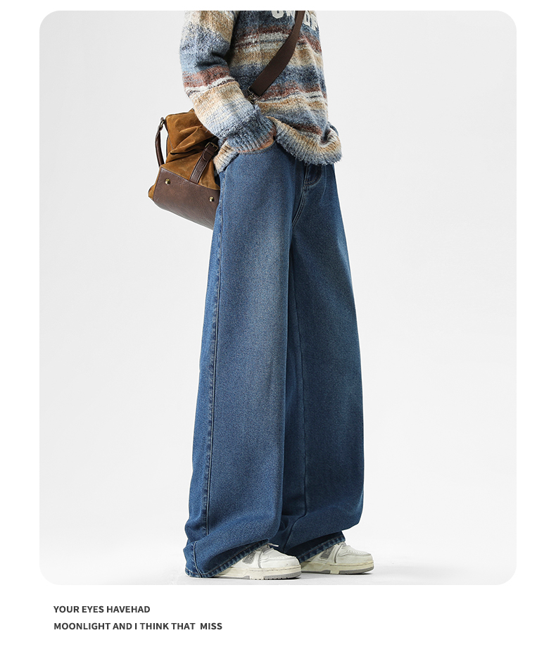 Warrior Brand Autumn and Winter 2025 New Men's Jeans, Loose Wide-Leg Straight Pants with Fleece Lining and Thickened Long Trousers for Men