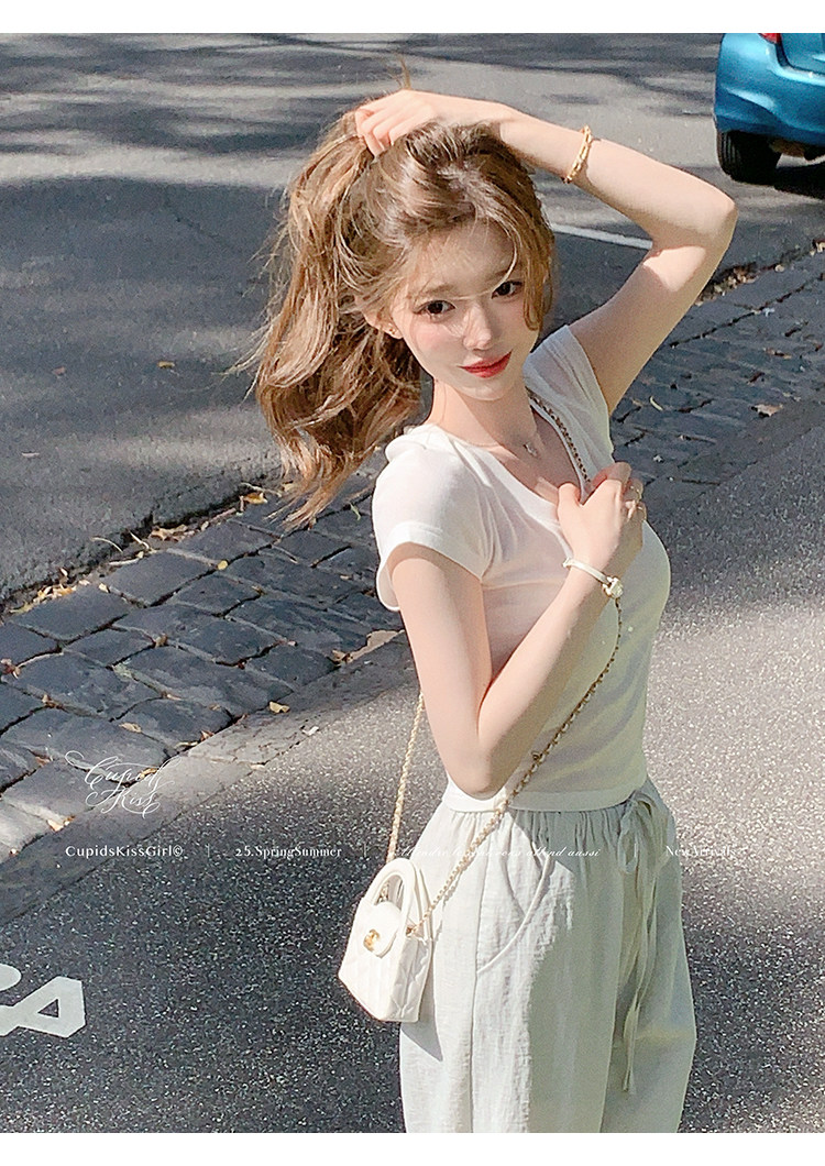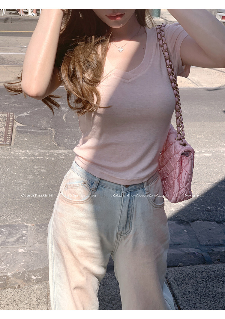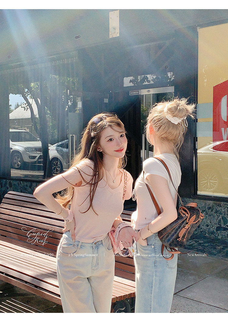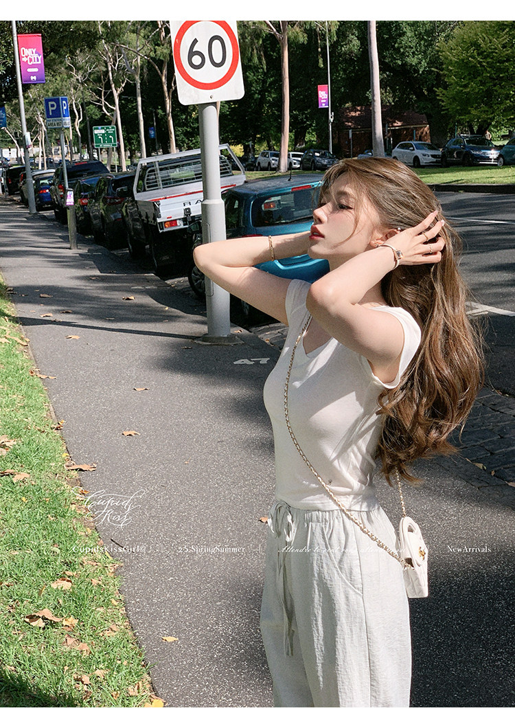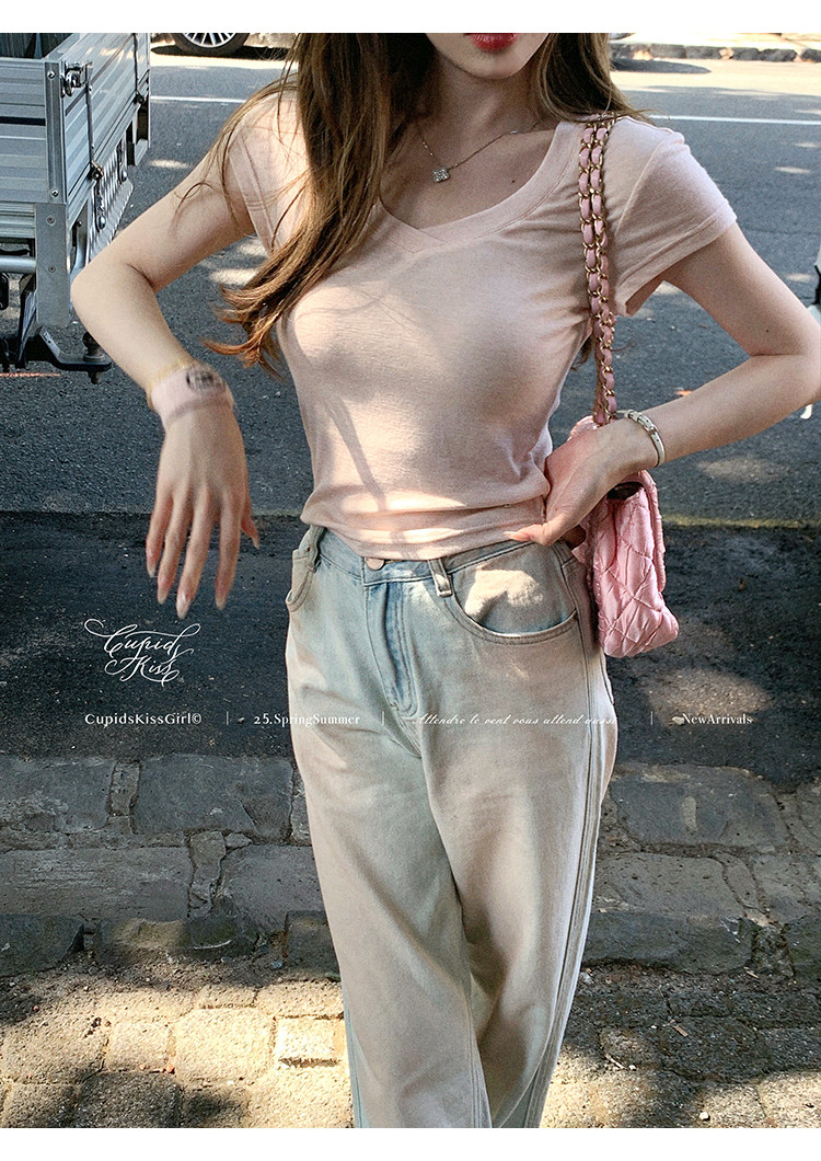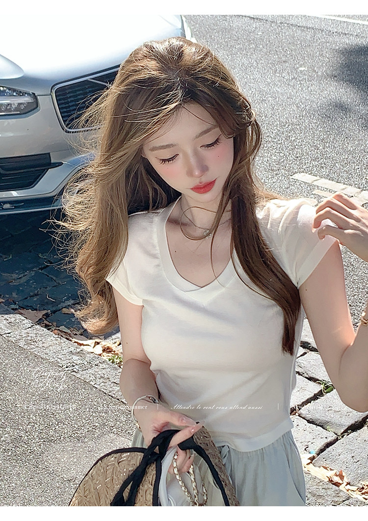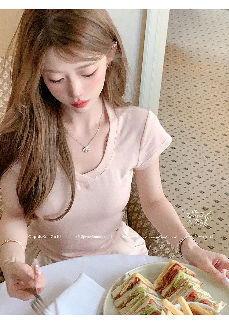 基础的V领T 肯定都会买 我们这件不是过度紧绷 ‘强调身材’的那种