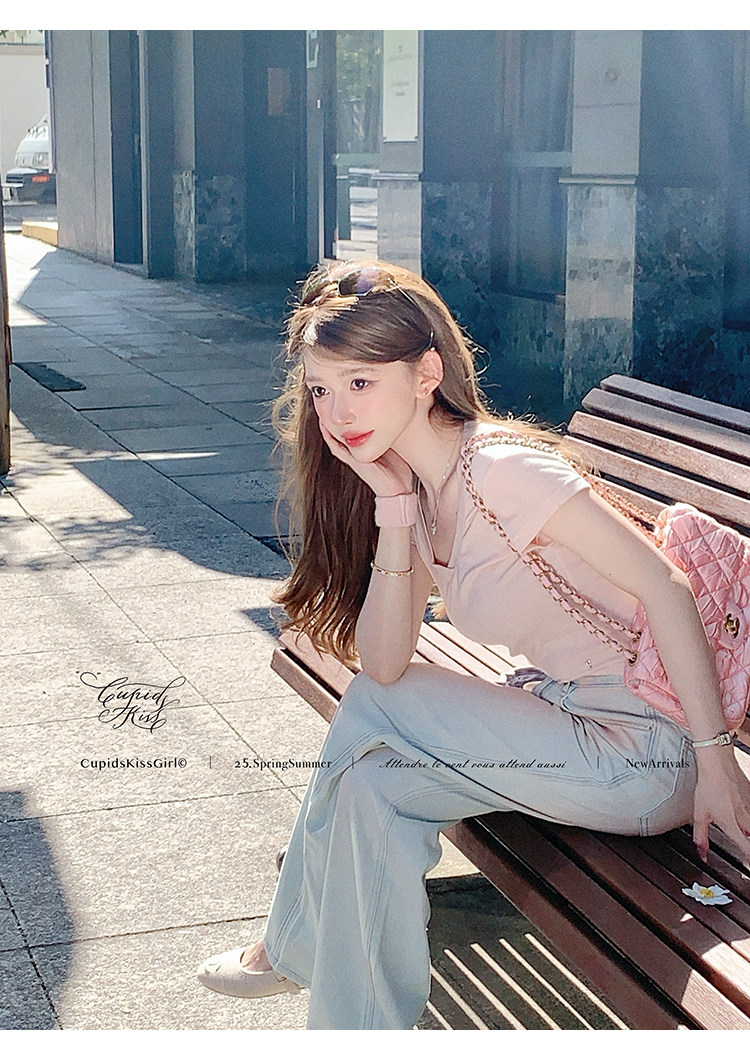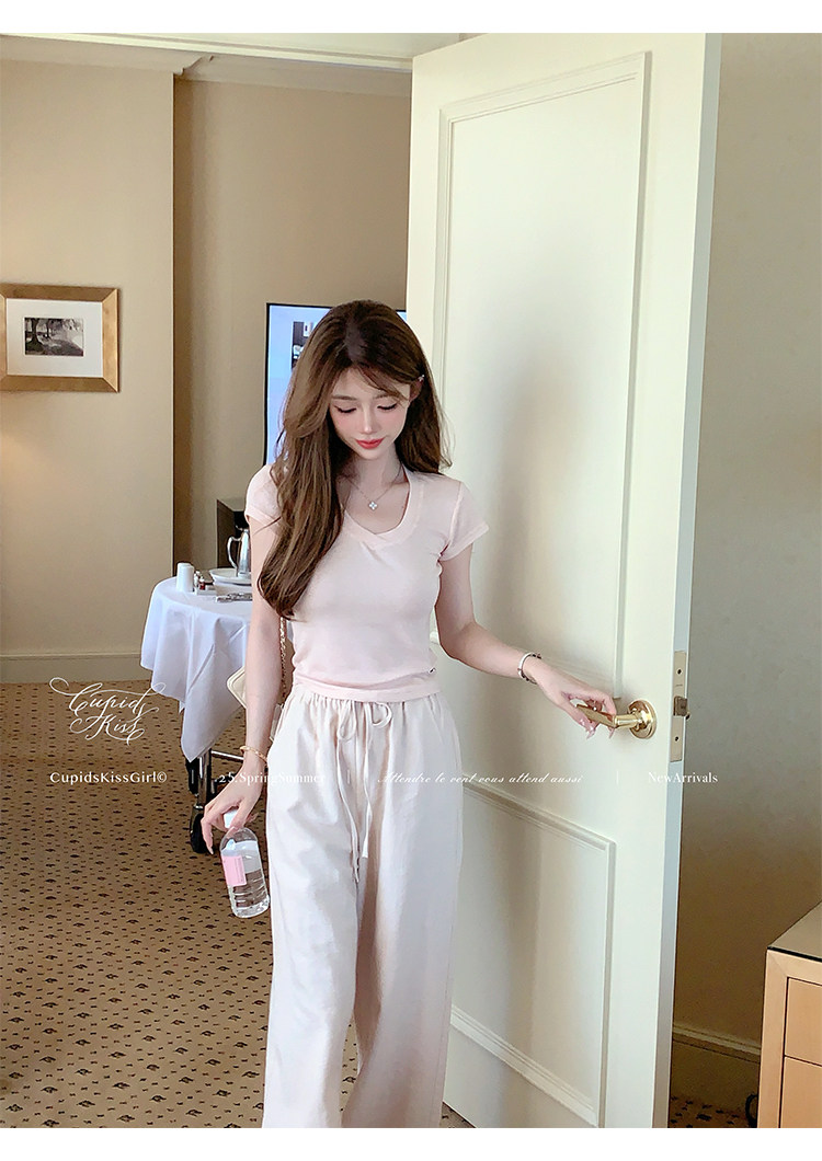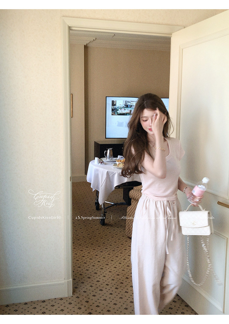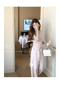 TEE淡淡的珠玉粉 裤子是淡淡的柔粉 组合在一起太温柔了~
