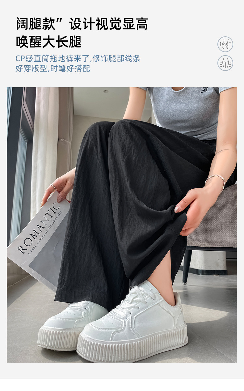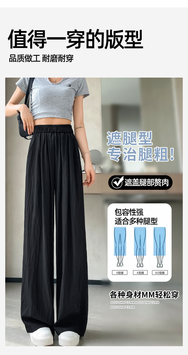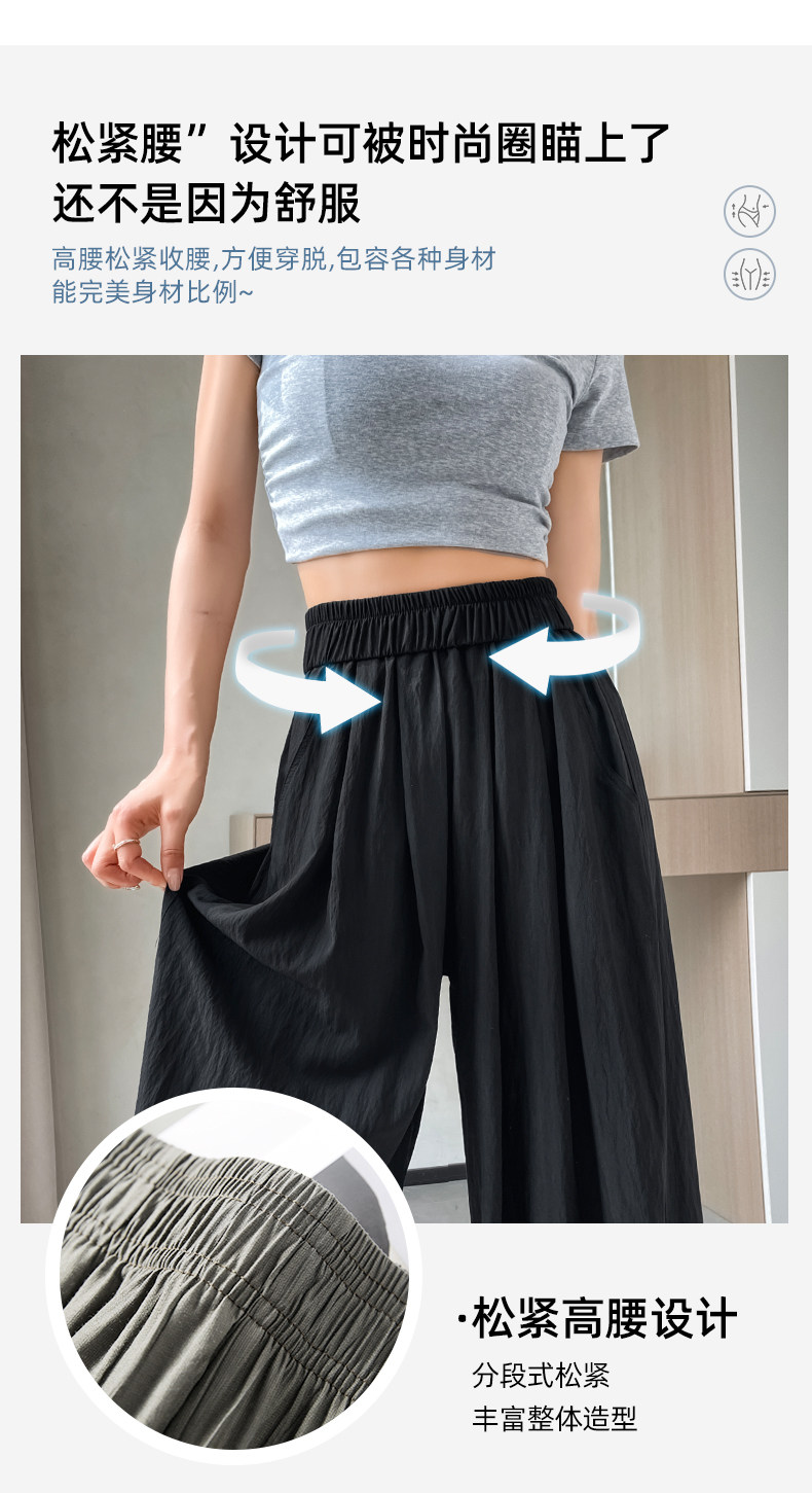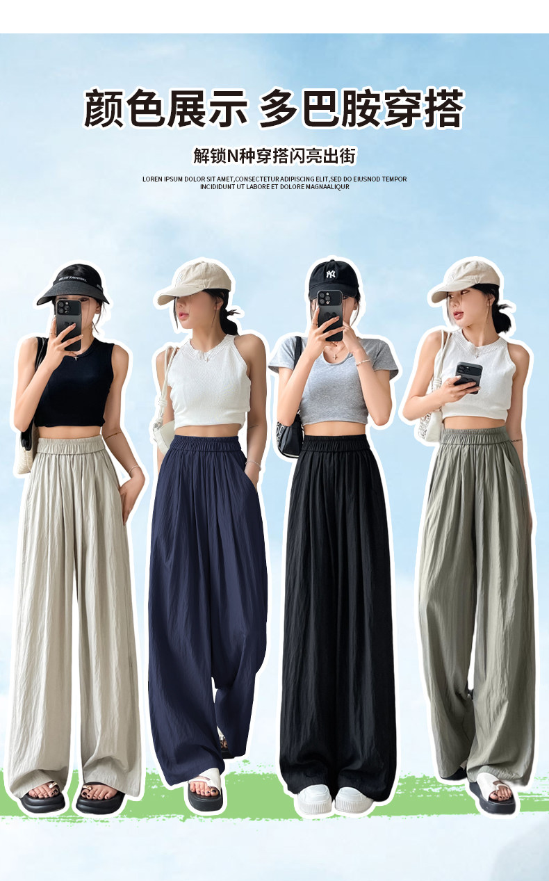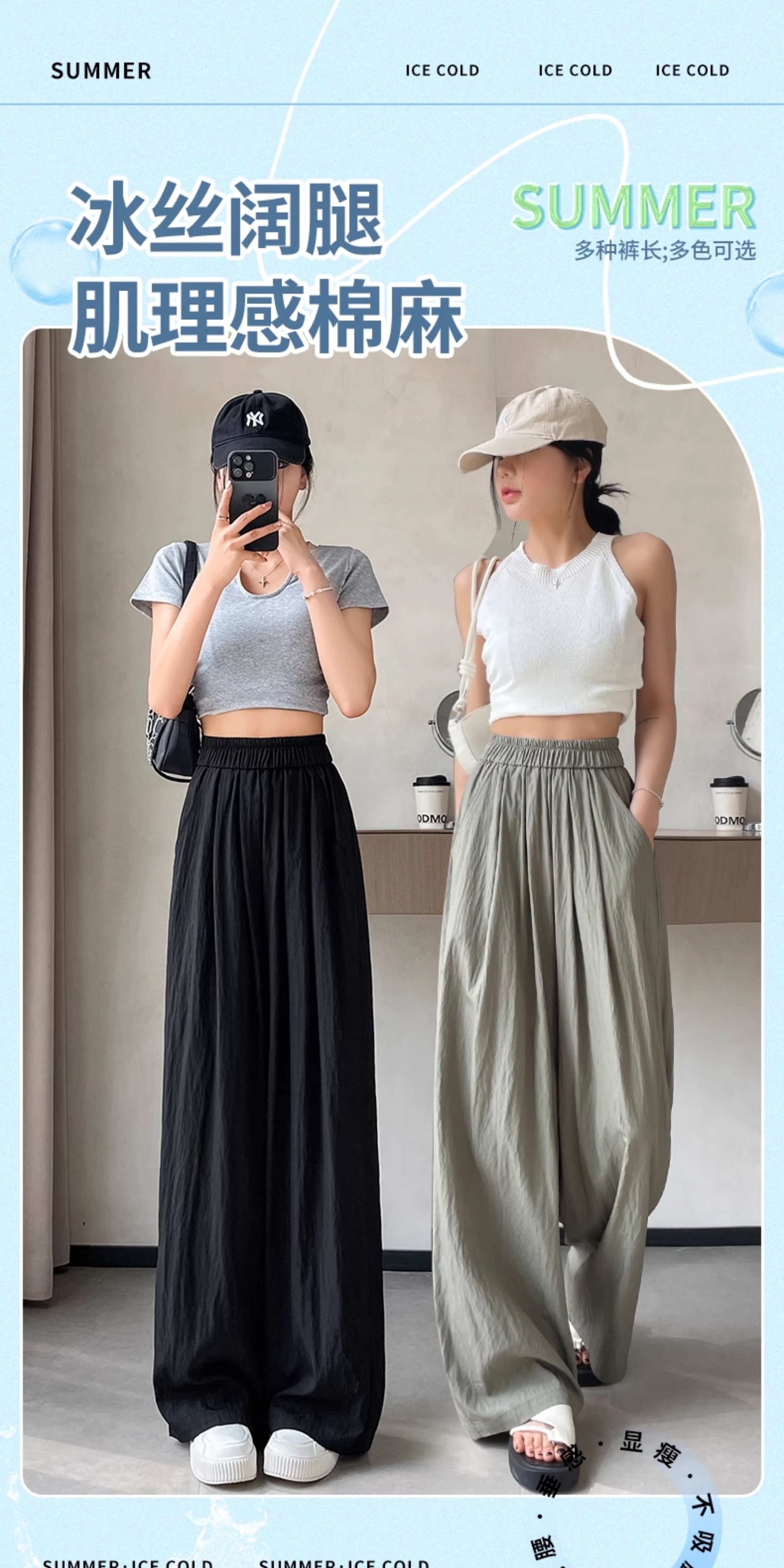 Ice Silk Yamamoto Wide-Leg Pants for Women, Summer Thin Style 2025 New Loose Straight-Leg Linen Black Cool Casual Pants