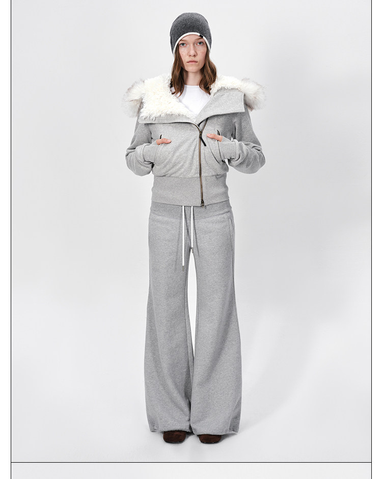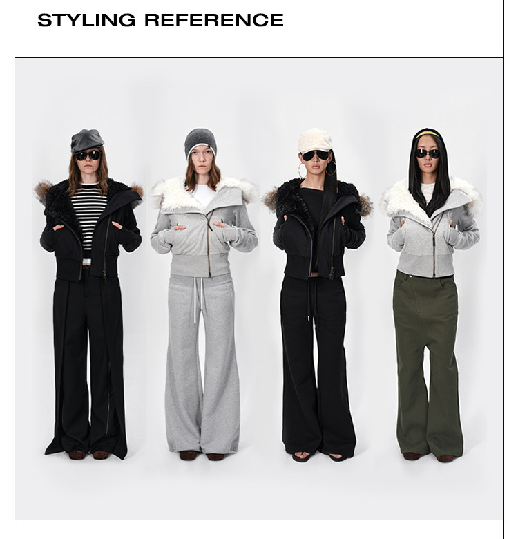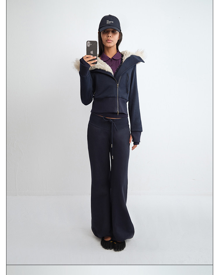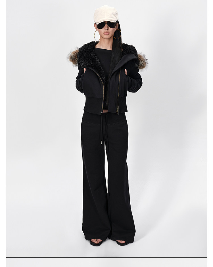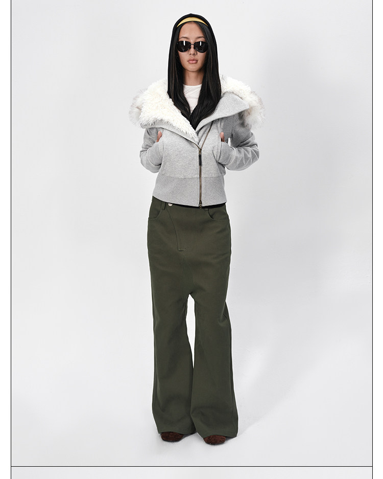 Rarely Alike Hooded Fur Collar Diagonal Placket Plush Lining Cotton Jacket Black/Gray/Navy Blue