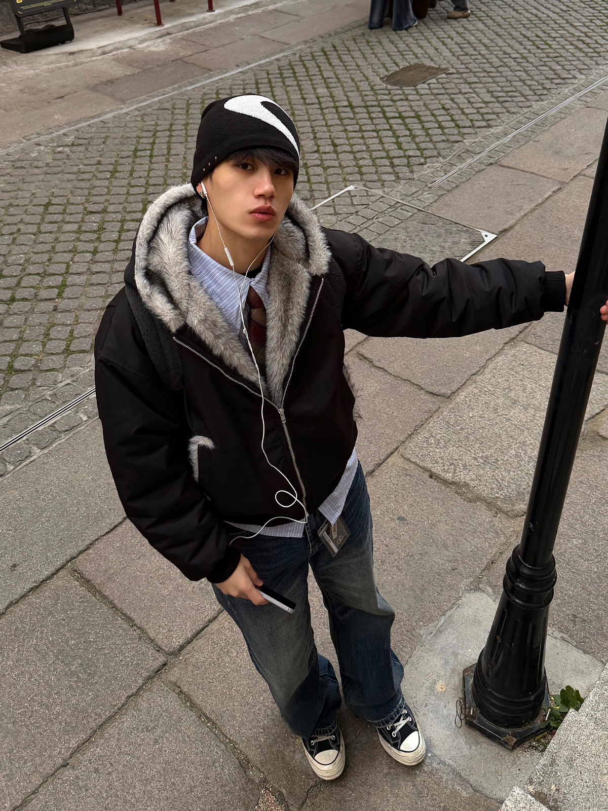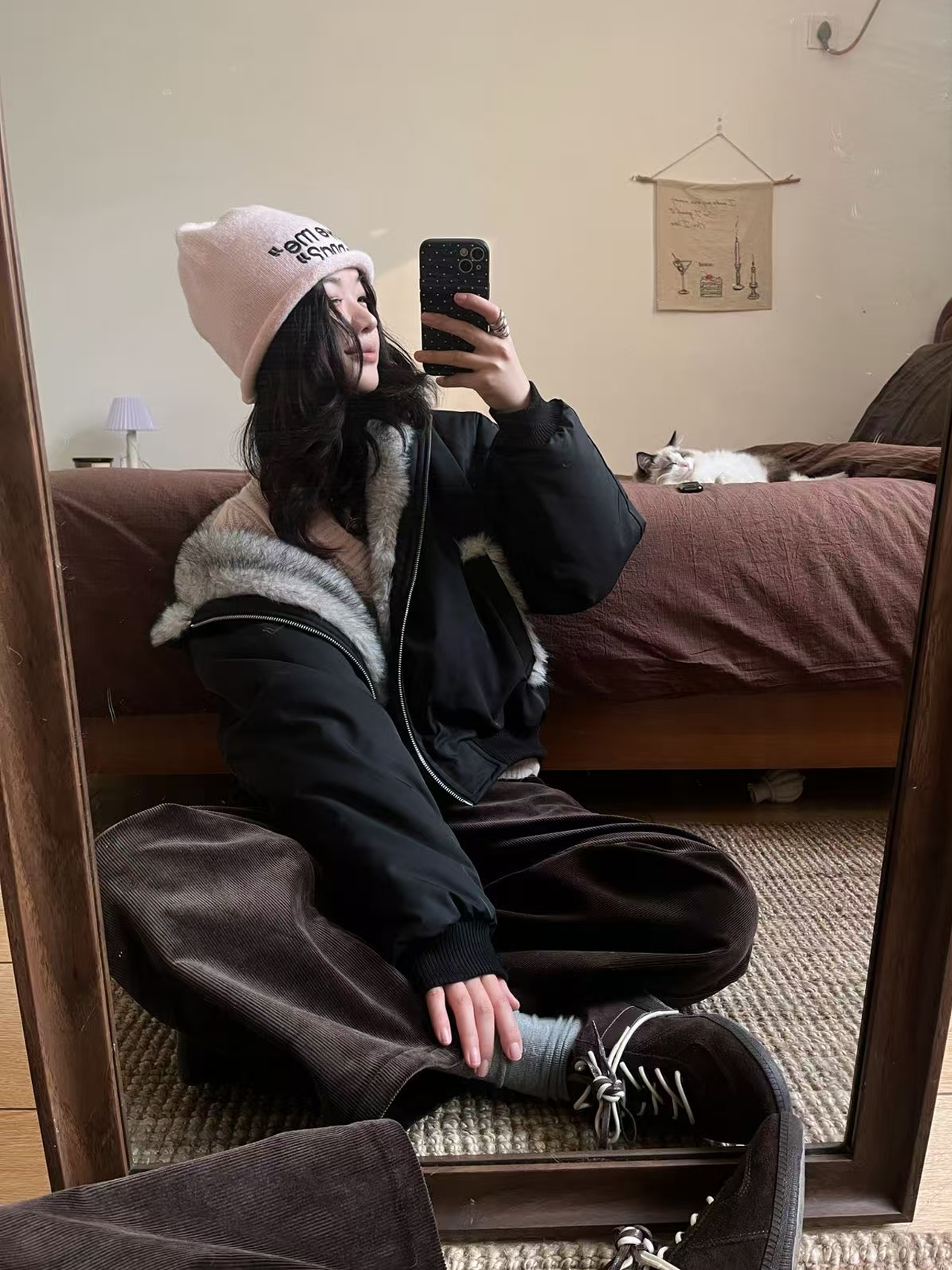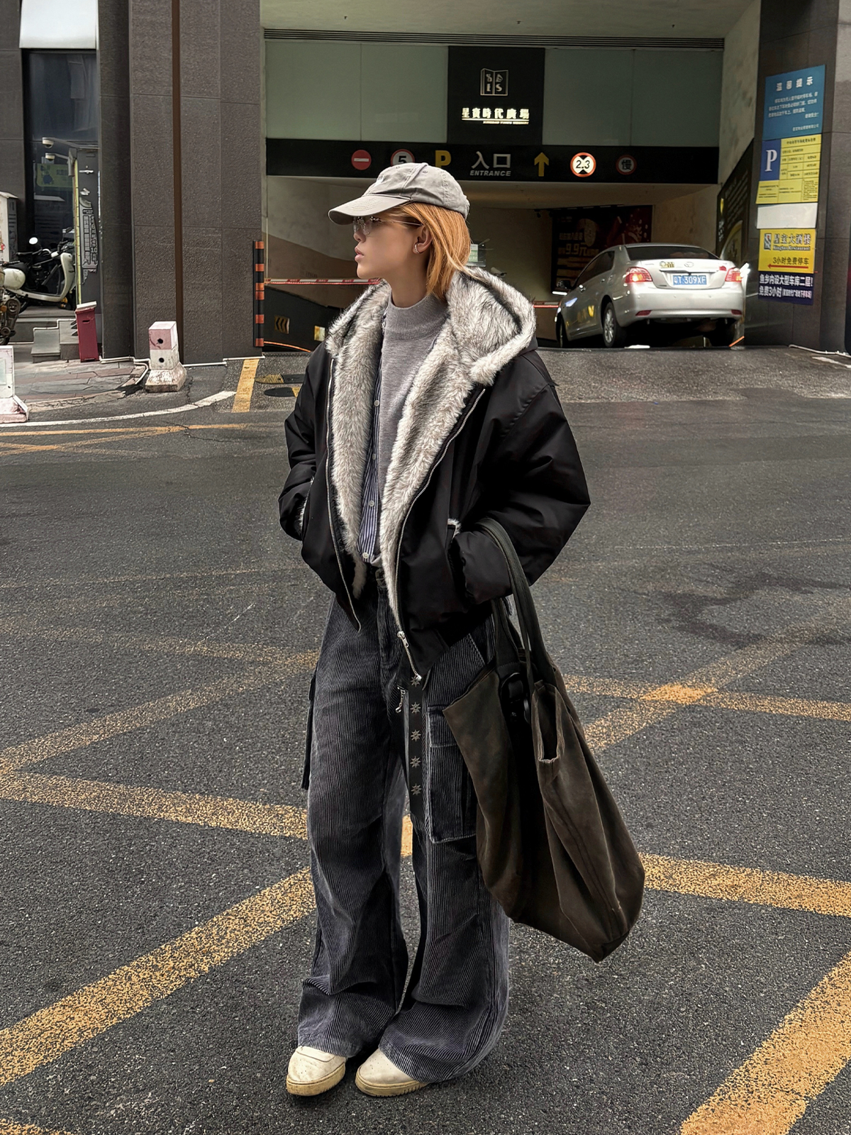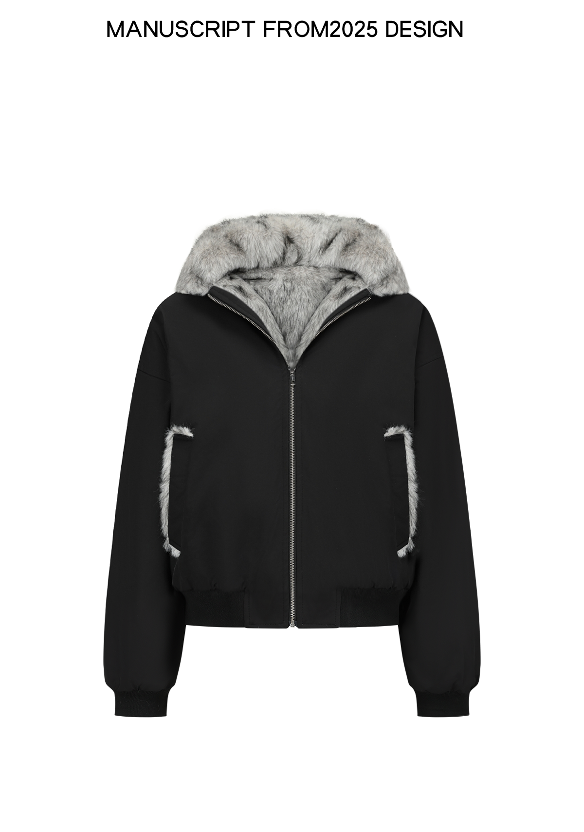 Manuscript Wolf Fur Mountain Eagle Winter Coat 1500g Eco-Friendly Imitation Mink Fur Cotton Jacket Three-Proof Winter Coat