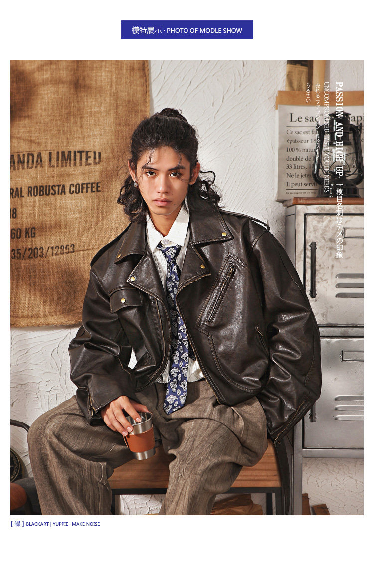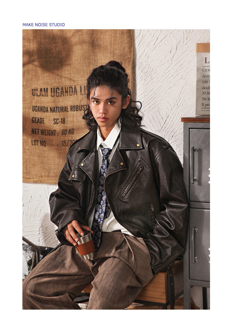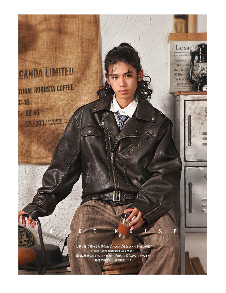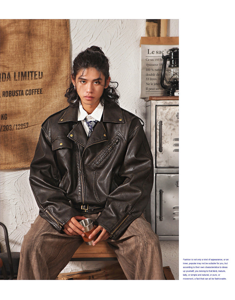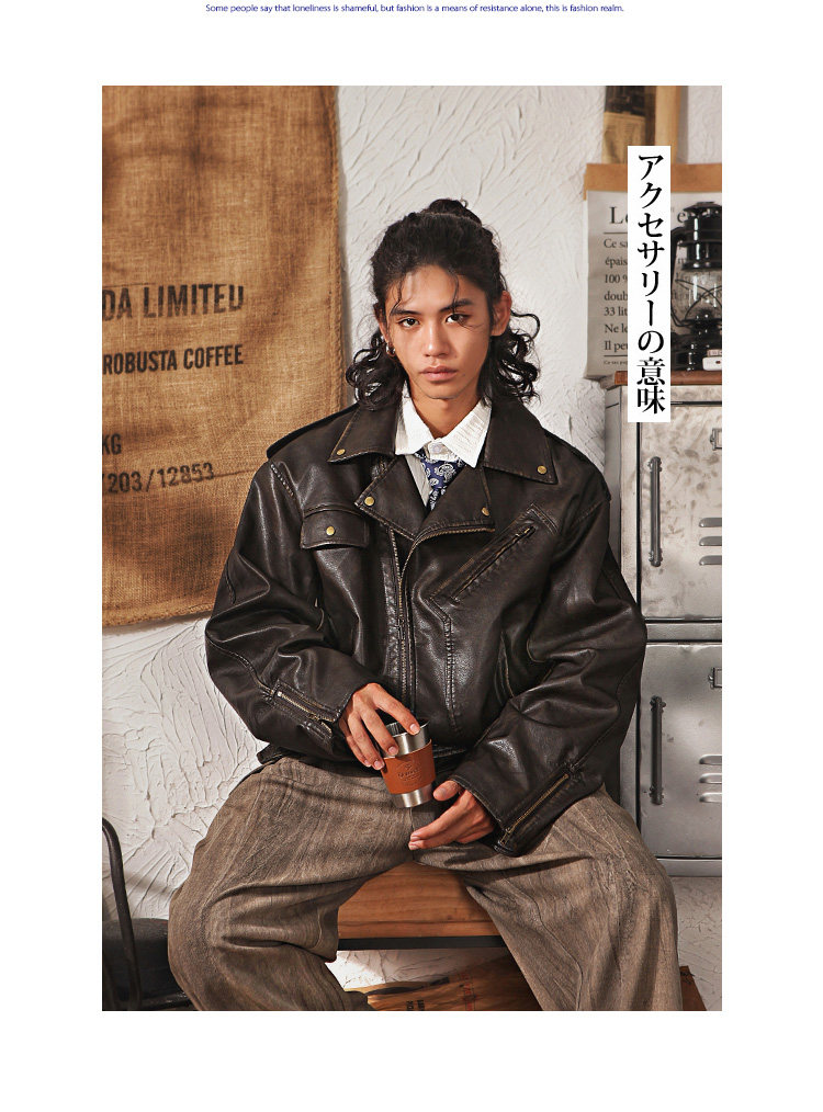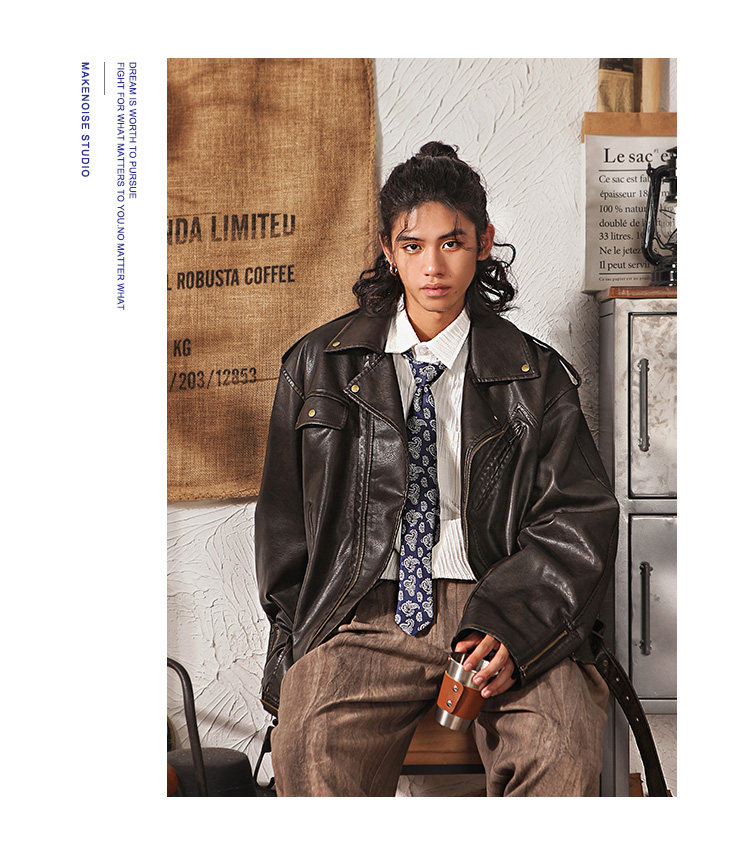 Japanese Retro Cleanfit Leather Jacket for Men, High-End, Cool and Loose, Casual Melard Pu Leather Jacket