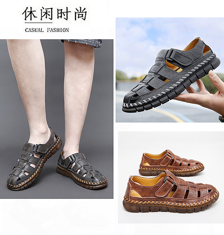 Flag Brand Bull Men's Shoes Summer Sandals Men's Genuine Leather Breathable Sports Outdoor Wear-Resistant Clogs Casual Beach Shoes