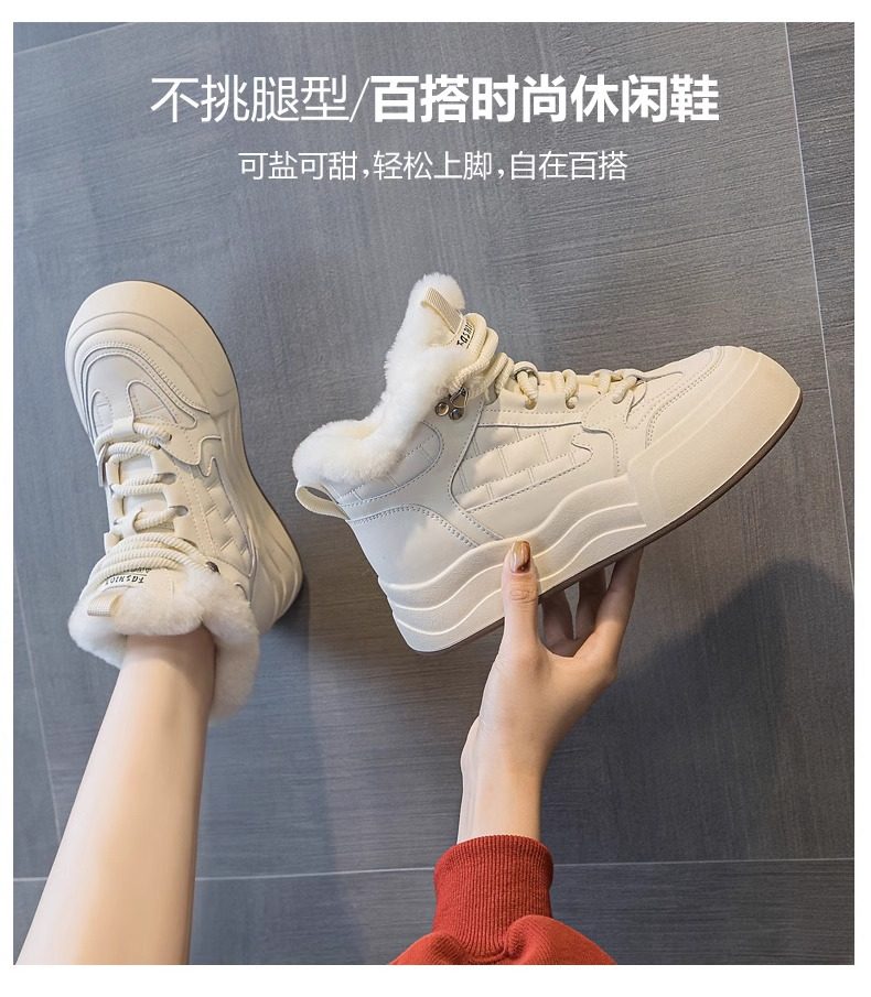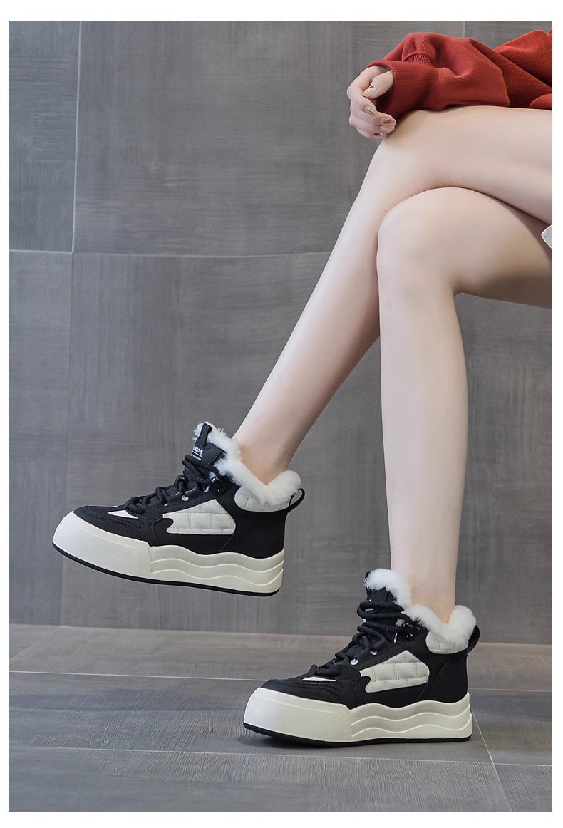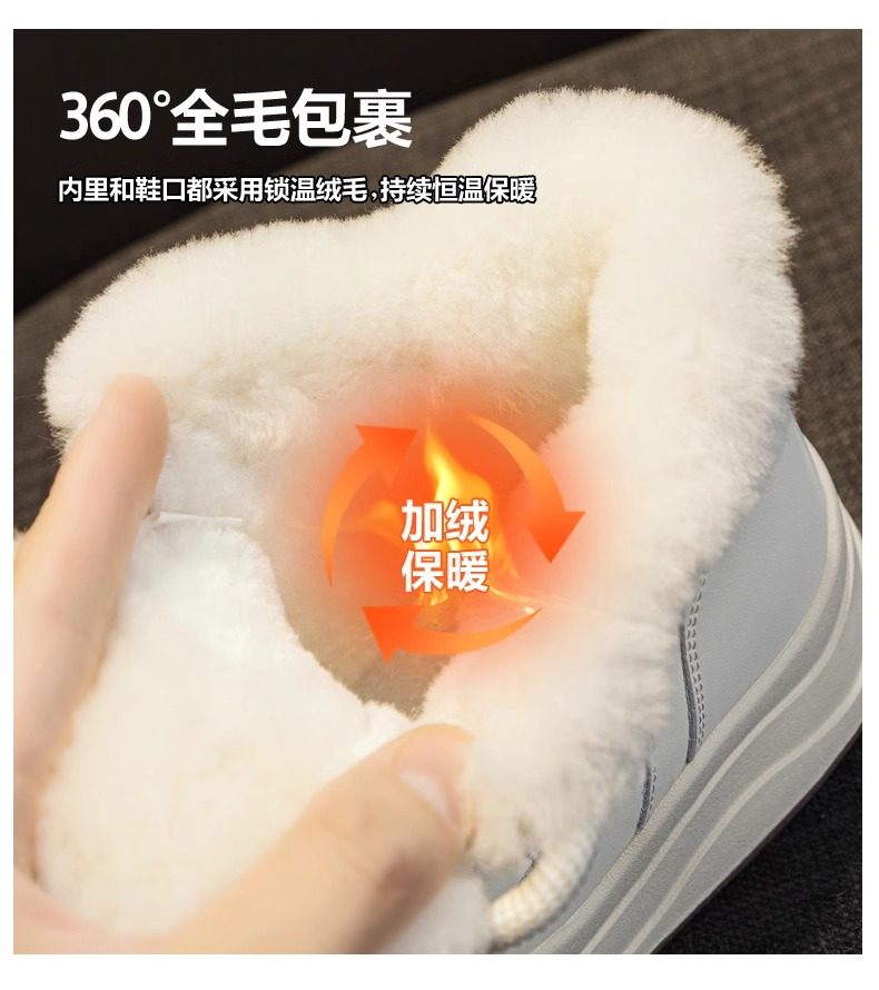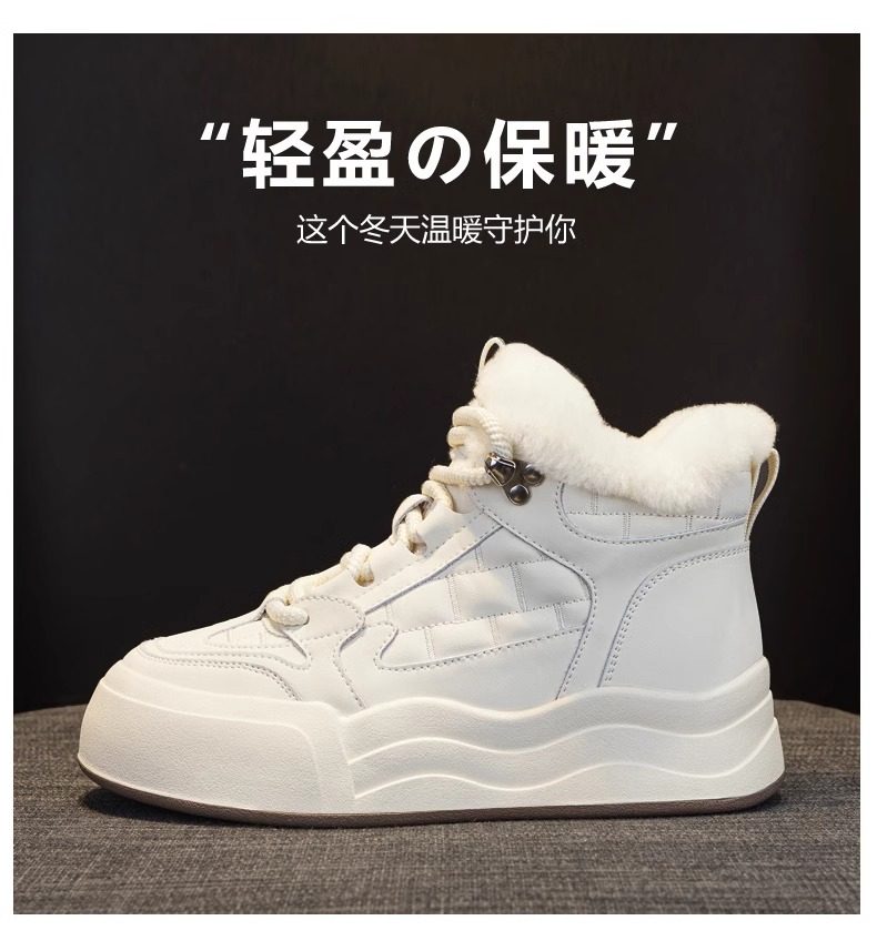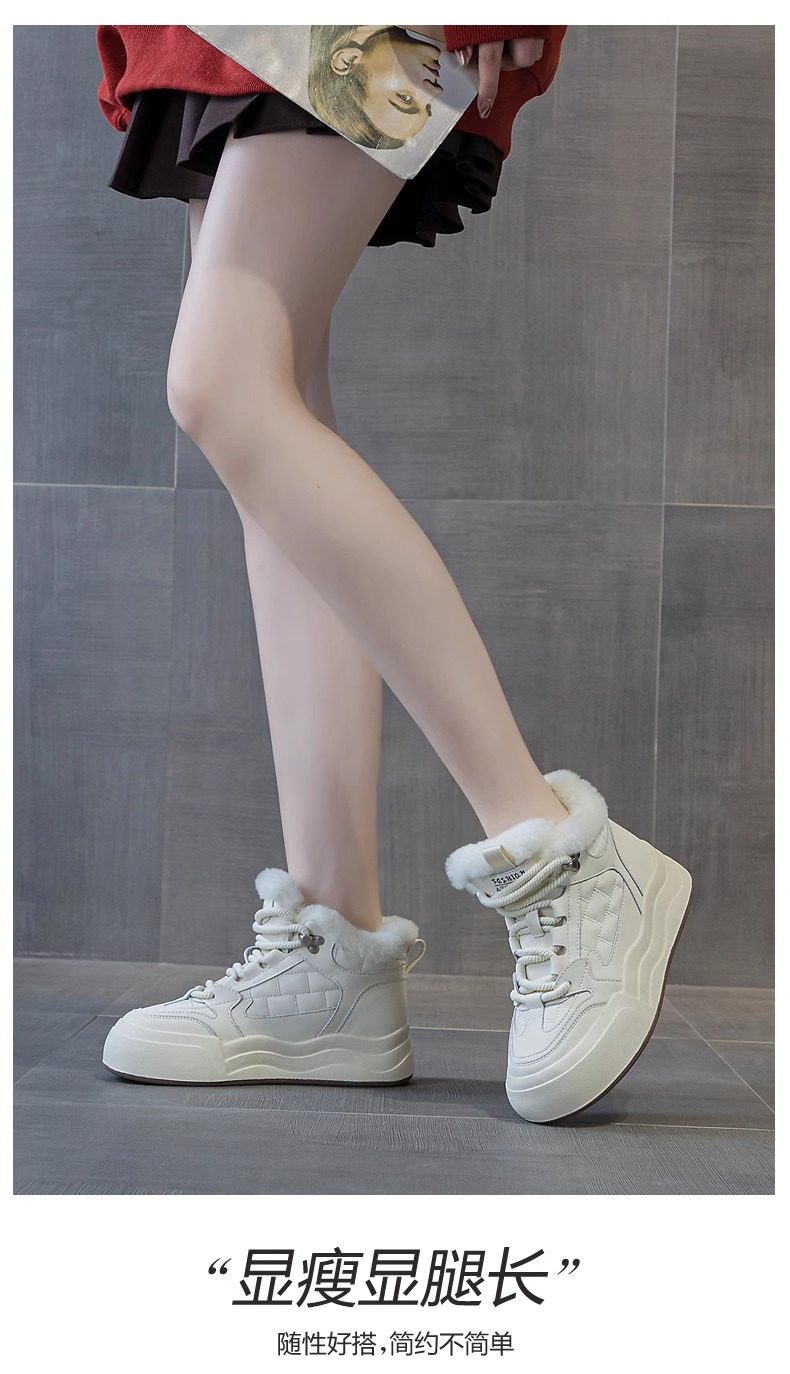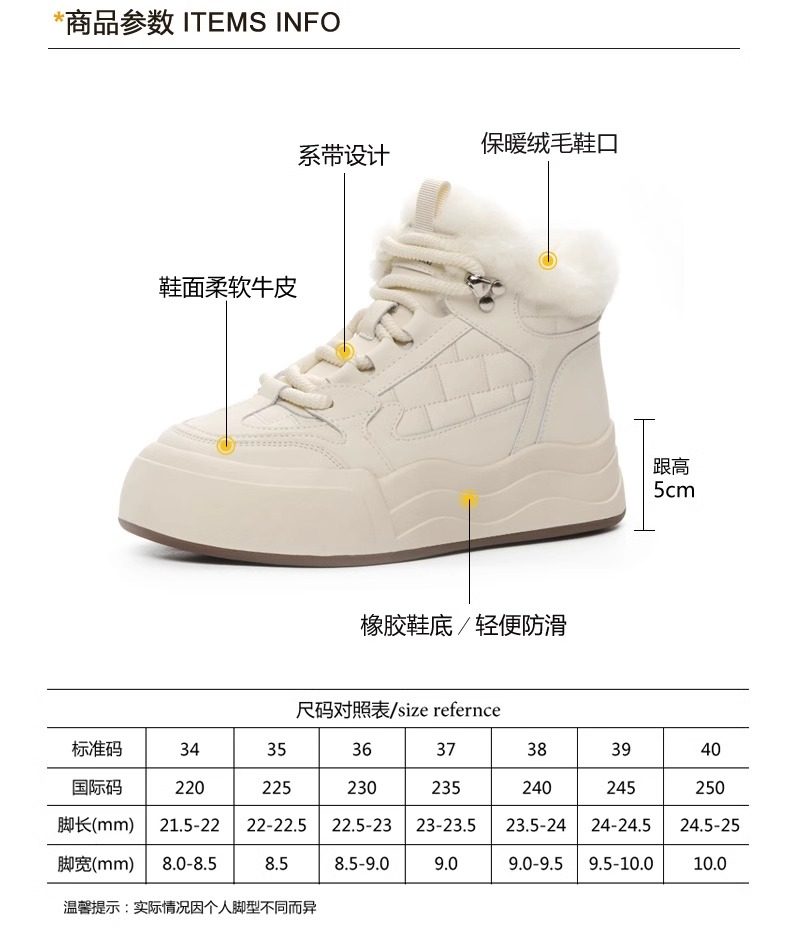 Hong Kong 2025 Autumn and Winter New Genuine Leather High-Top Shoes for Women, Street Style Casual Shoes, Fleece-Lined Thick-Soled Snow Boots, Sneakers, Cotton Shoes