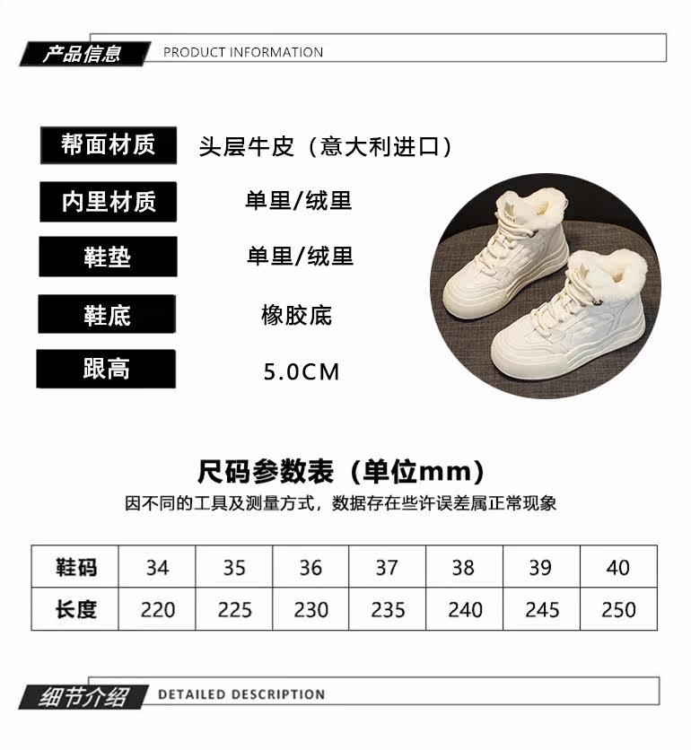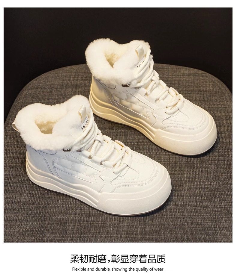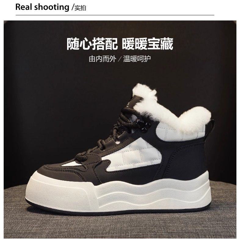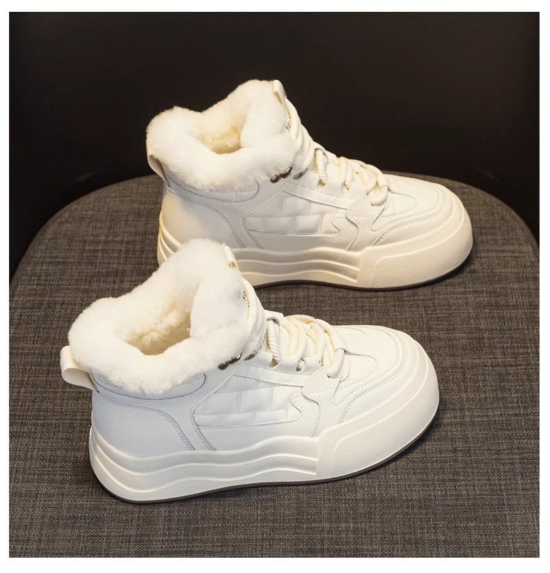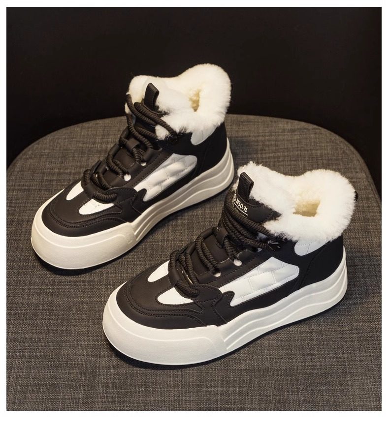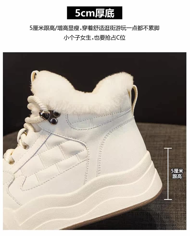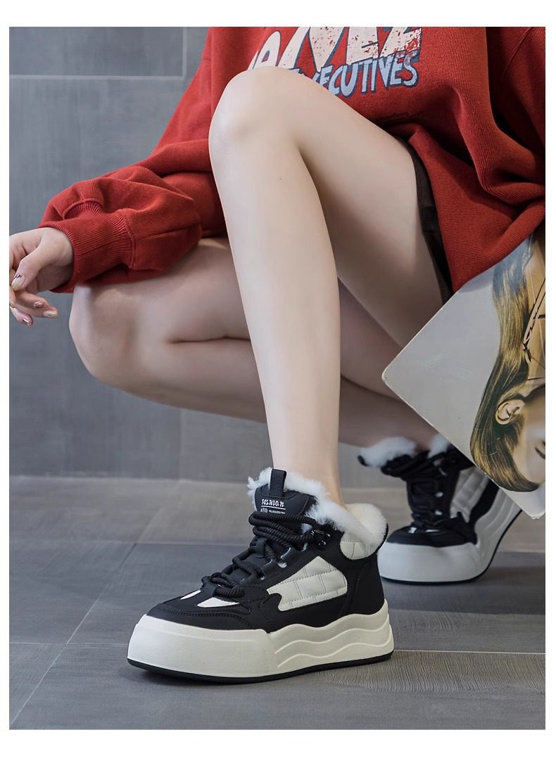 Hong Kong 2025 Autumn and Winter New Genuine Leather High-Top Shoes for Women, Street Style Casual Shoes, Fleece-Lined Thick-Soled Snow Boots, Sneakers, Cotton Shoes