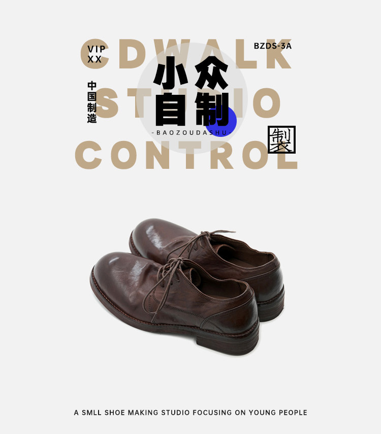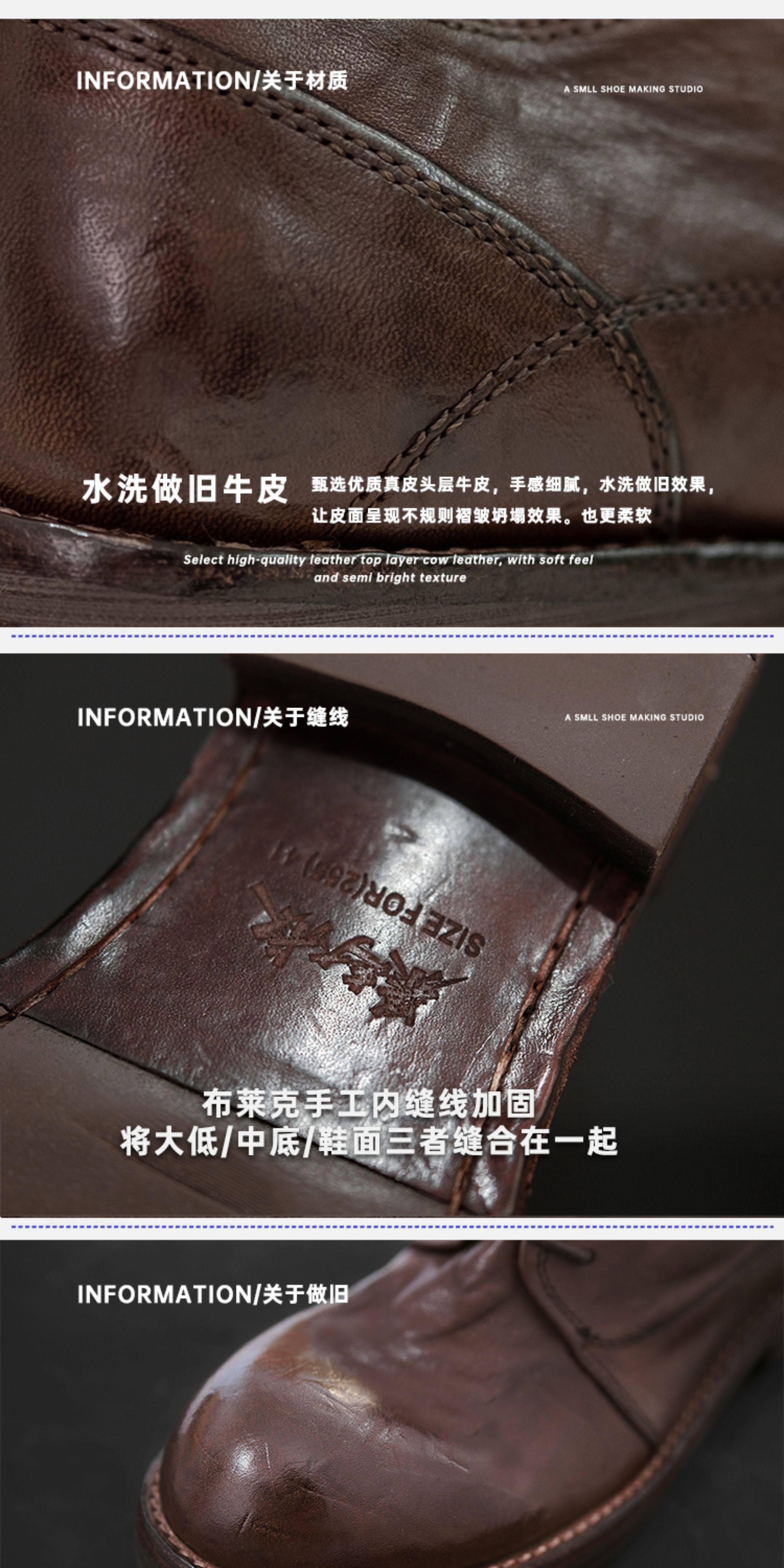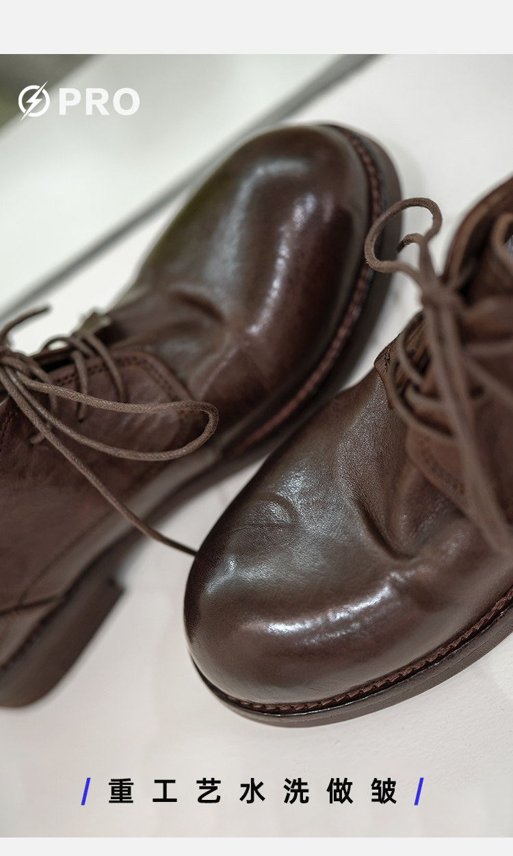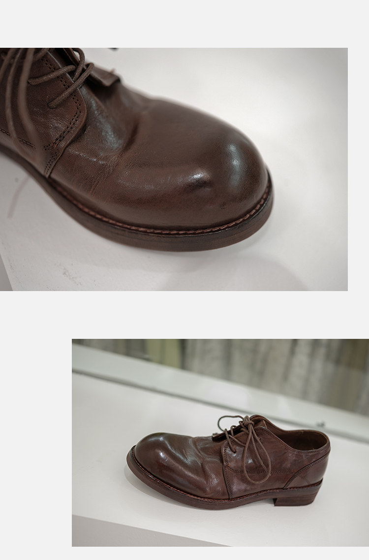 Japanese-Style Large Leather Shoes, Brown Low-Top Shoes, Vintage Distressed Cowhide Round-Toe Casual Leather Shoes, Handmade Derby Shoes, Old Money Style