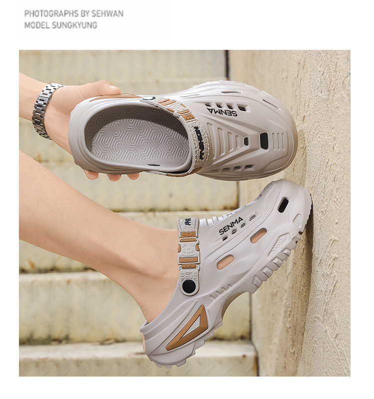 Semir Men's Summer Outdoor Thick-Soled Height-Increasing Closed-Toe Slippers, Outdoor Men's Sports Non-Slip Beach Sandals