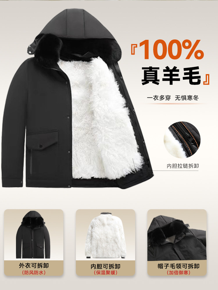 Wool Cotton Jacket for Men, Fur Integrated, Thickened Sheepskin Jacket for Middle-Aged and Elderly, Northeast Cotton Clothing, Winter Dad's Coat