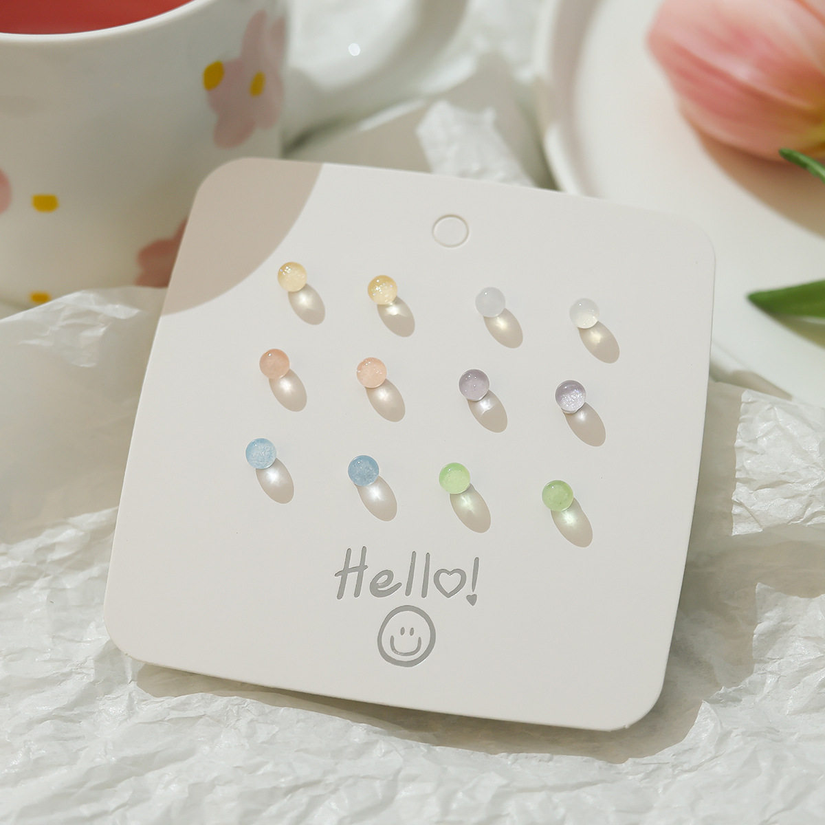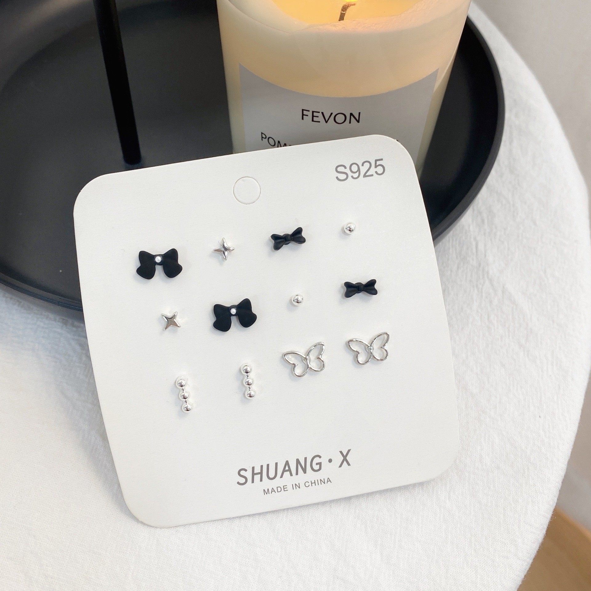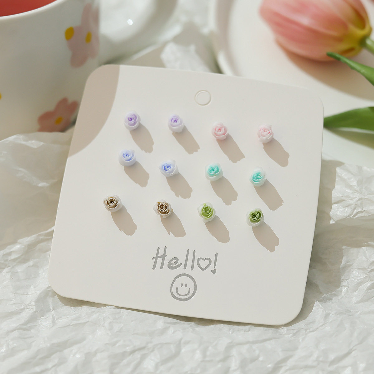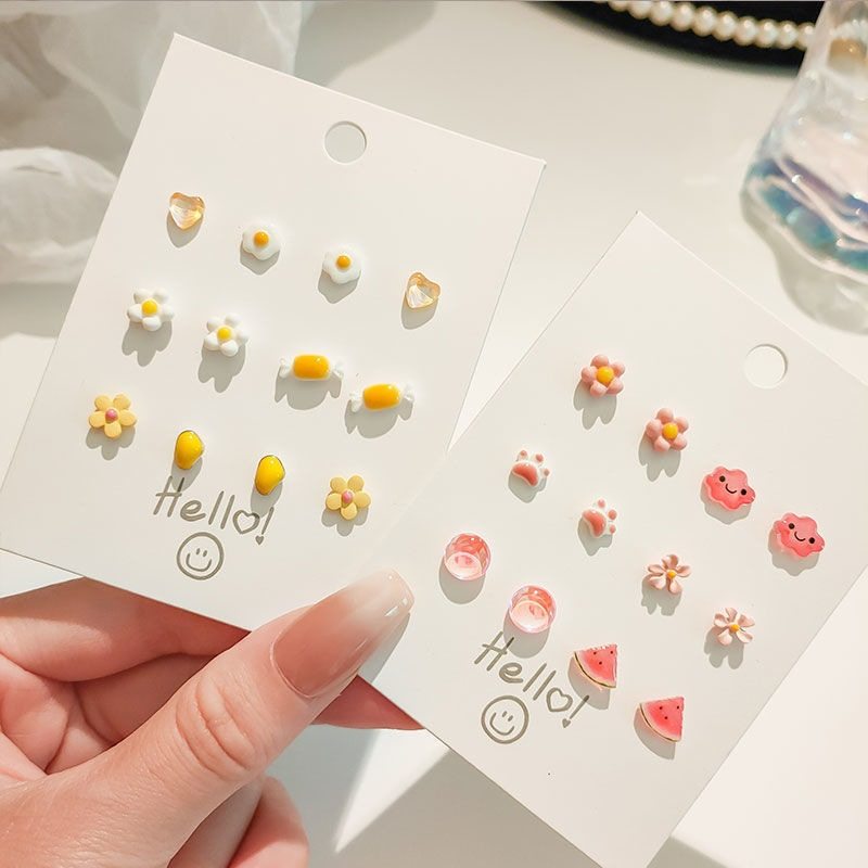 Popular S925 Sterling Silver Needle Ceramic Flower Watermelon Combination Cute Hypoallergenic Small Ear Bone Studs One-Week Earring Set