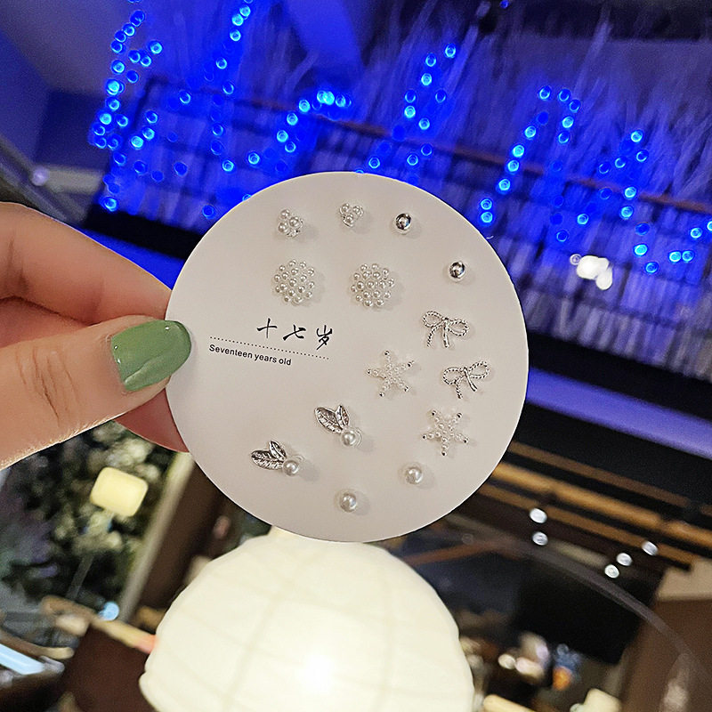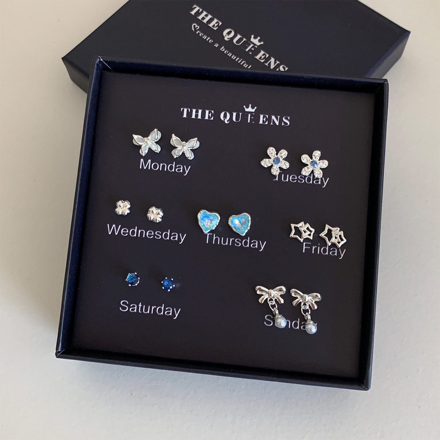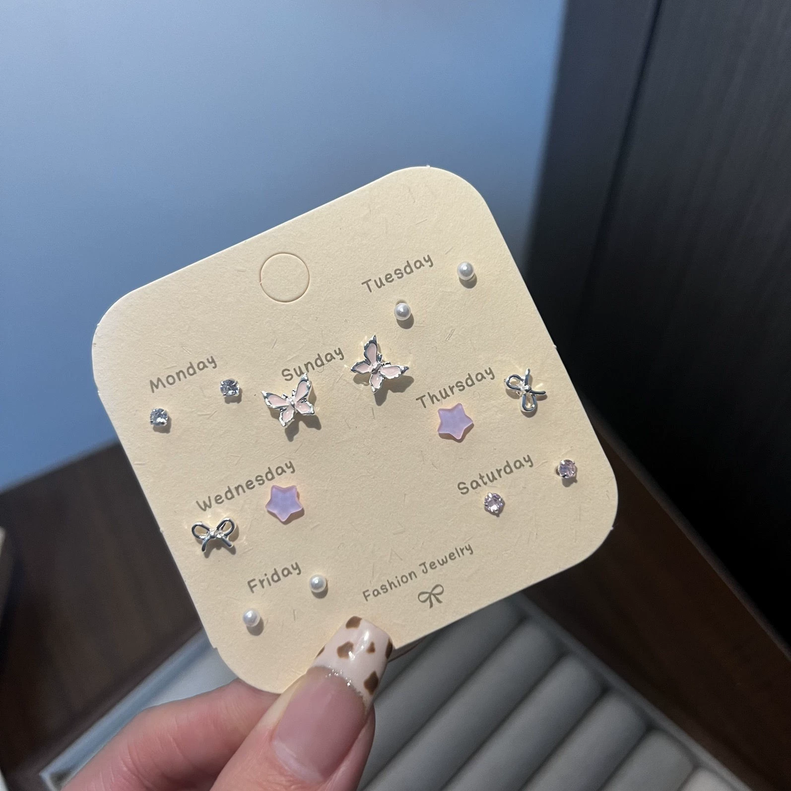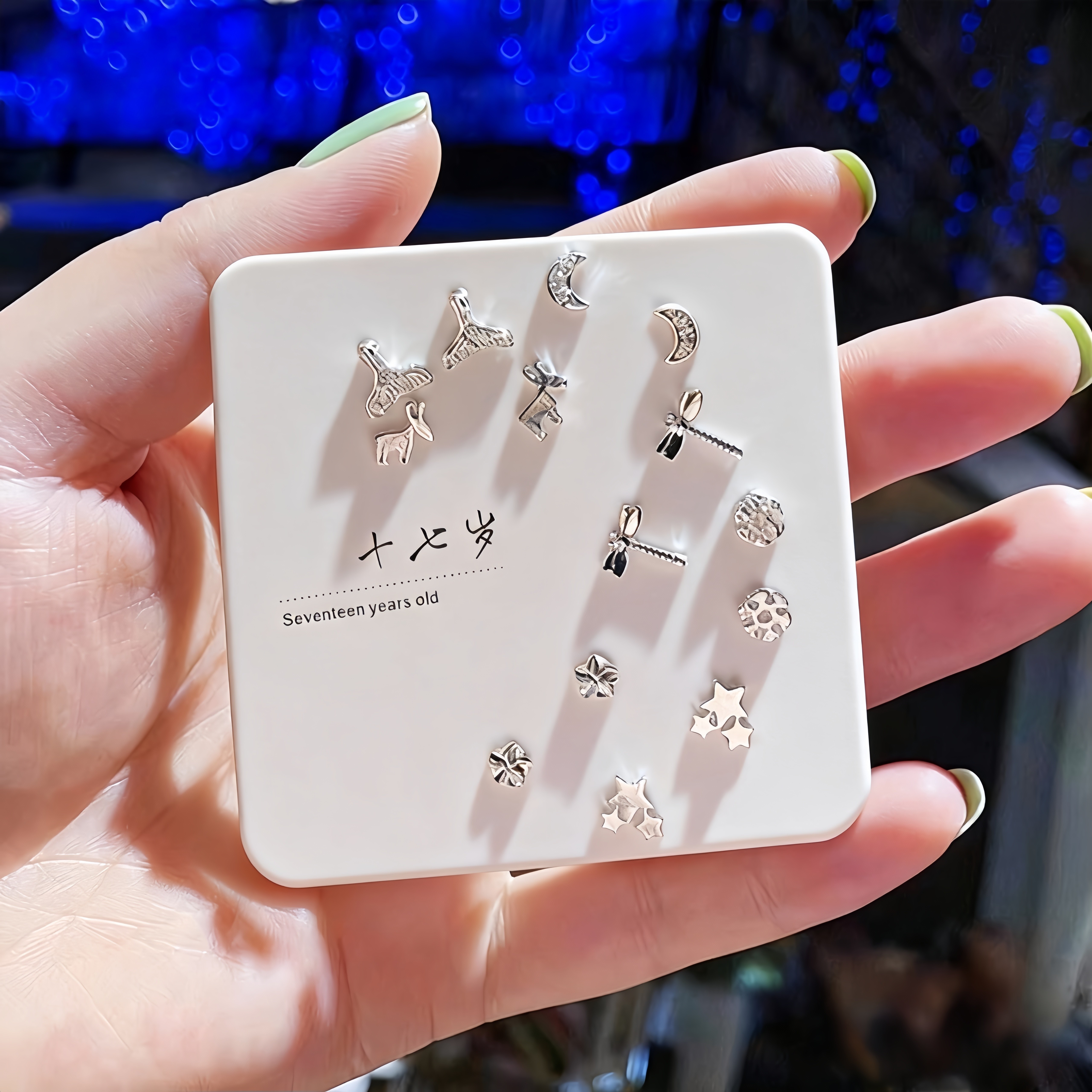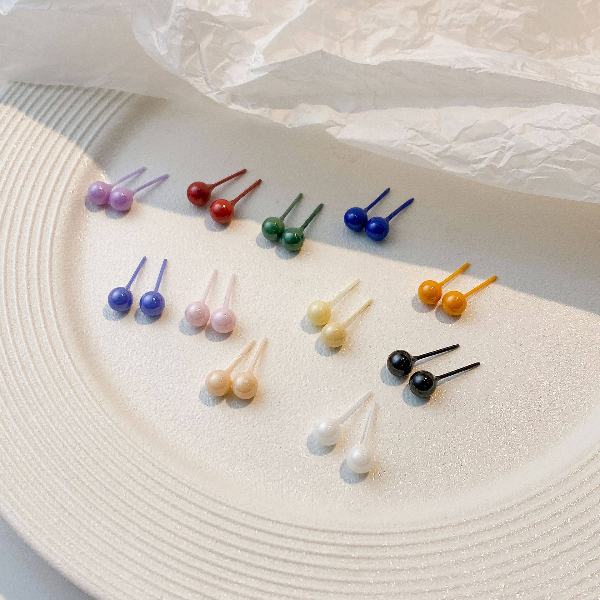 Popular S925 Sterling Silver Needle Ceramic Flower Watermelon Combination Cute Hypoallergenic Small Ear Bone Studs One-Week Earring Set