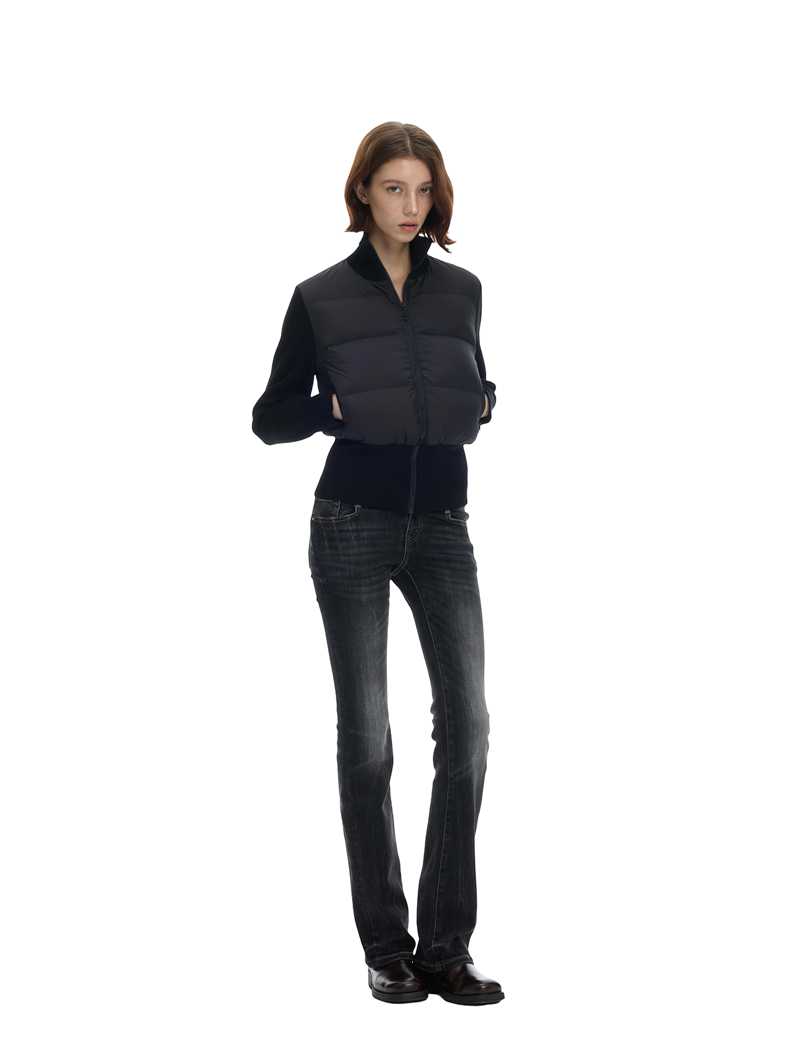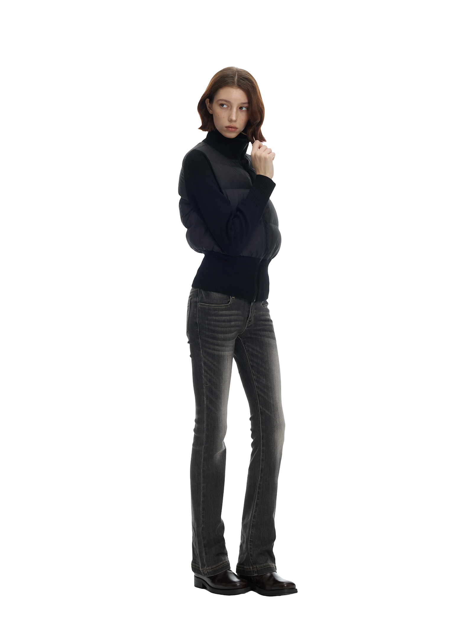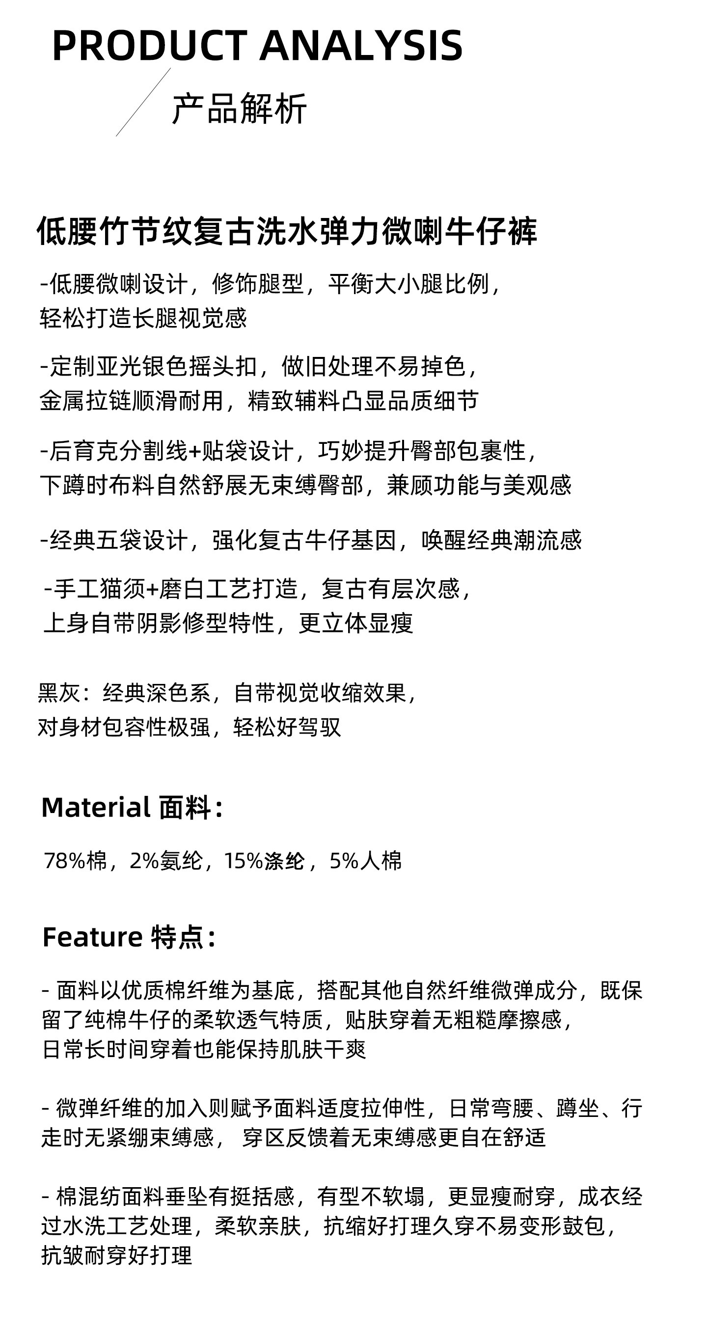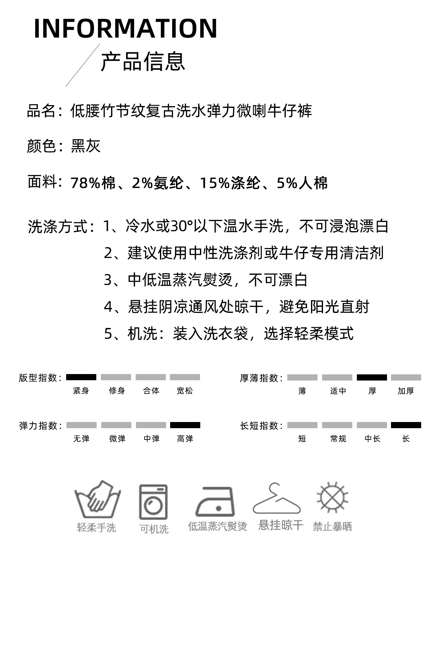 Veryrareme Low-Waisted Bamboo Pattern Retro Washed Stretchy Bootcut Jeans