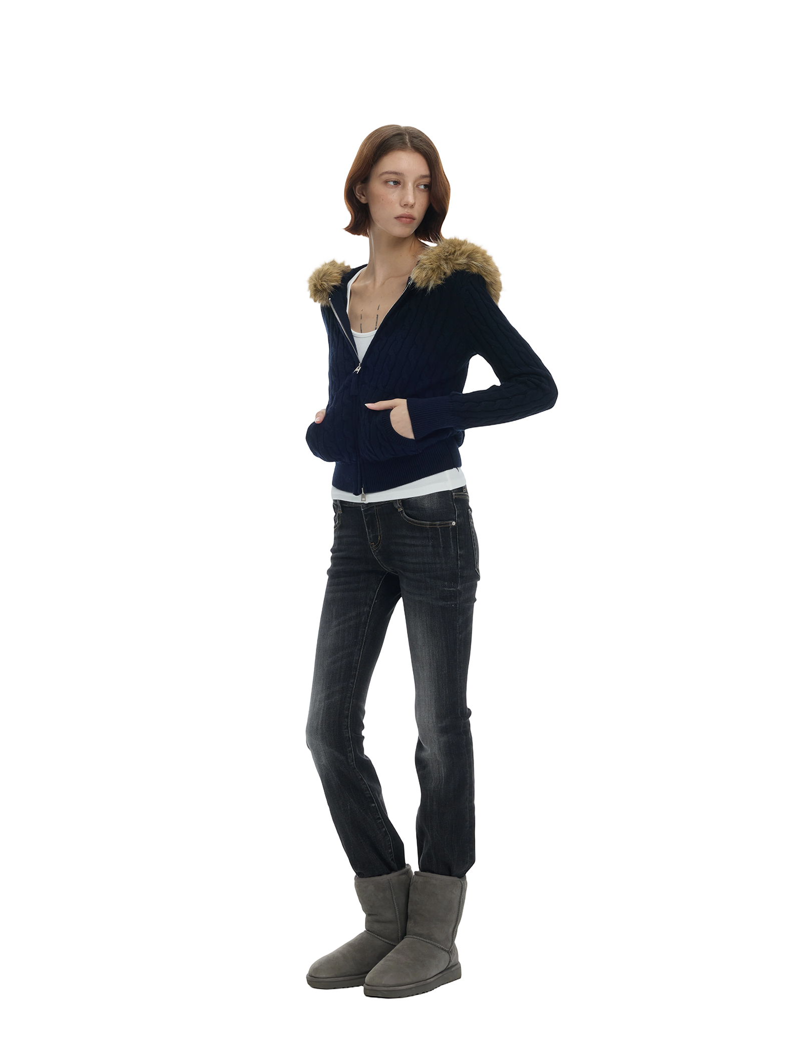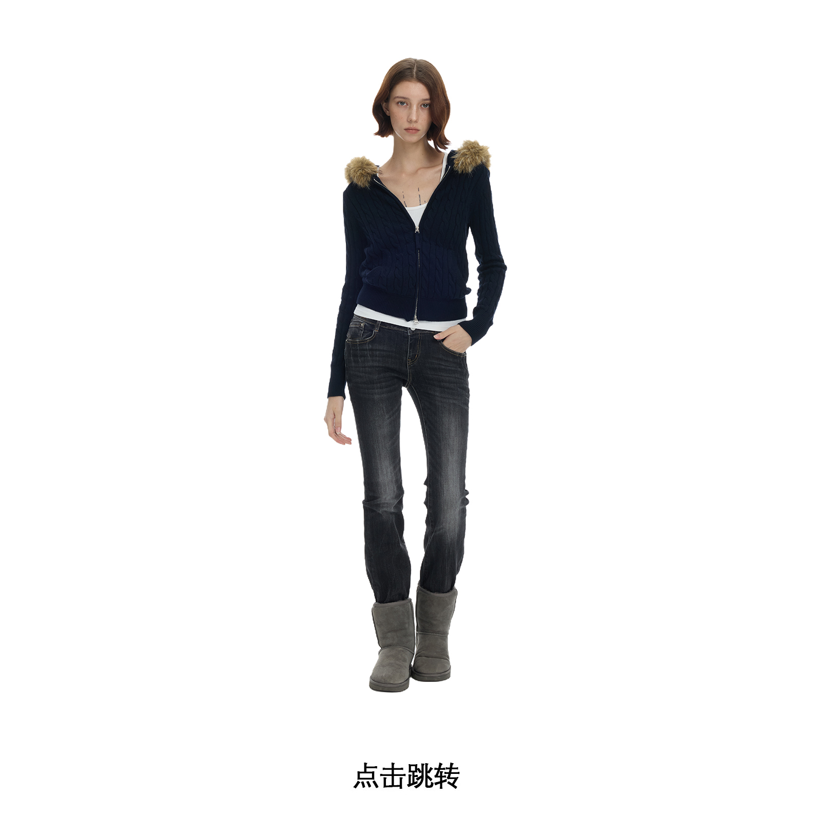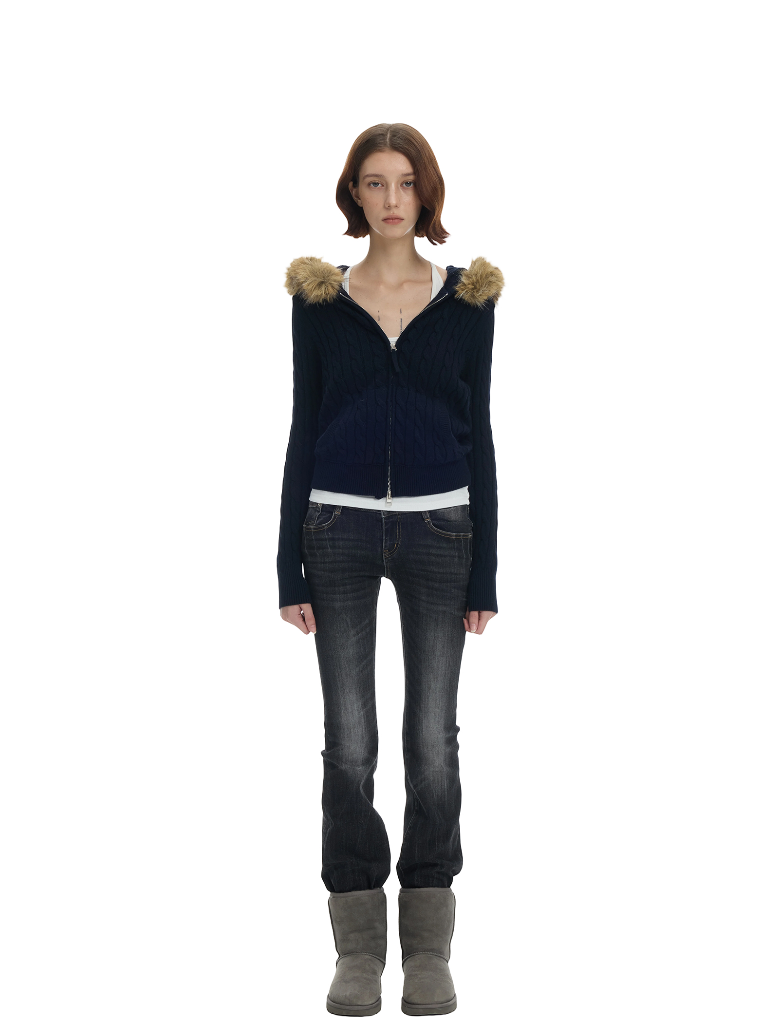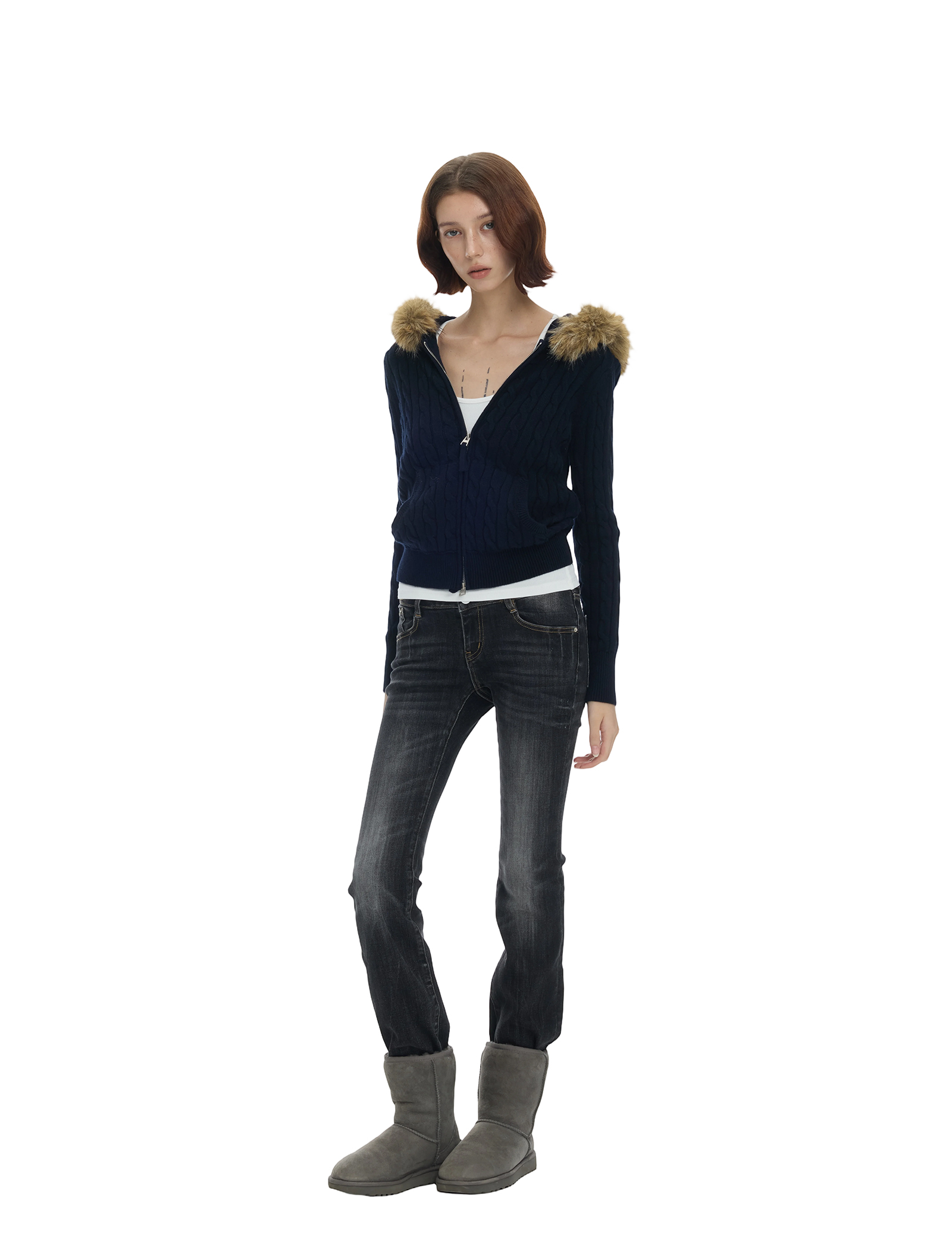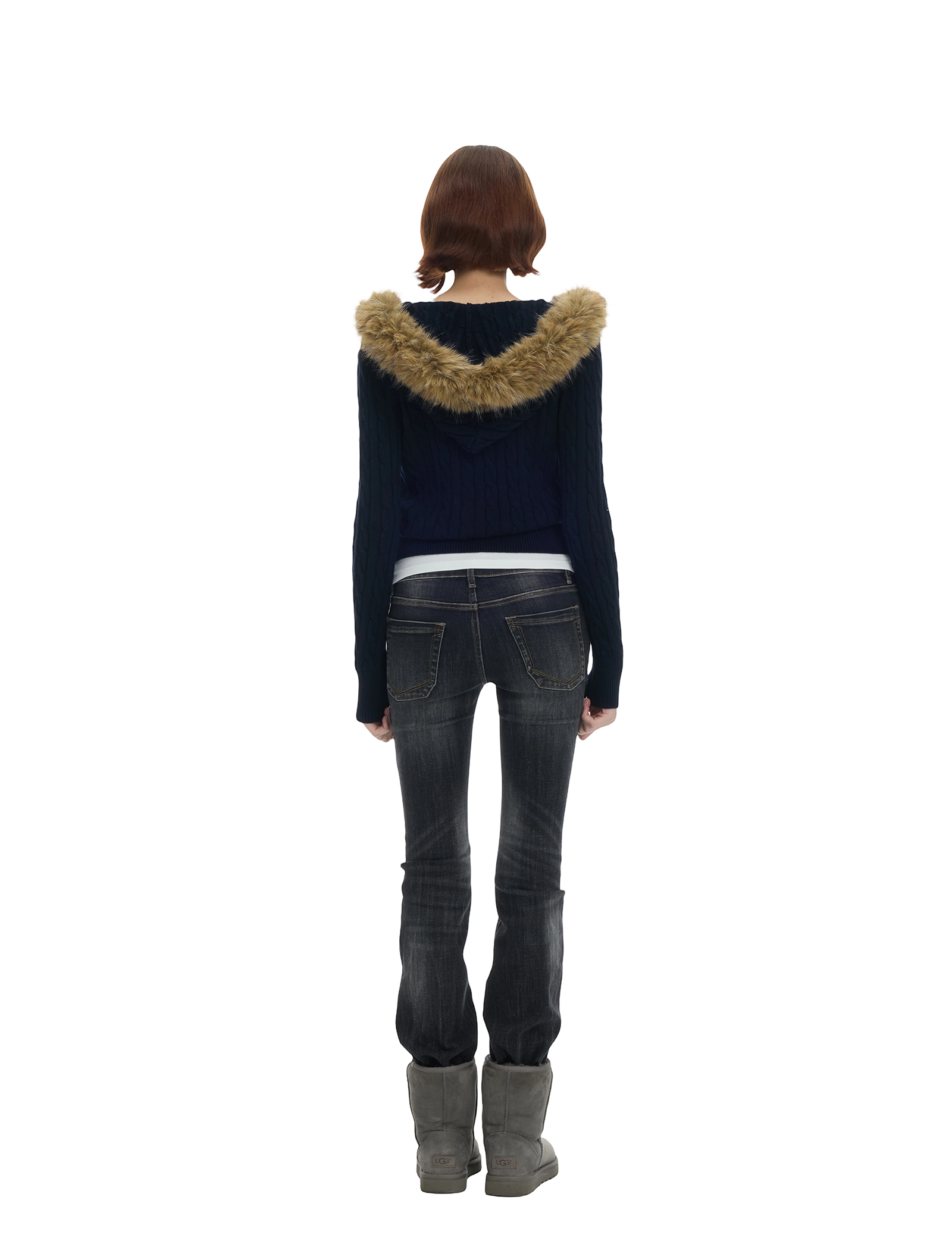 Veryrareme Low-Waisted Bamboo Pattern Retro Washed Stretchy Bootcut Jeans