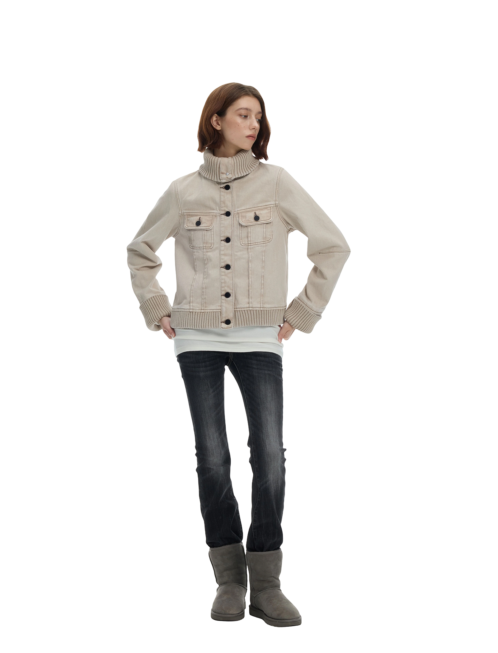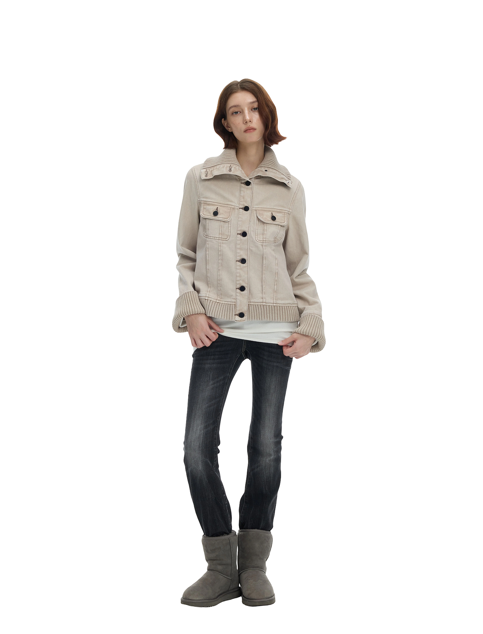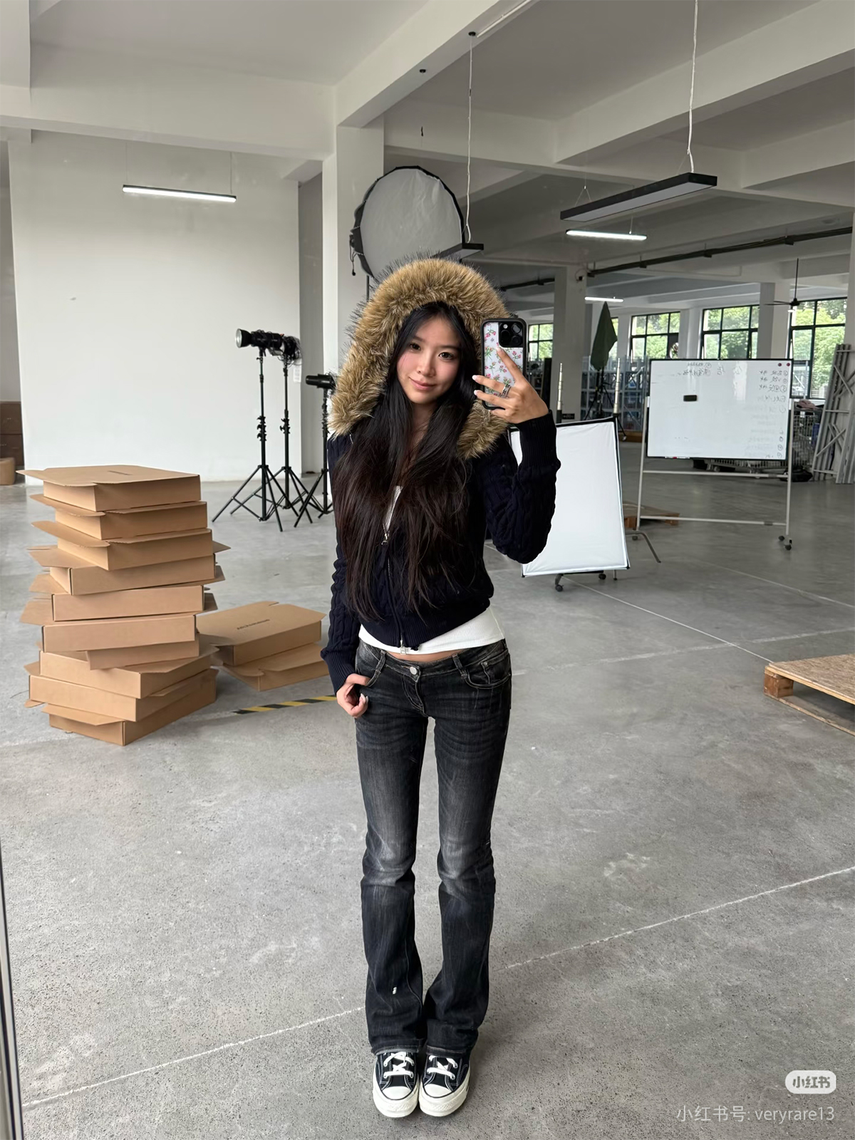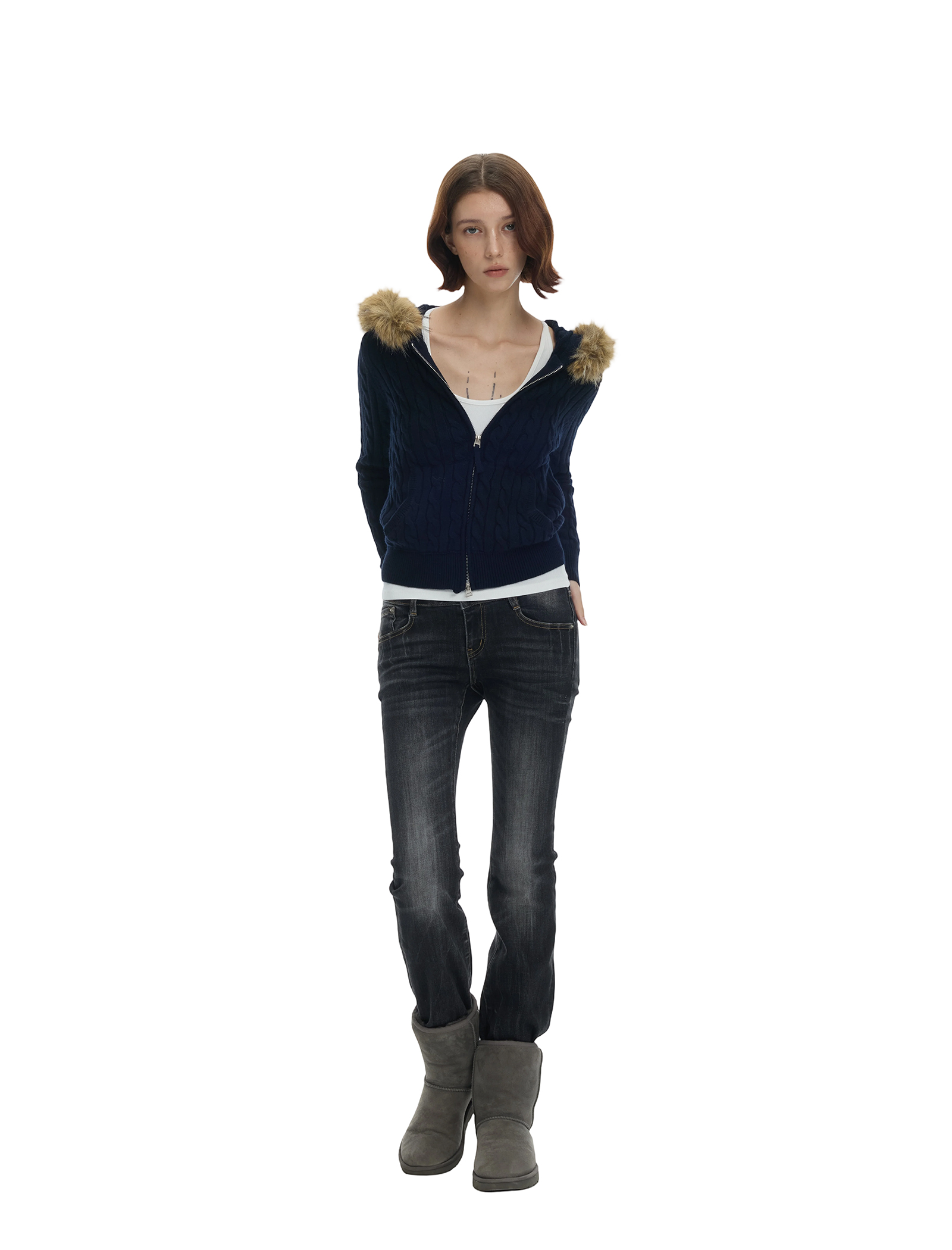 Veryrareme Low-Waisted Bamboo Pattern Retro Washed Stretchy Bootcut Jeans