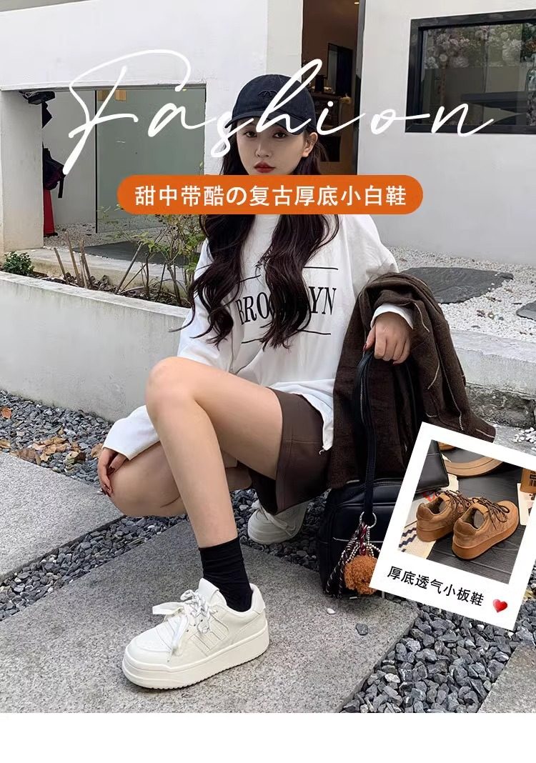 Three-Layer Thick-Soled White Sneakers for Women, 2025 Spring New Genuine Leather German Training Shoes, Round-Toe Lace-Up Sports Casual Sneakers, Versatile