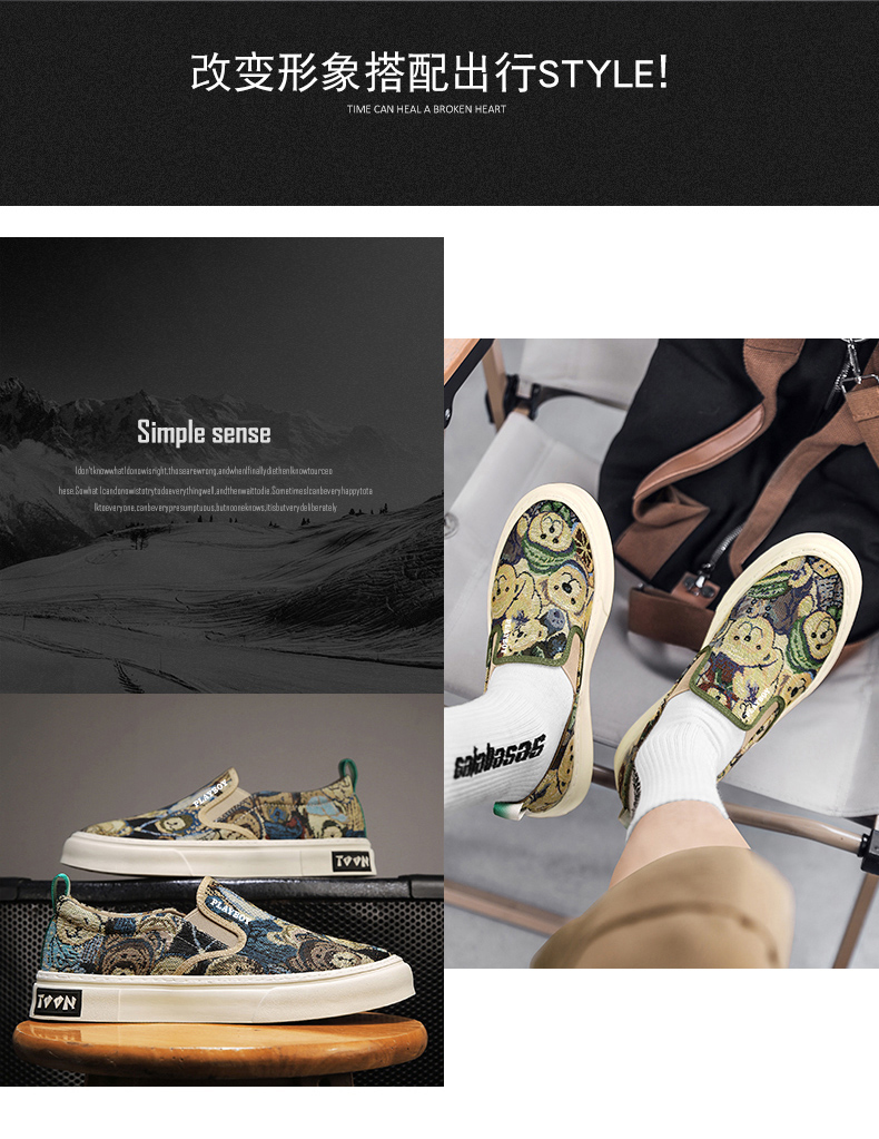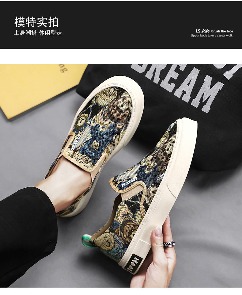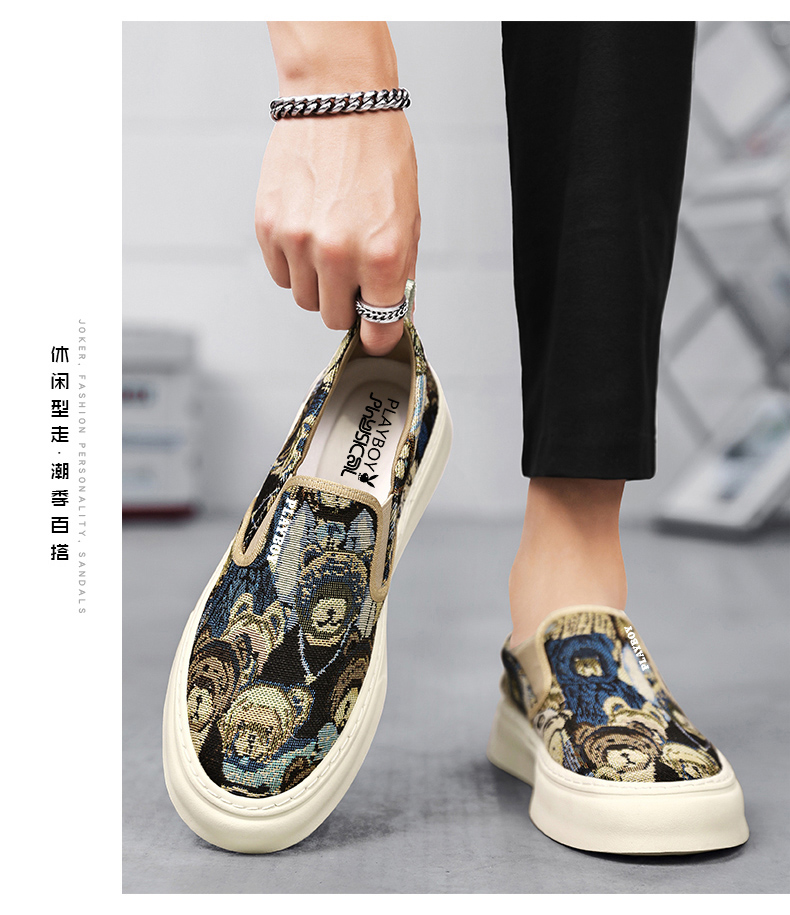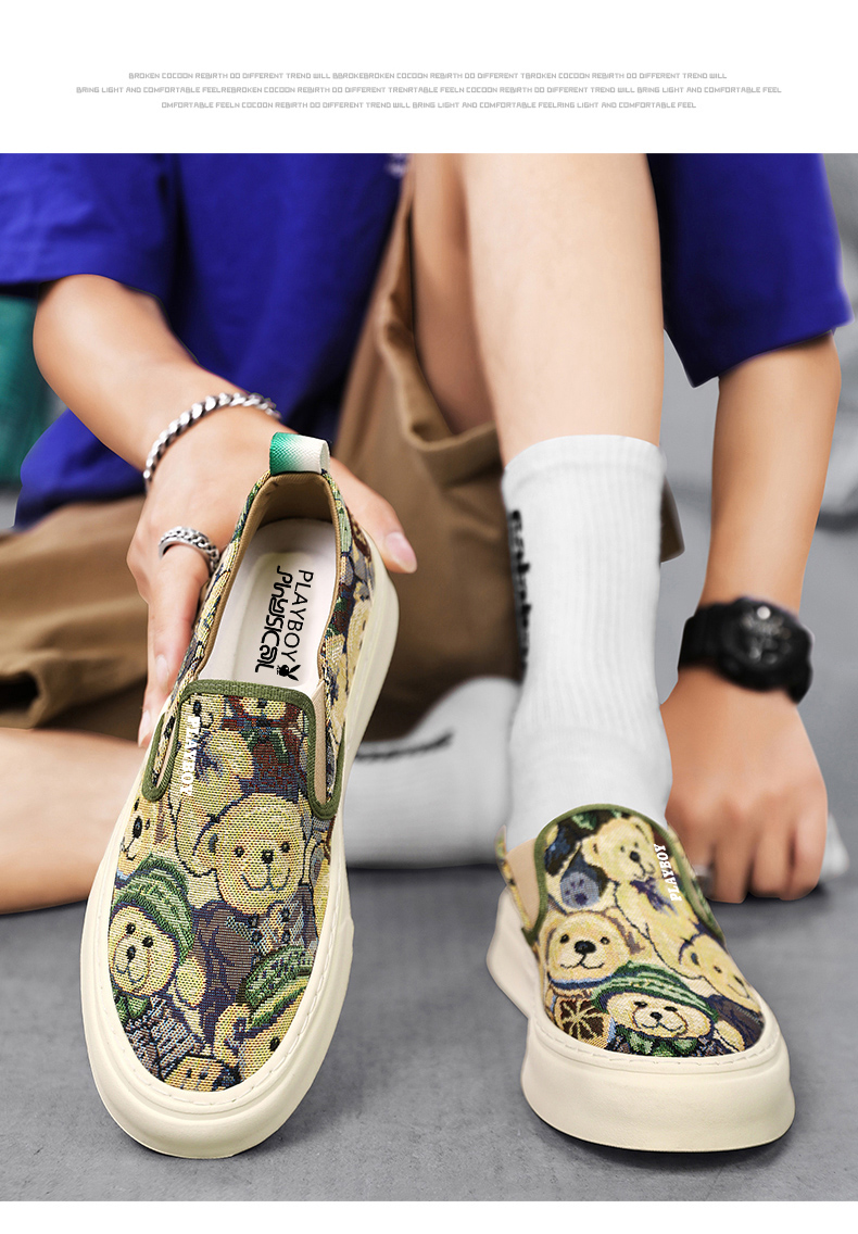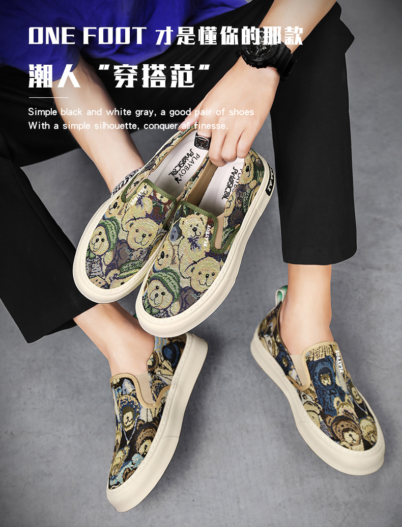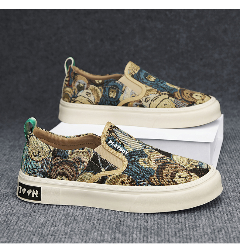 Playboy Canvas Shoes for Men, New Autumn Style, Versatile Slip-On Old Beijing Cloth Shoes, National Trend Soft-Soled Casual Sneakers