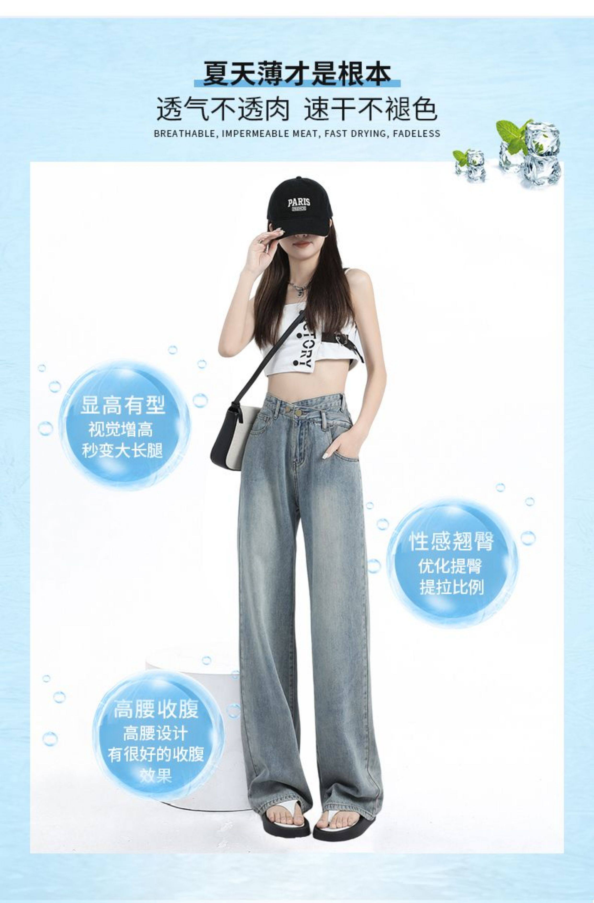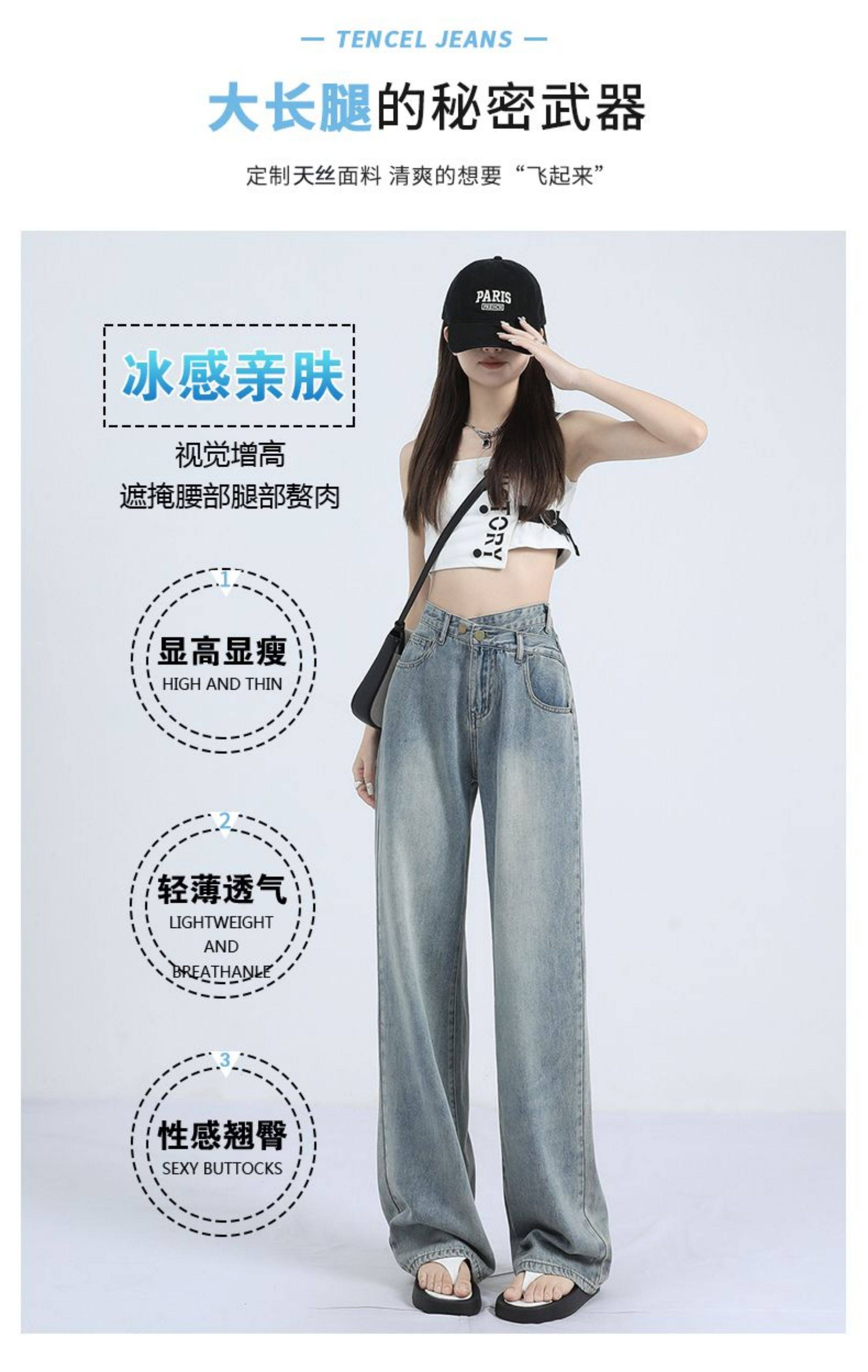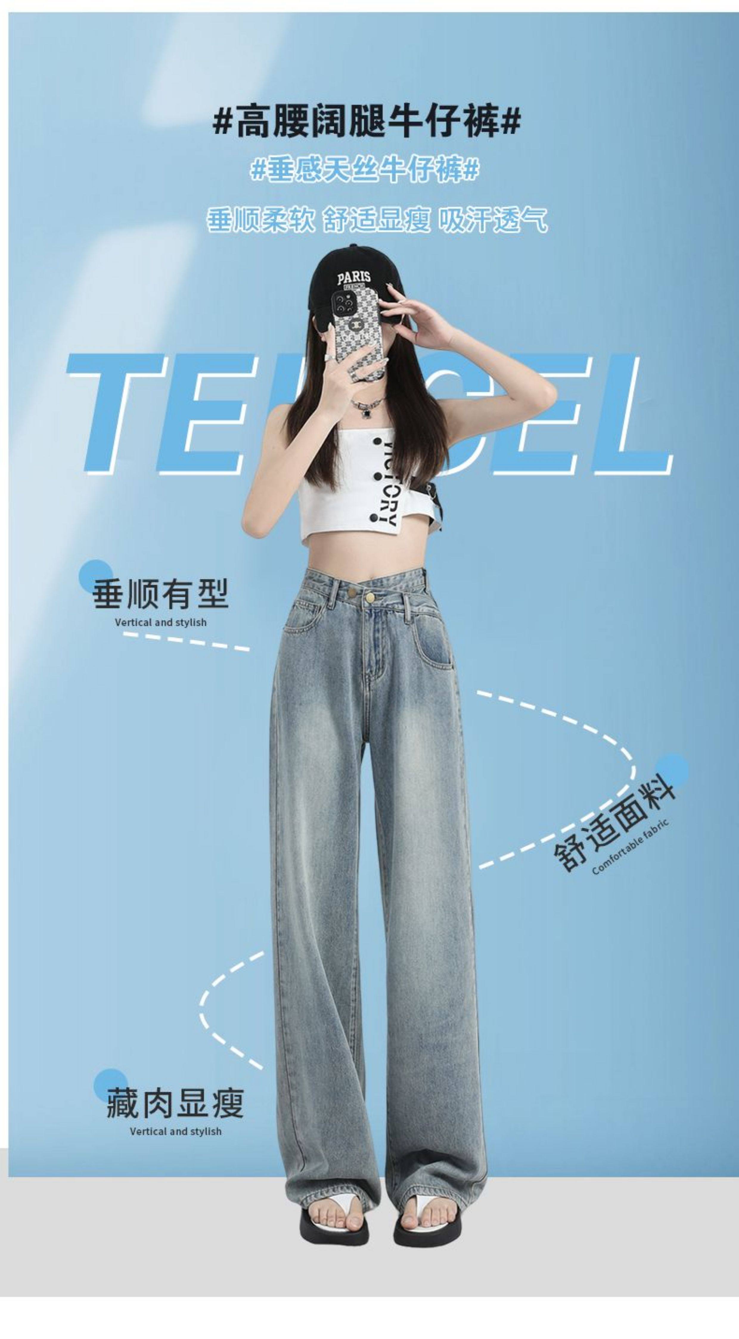 La Chapelle Retro Tencel Jeans for Women, Summer Thin Style 2025 New High-Waisted Slim Straight Wide-Leg Pants