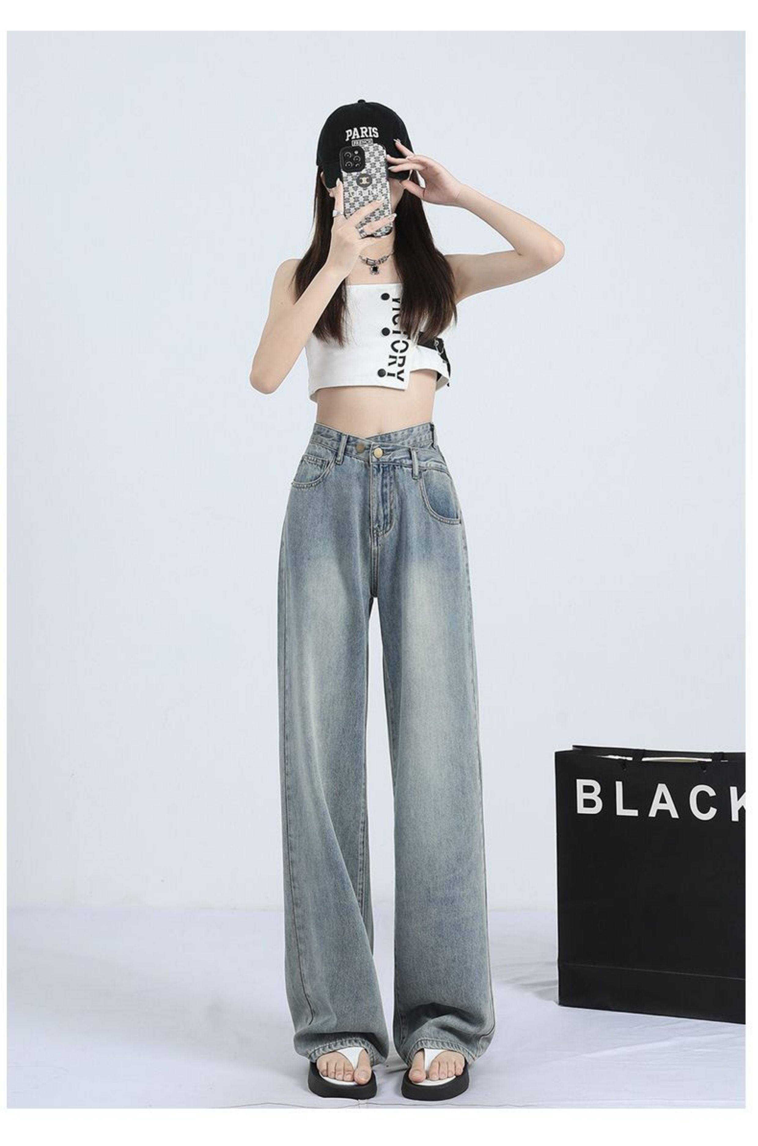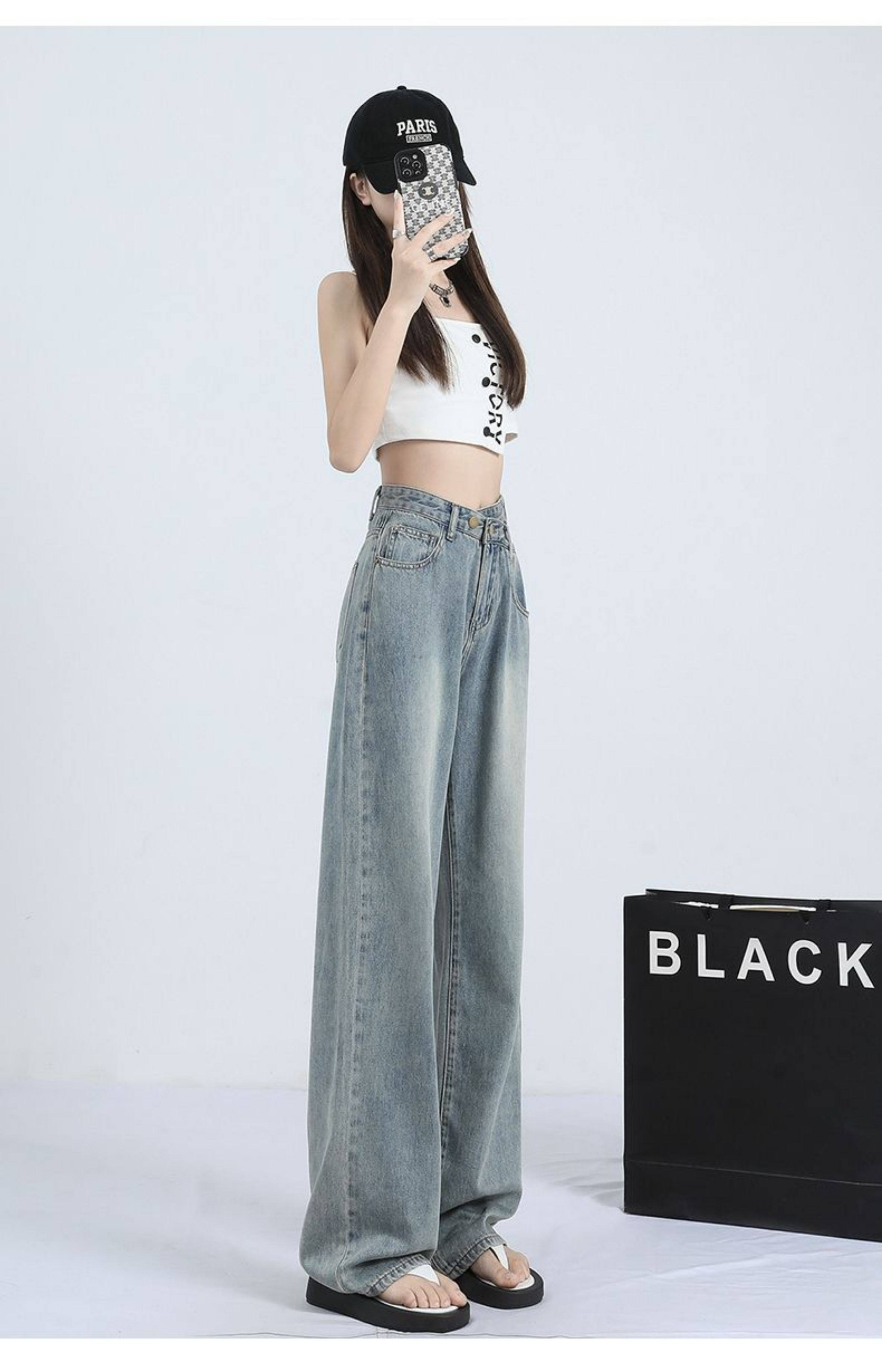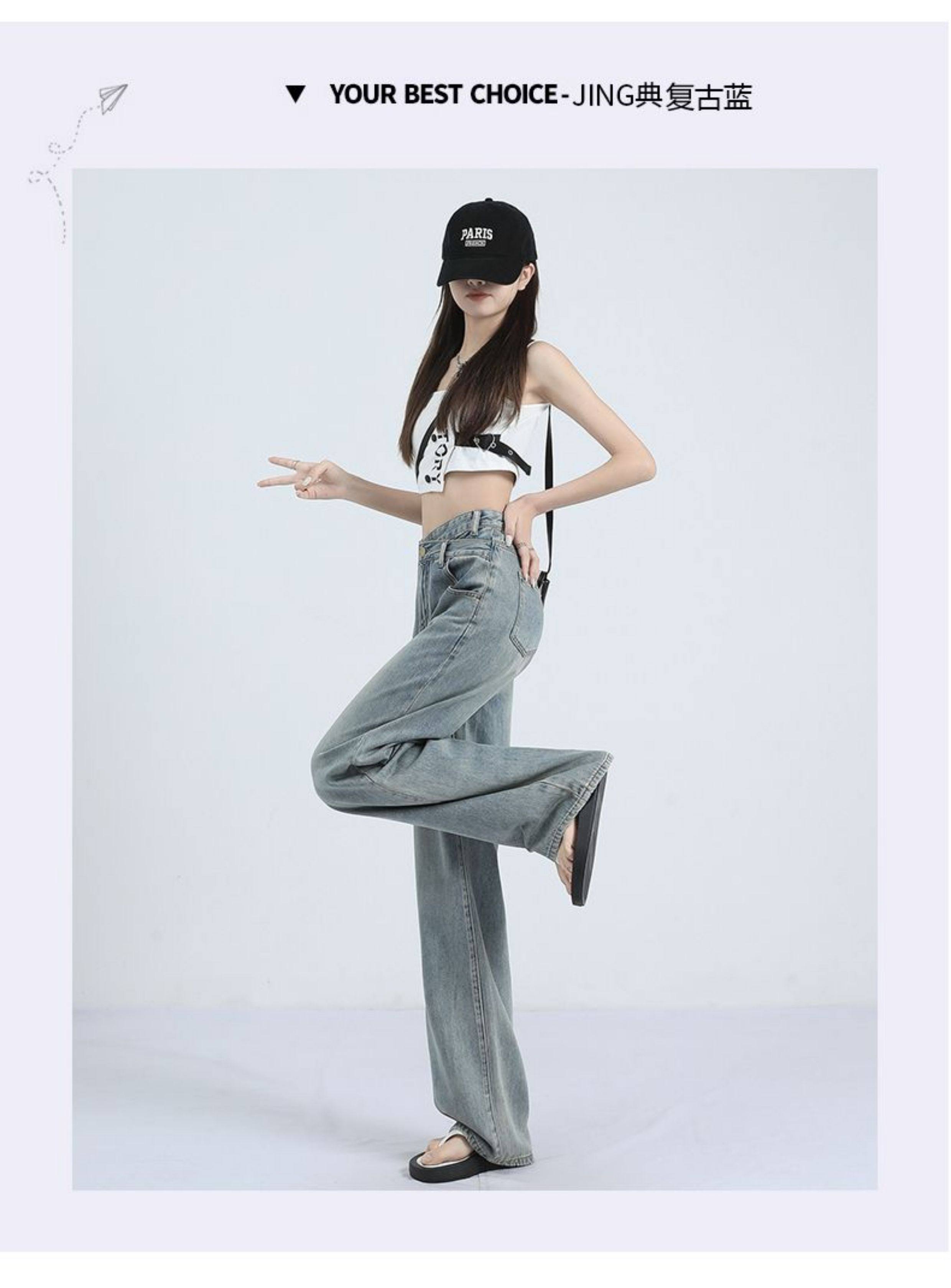 La Chapelle Retro Tencel Jeans for Women, Summer Thin Style 2025 New High-Waisted Slim Straight Wide-Leg Pants
