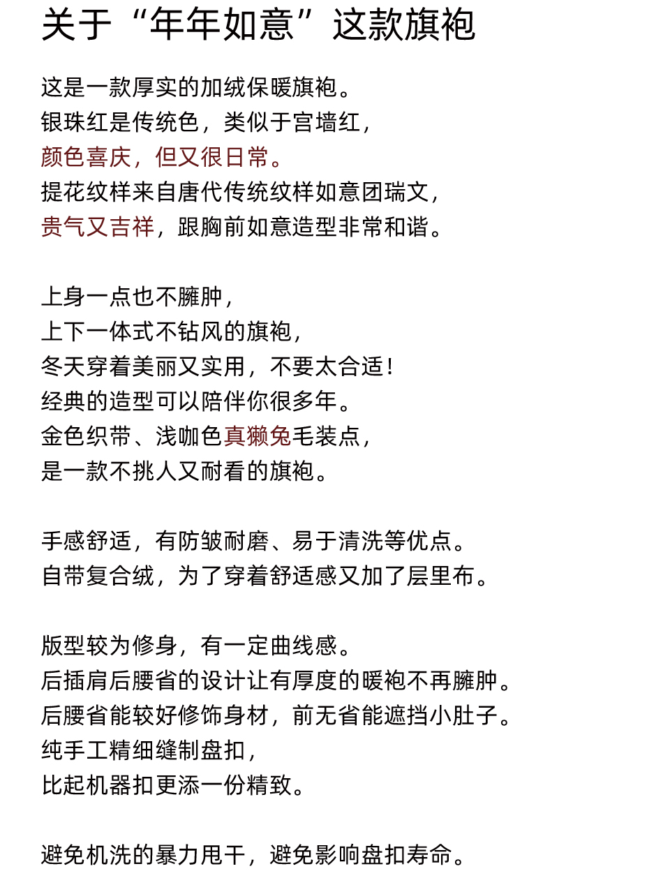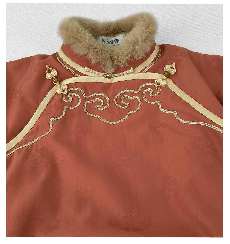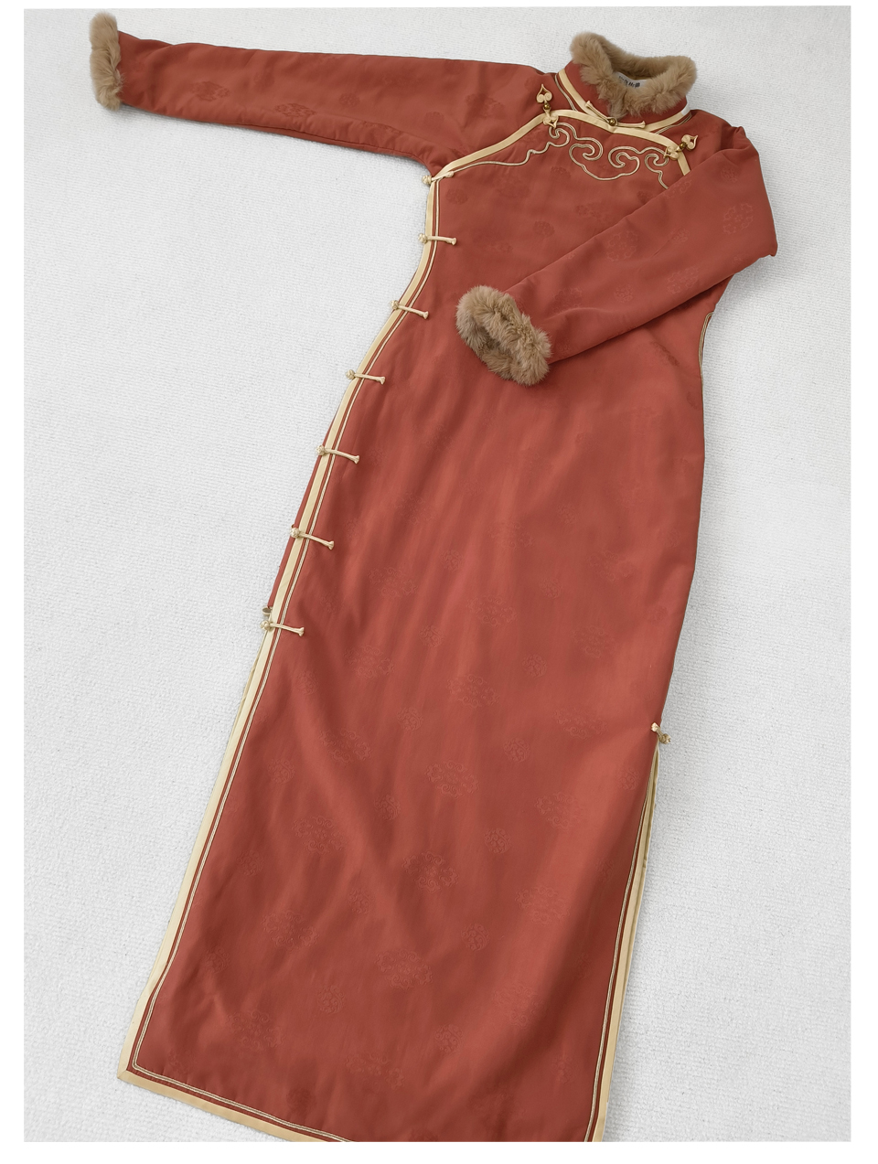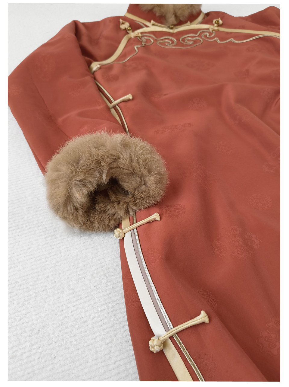 Good Luck Every Year, Festive Traditional Cheongsam for the New Year, Autumn and Winter Open-Front Warm Fleece-Lined Palace Wall Red Traditional Rabbit Fur Collar