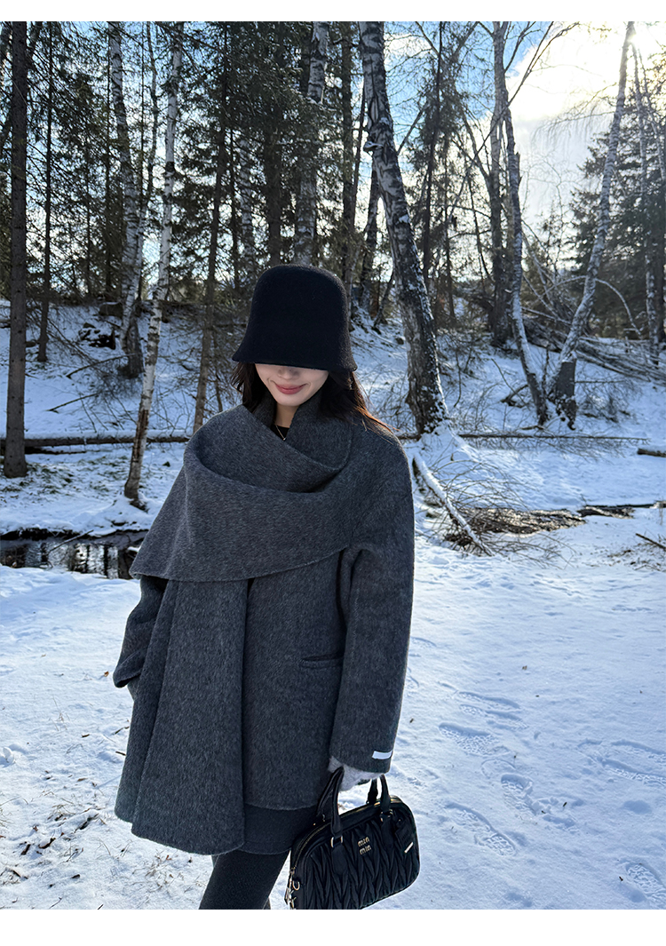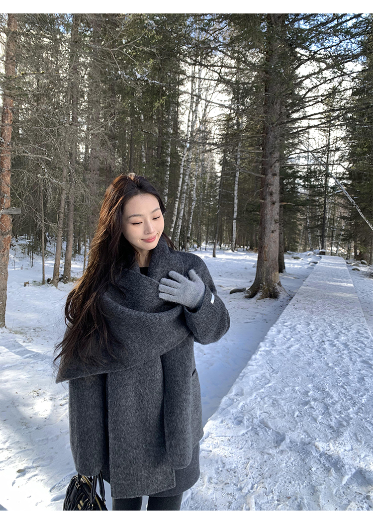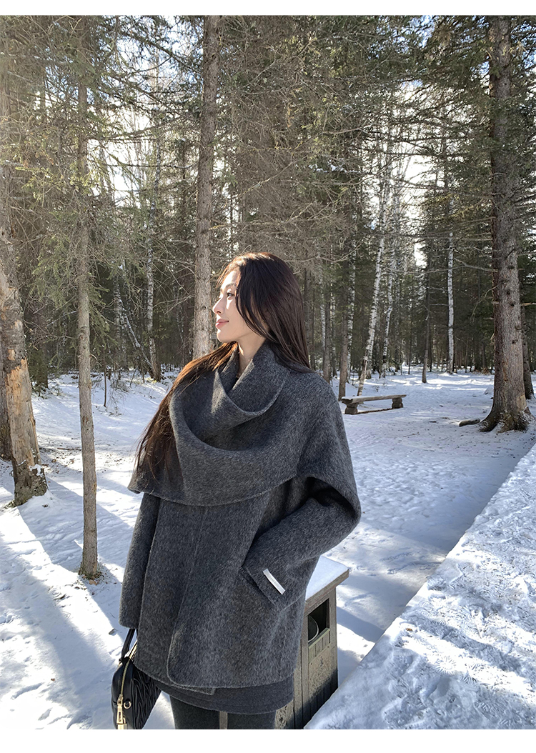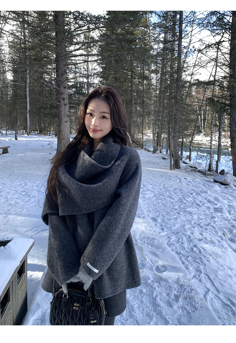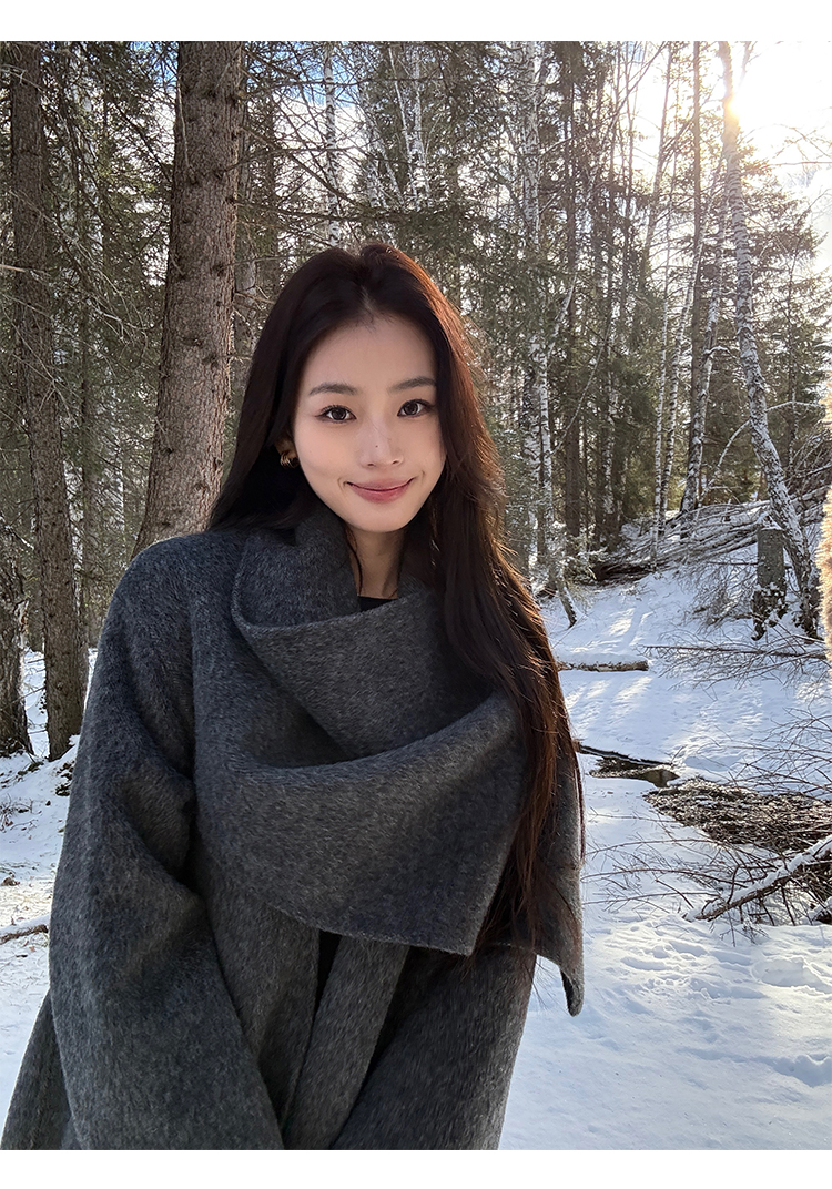 Pusumede Warm Fireplace Light Luxury Sheep Wool Double-Sided Woolen Coat Women's Elegant Scarf Shawl Woolen Jacket