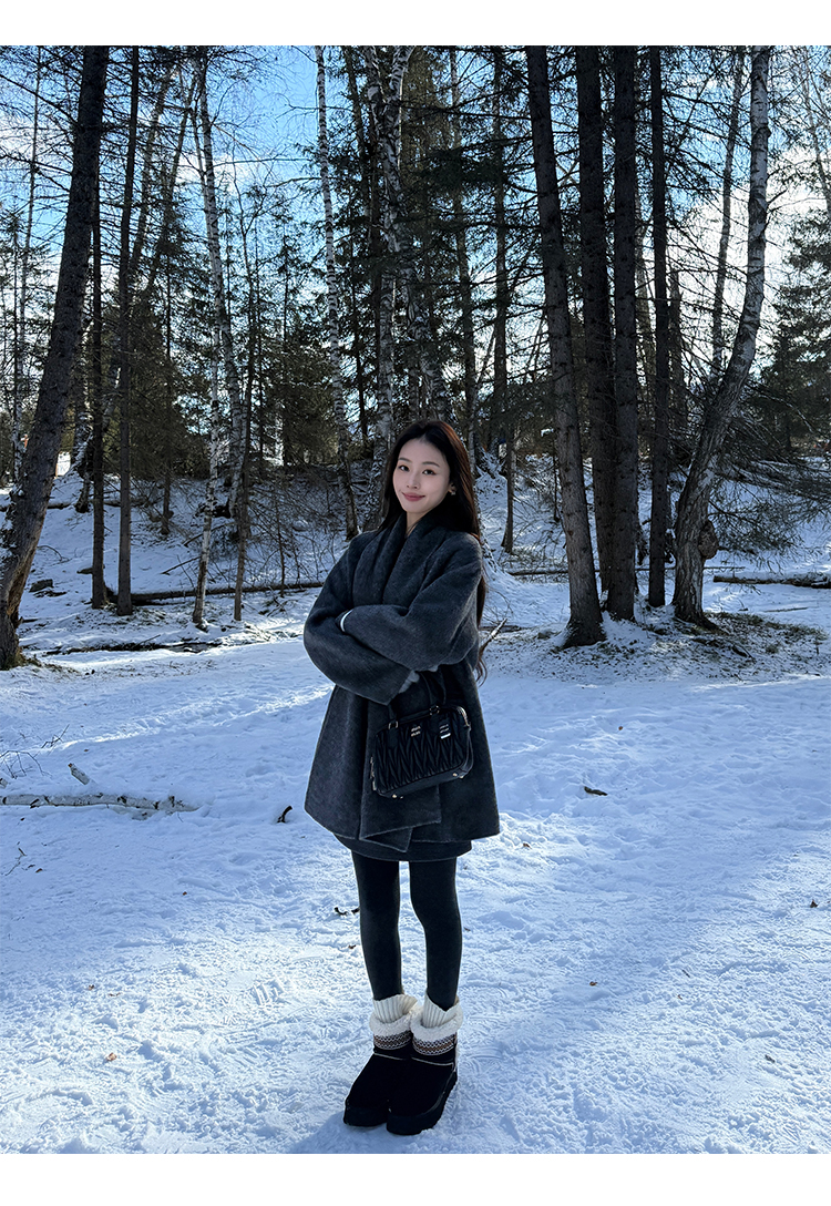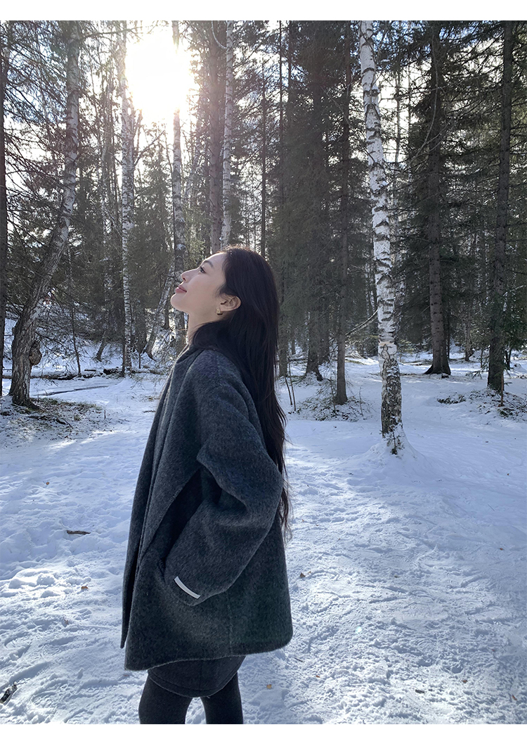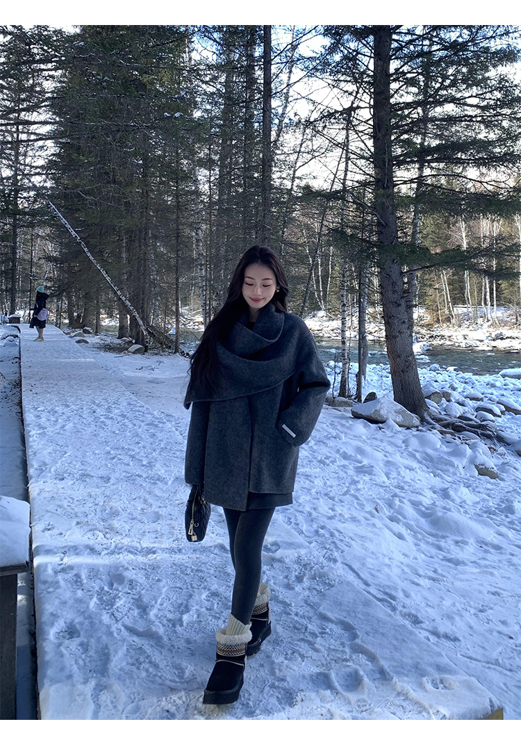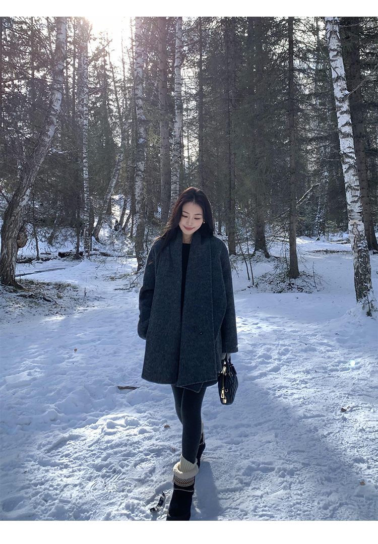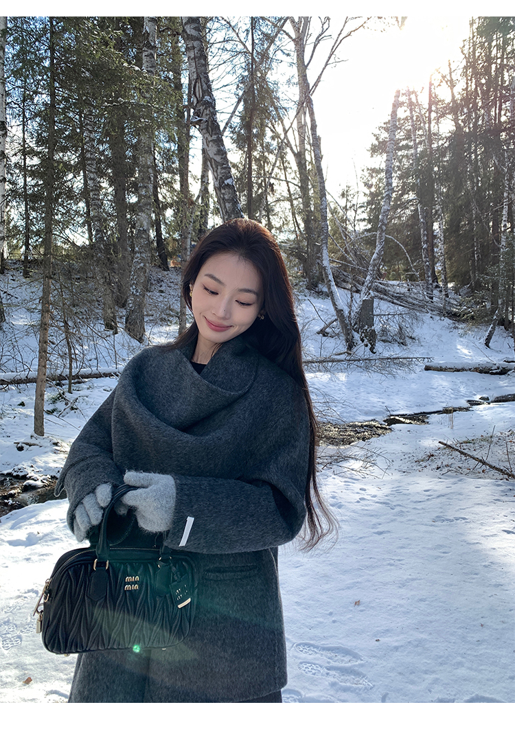 Pusumede Warm Fireplace Light Luxury Sheep Wool Double-Sided Woolen Coat Women's Elegant Scarf Shawl Woolen Jacket