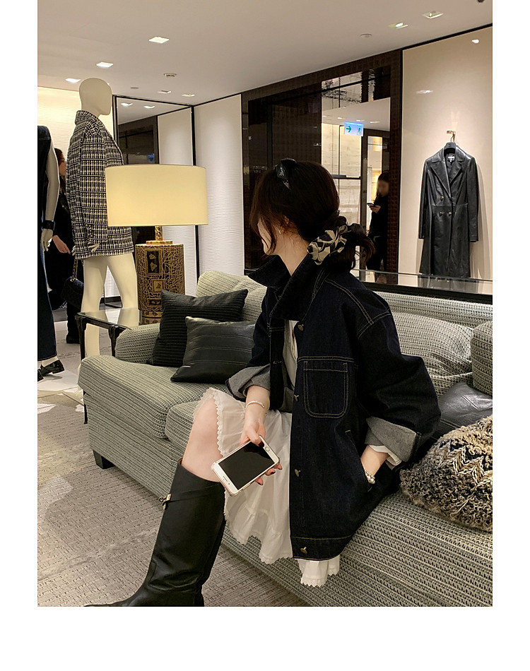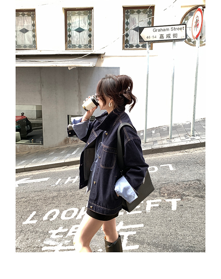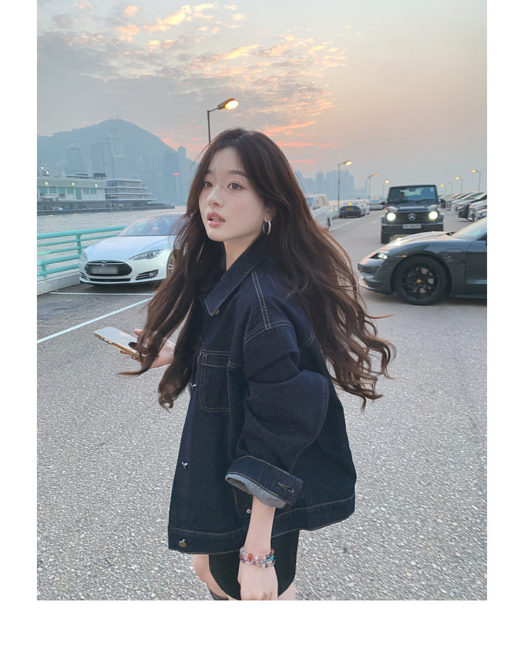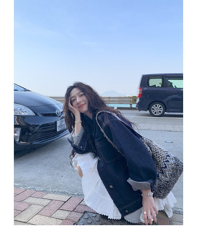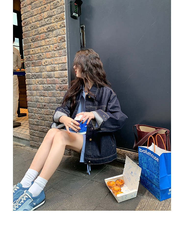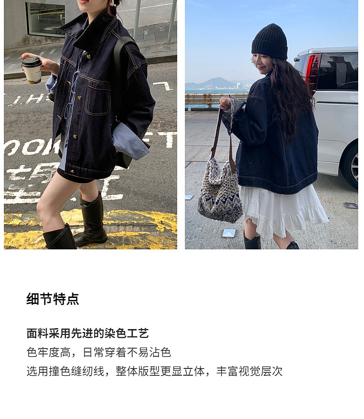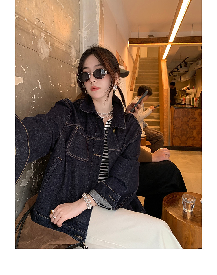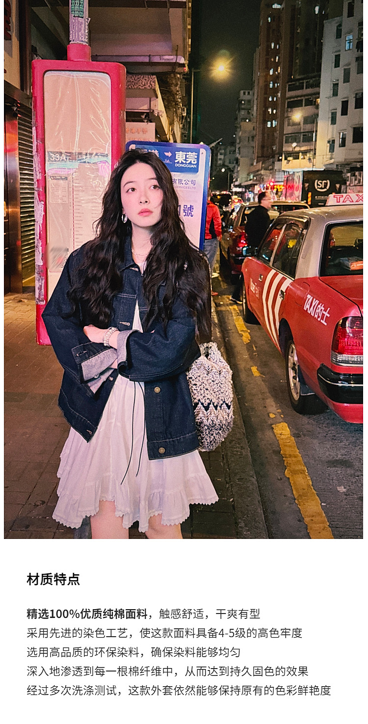 Xia Shiwen All-Cotton Reactive Dyed Lapel Long-Sleeve Loose Natural Color Denim Jacket Versatile Casual Top for Women Spring