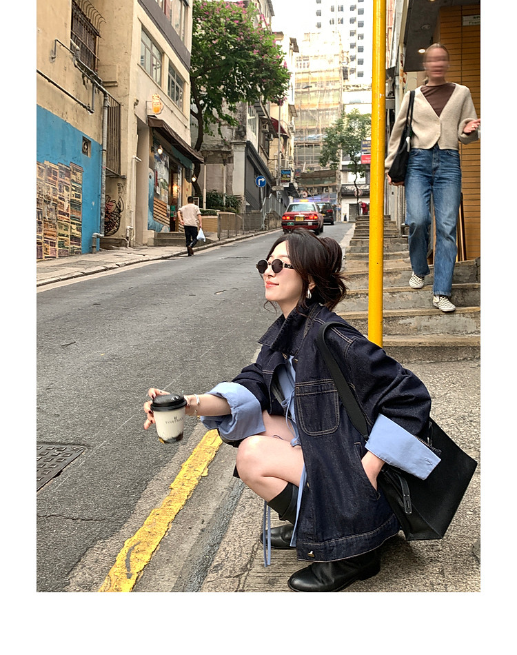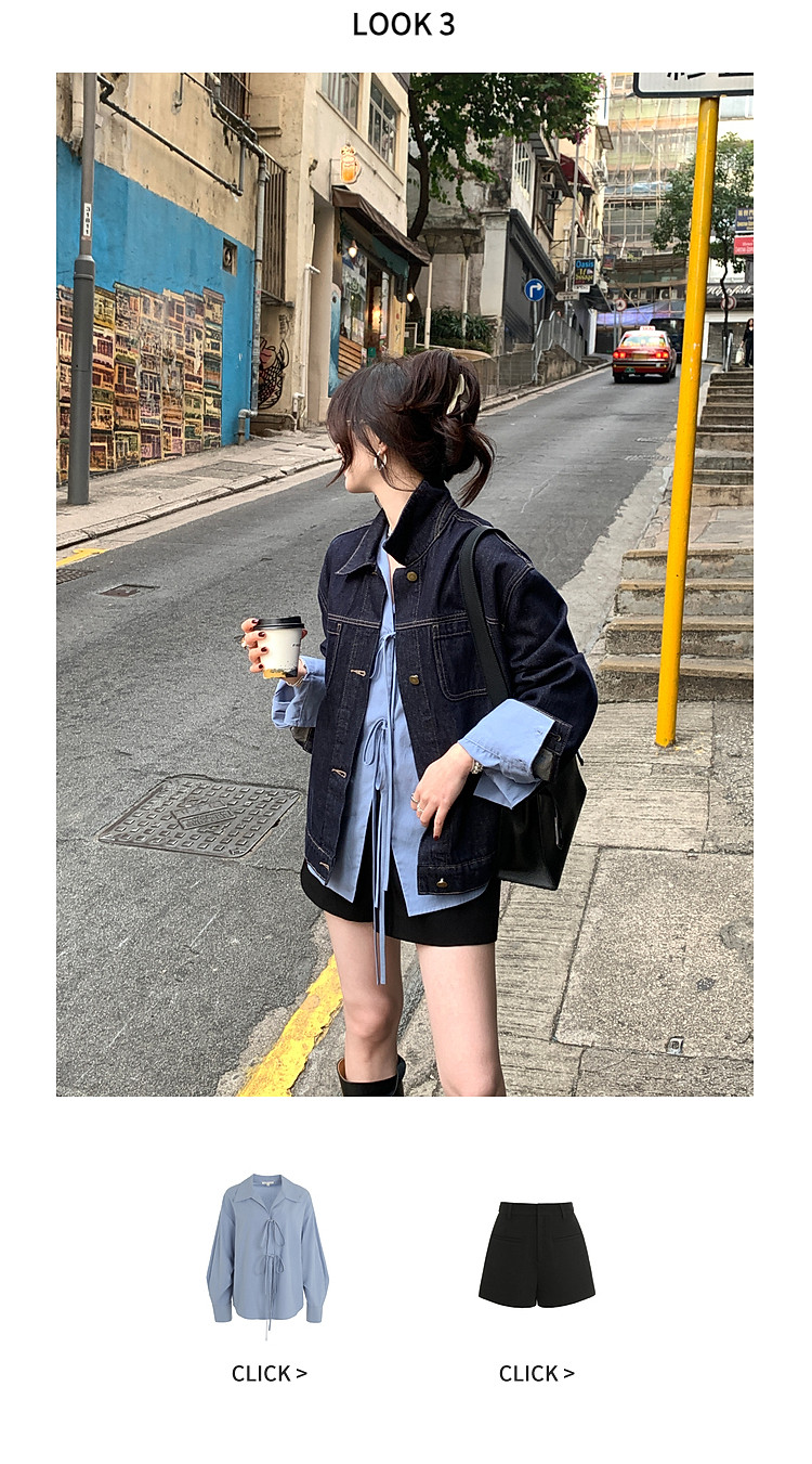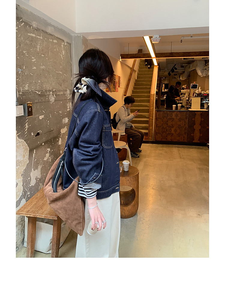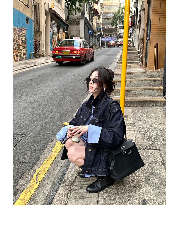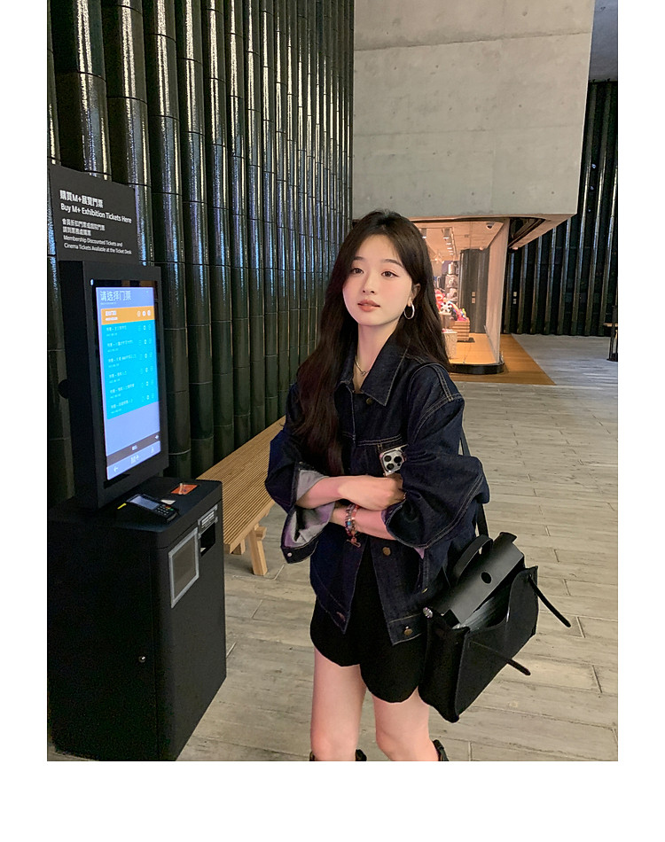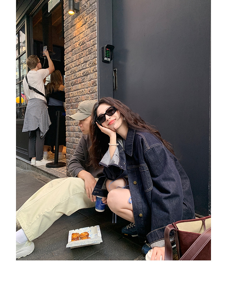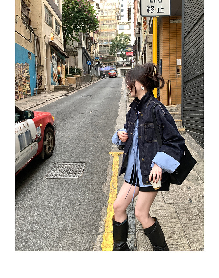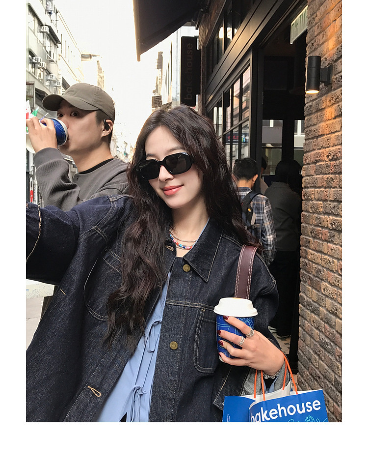 Xia Shiwen All-Cotton Reactive Dyed Lapel Long-Sleeve Loose Natural Color Denim Jacket Versatile Casual Top for Women Spring