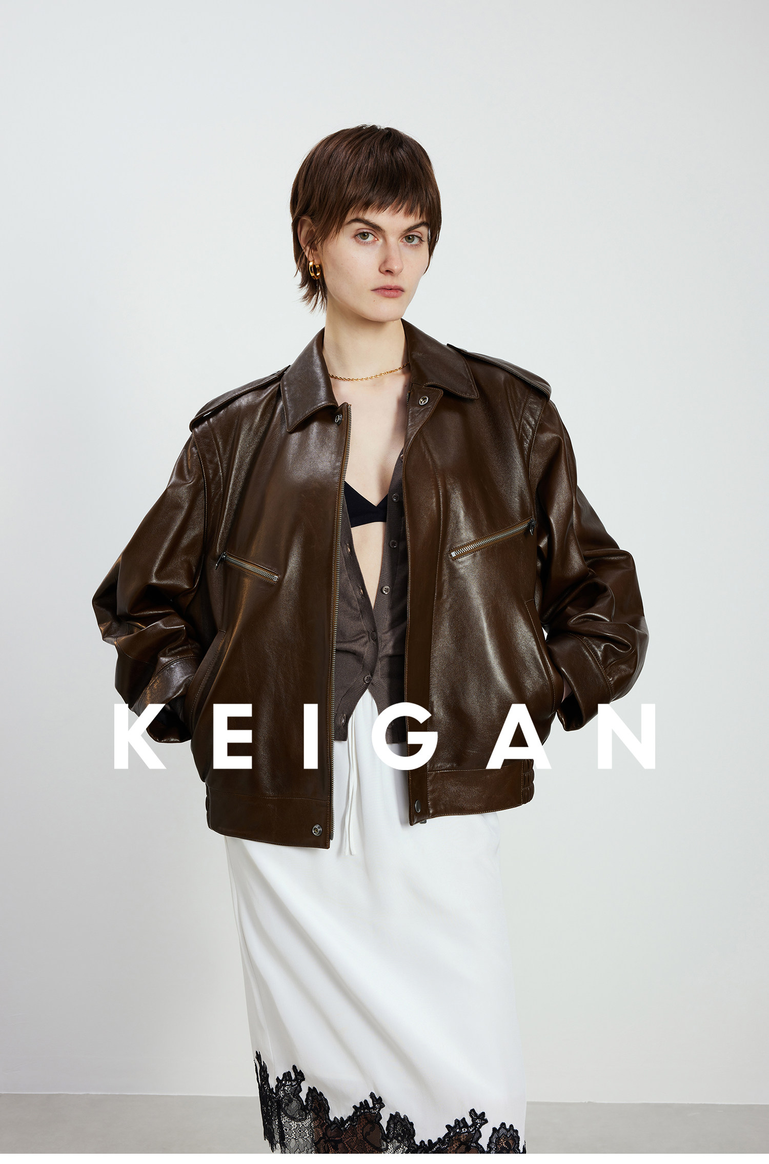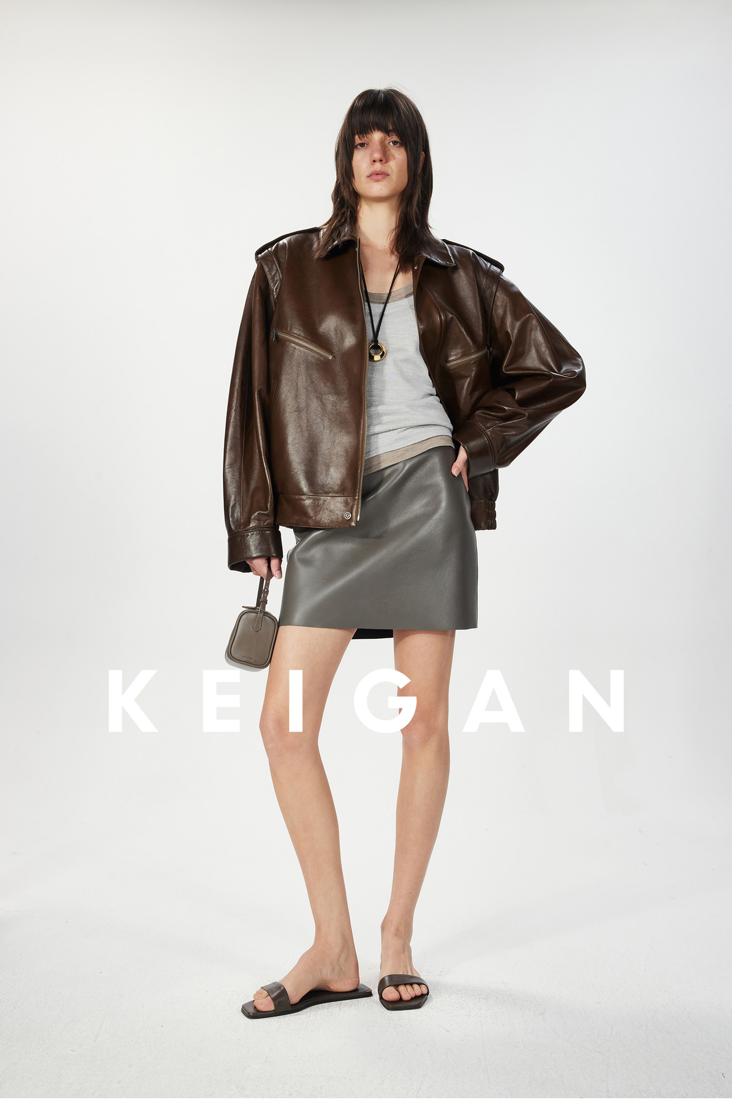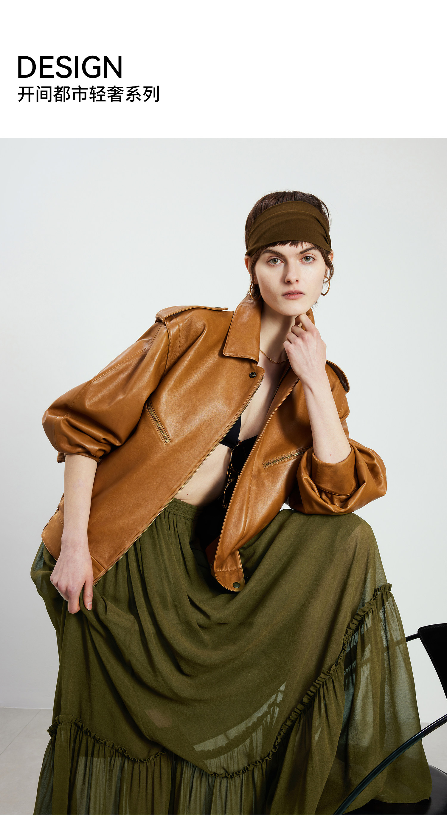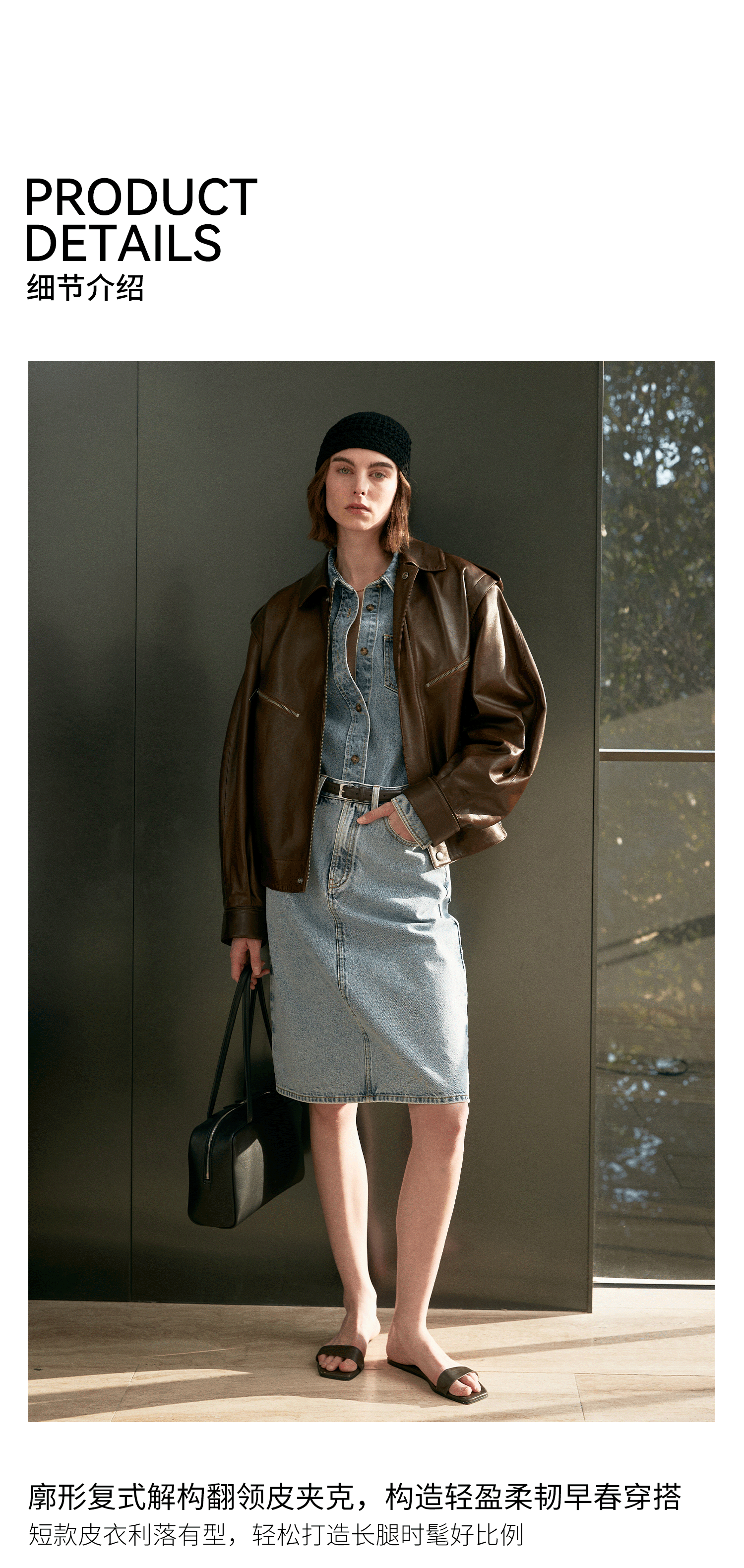 Open-Style/Modern Show Light and Flexible Oil-Waxed Lambskin Deconstructed Fashionable Lapel Silhouette Jacket