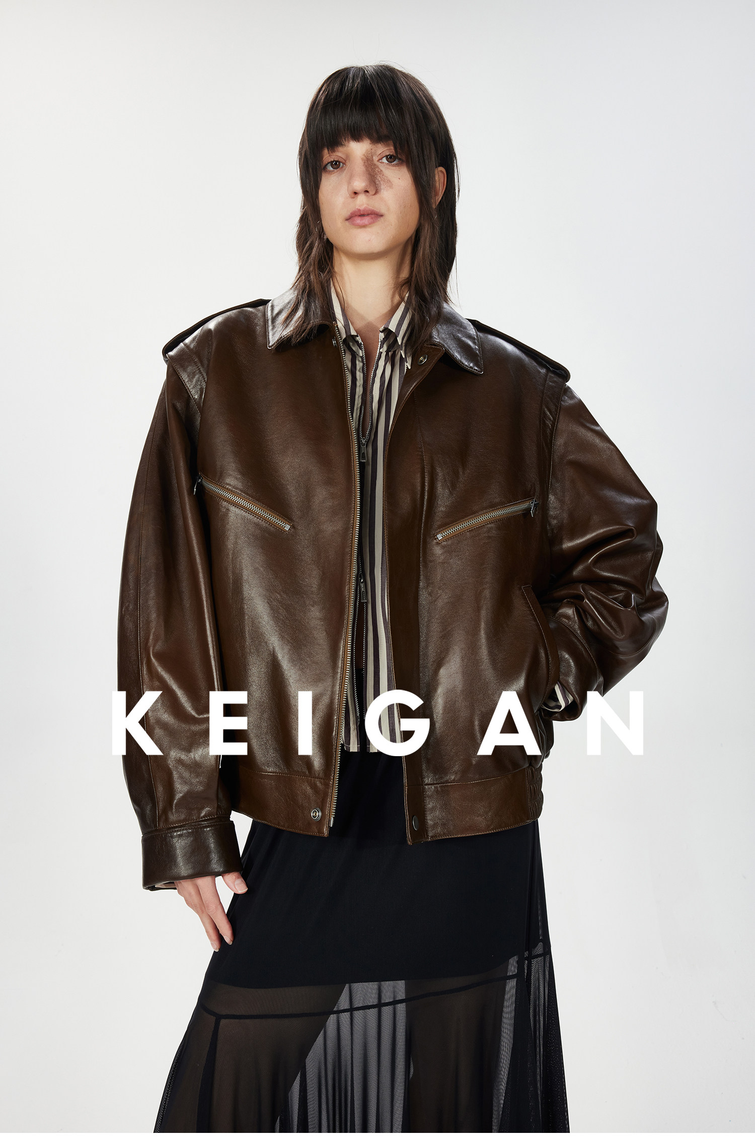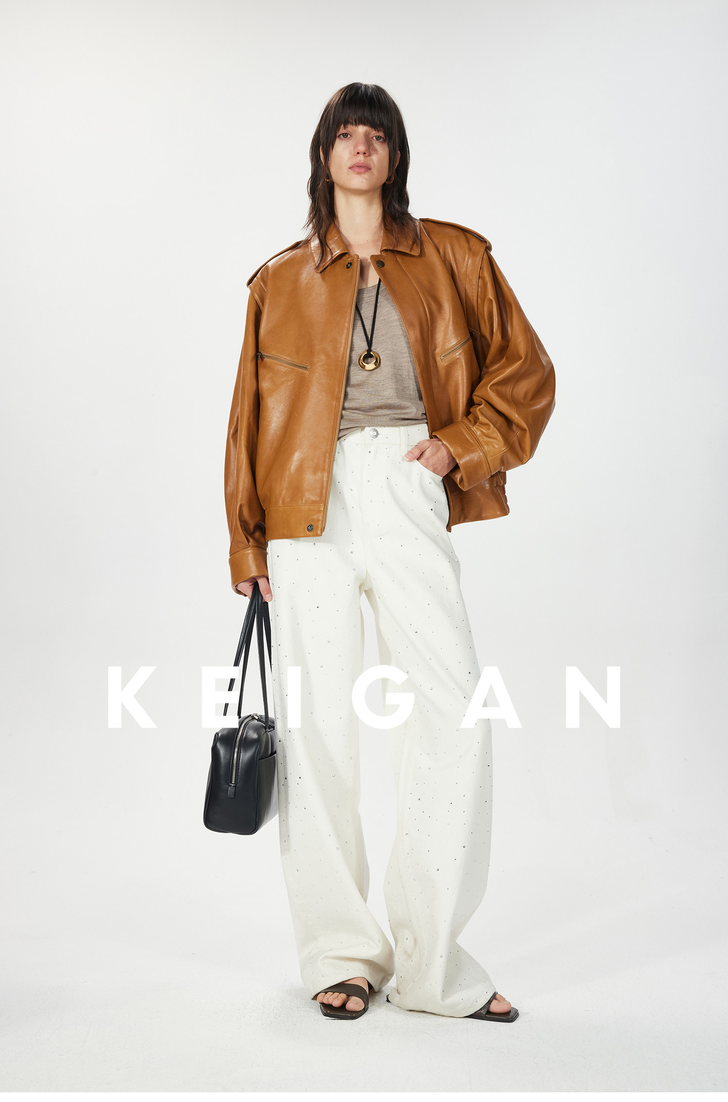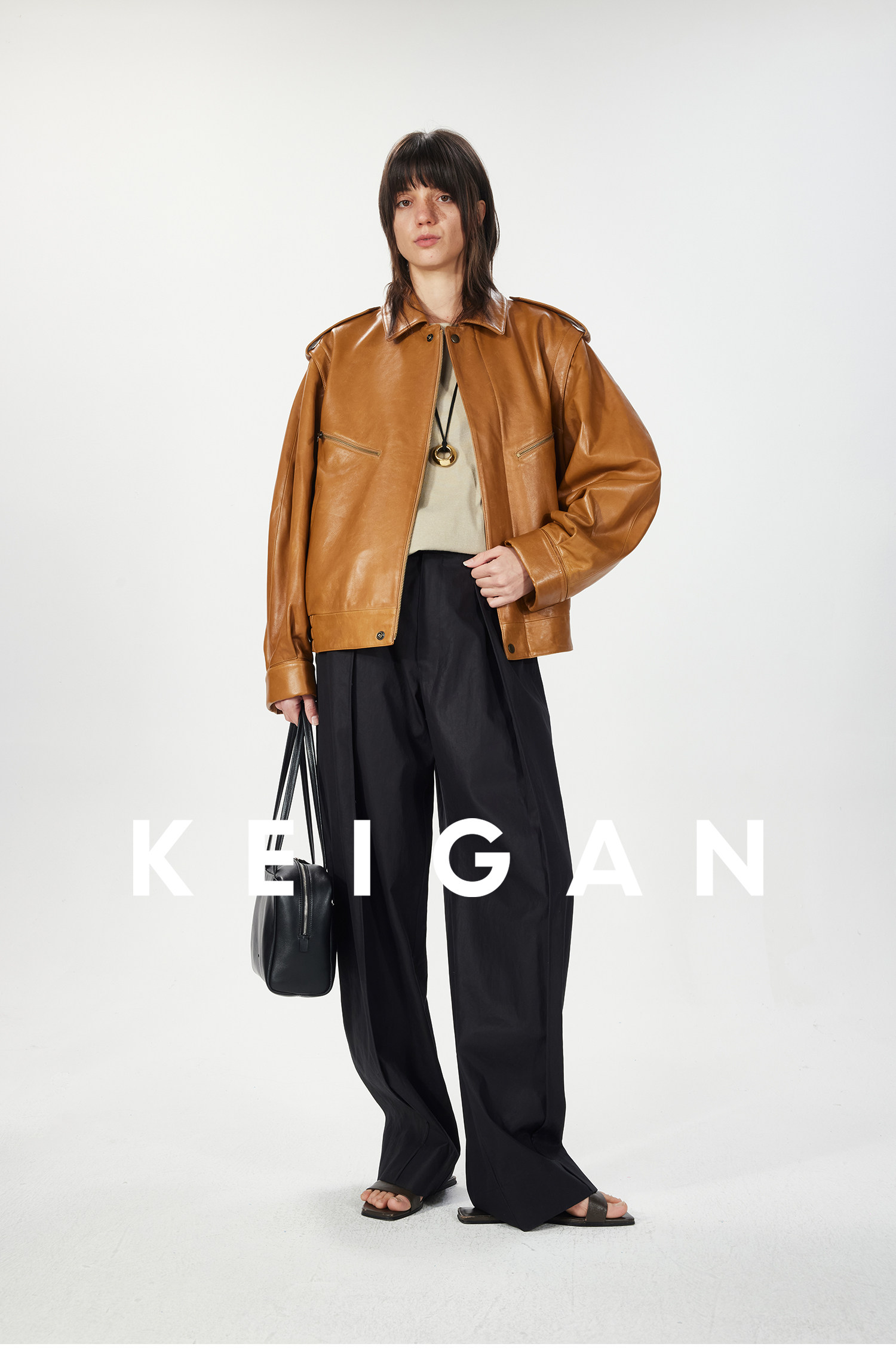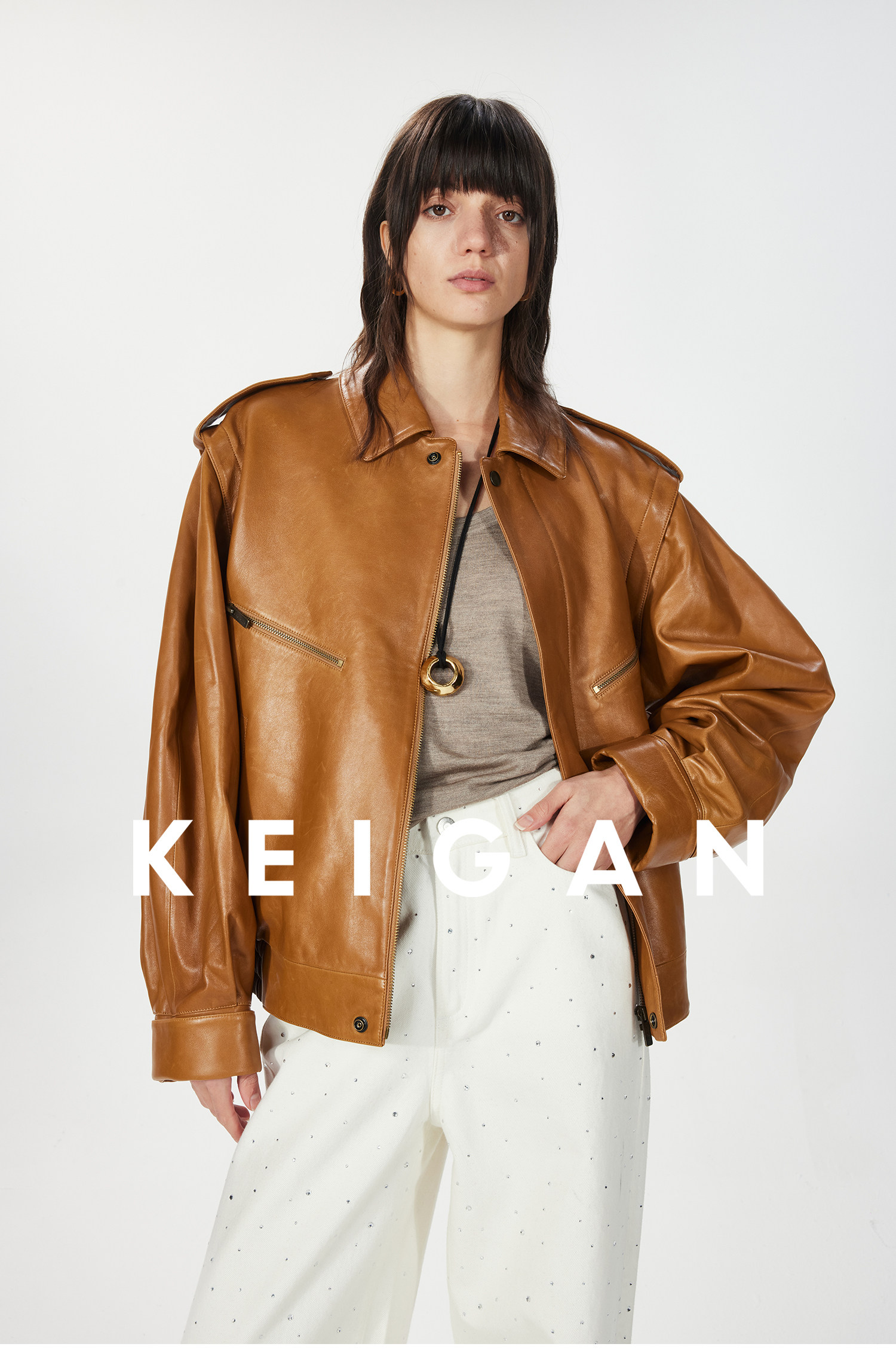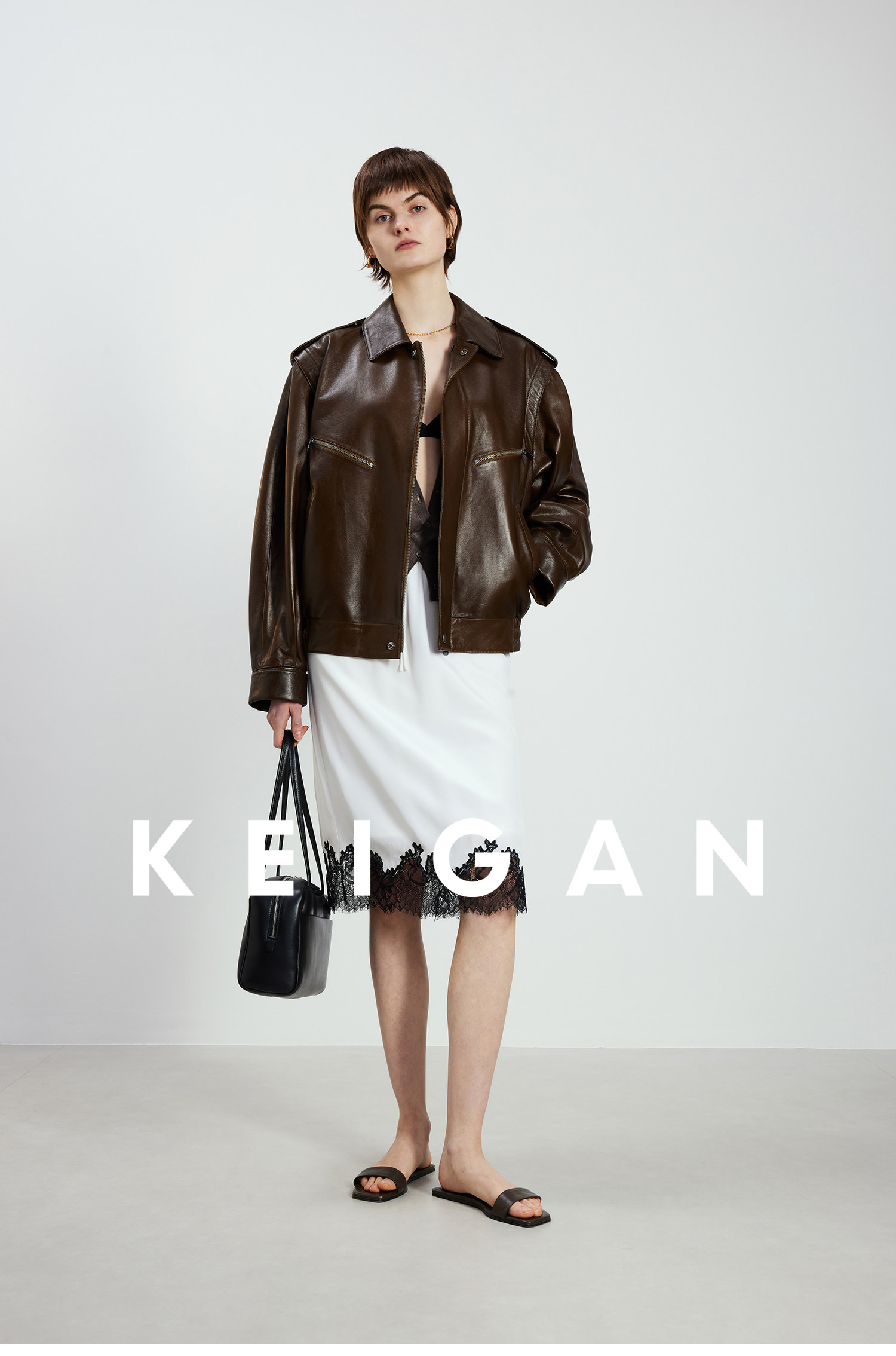 Open-Style/Modern Show Light and Flexible Oil-Waxed Lambskin Deconstructed Fashionable Lapel Silhouette Jacket