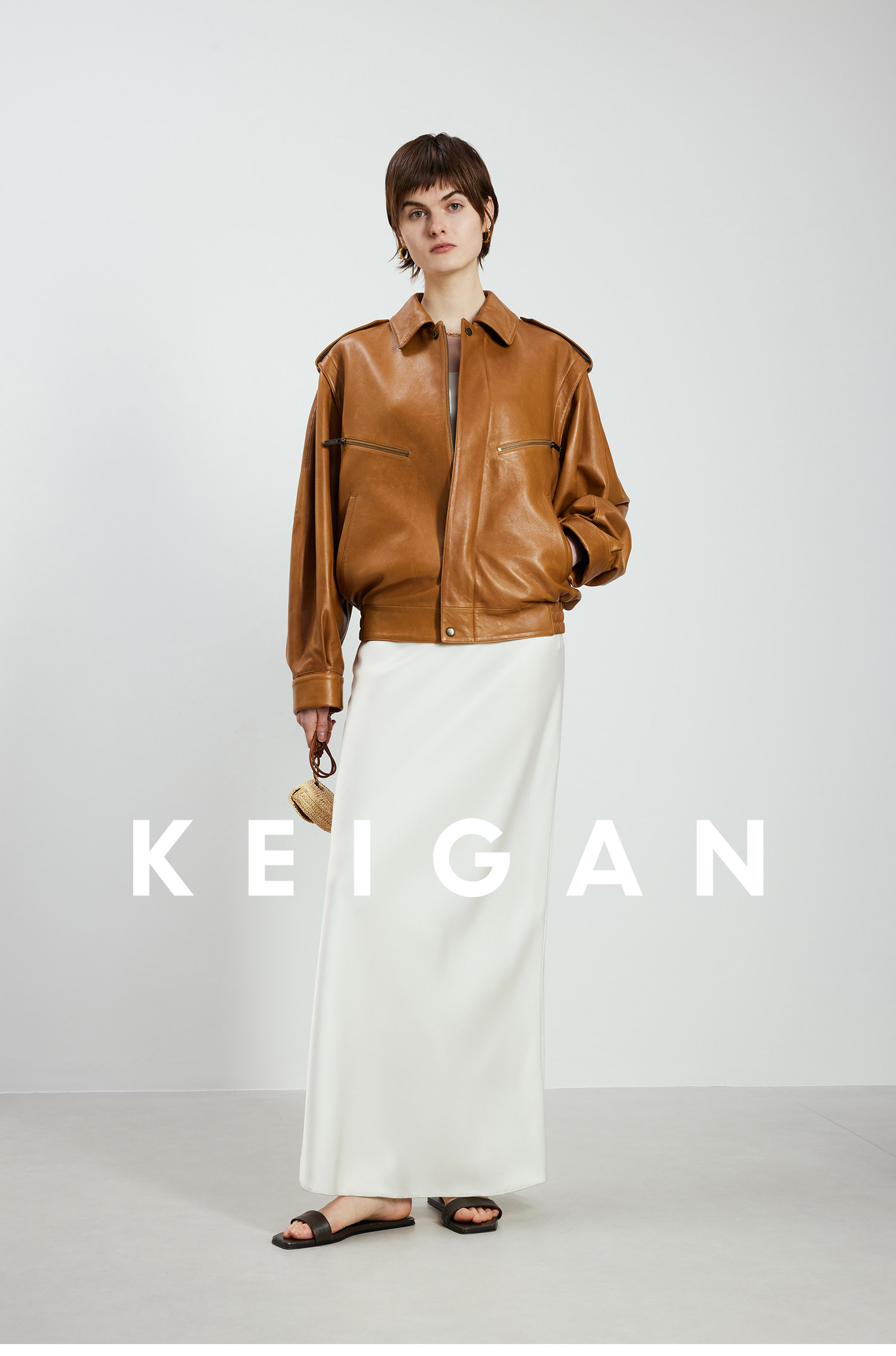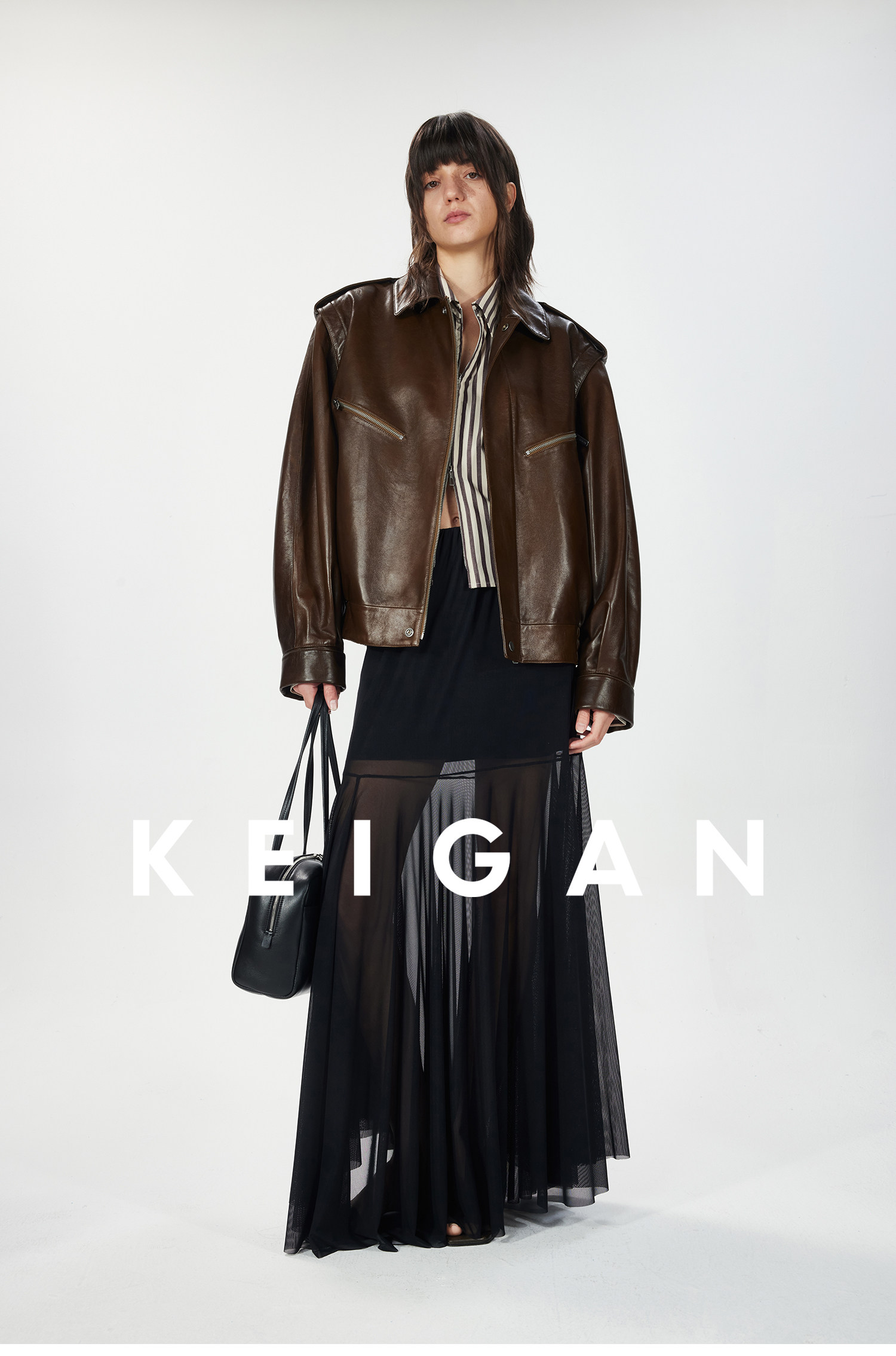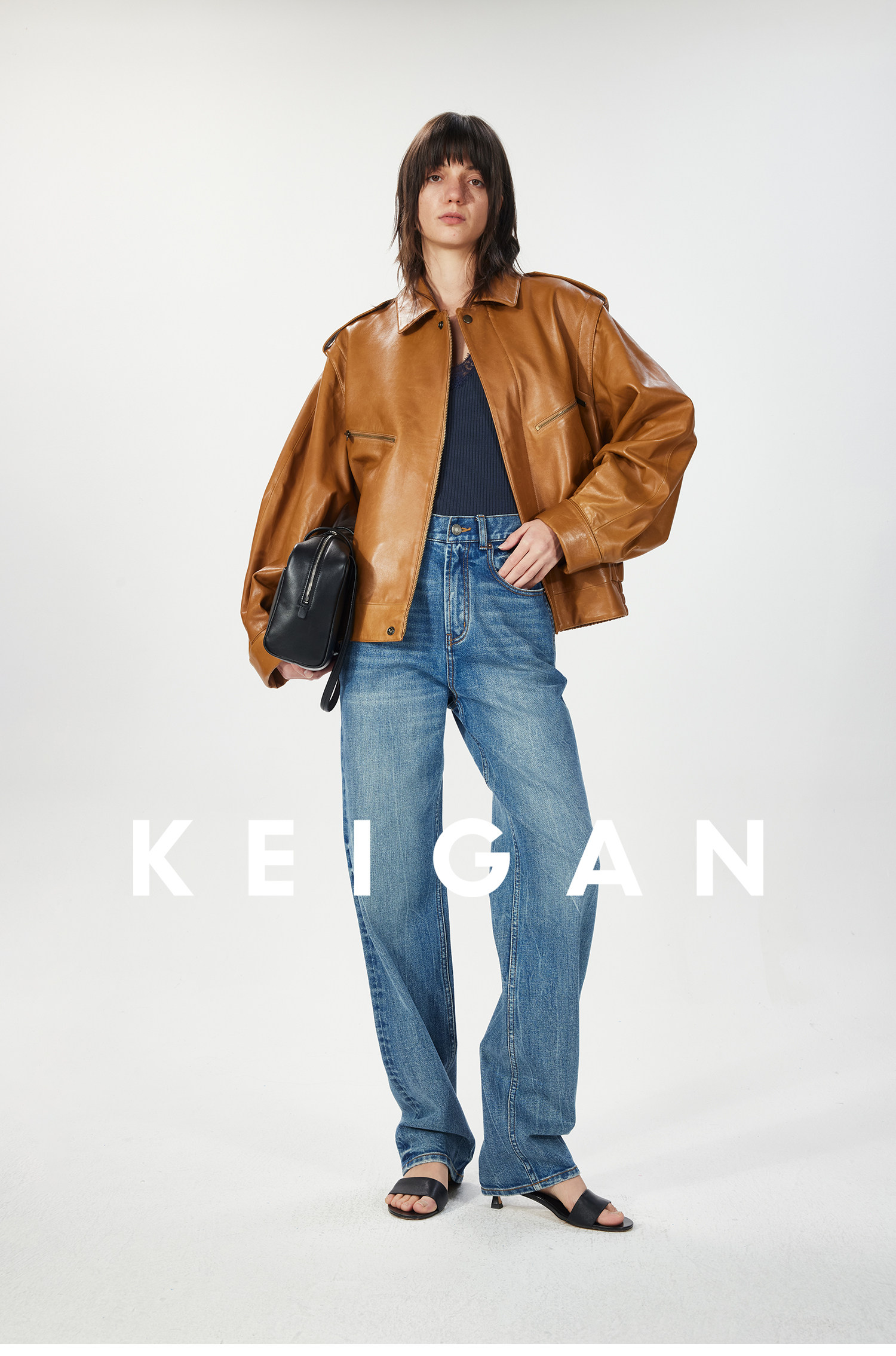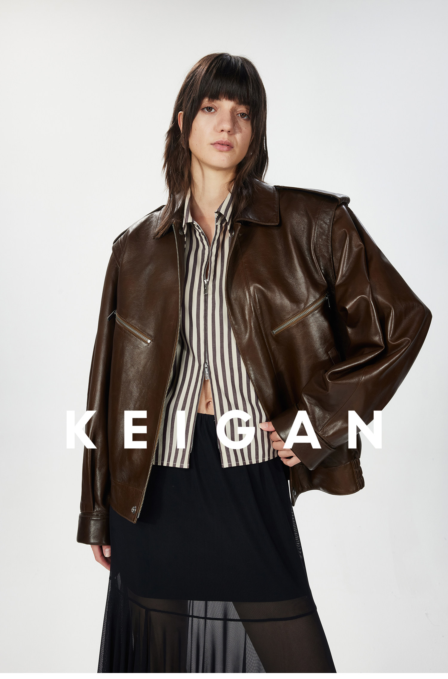 Open-Style/Modern Show Light and Flexible Oil-Waxed Lambskin Deconstructed Fashionable Lapel Silhouette Jacket