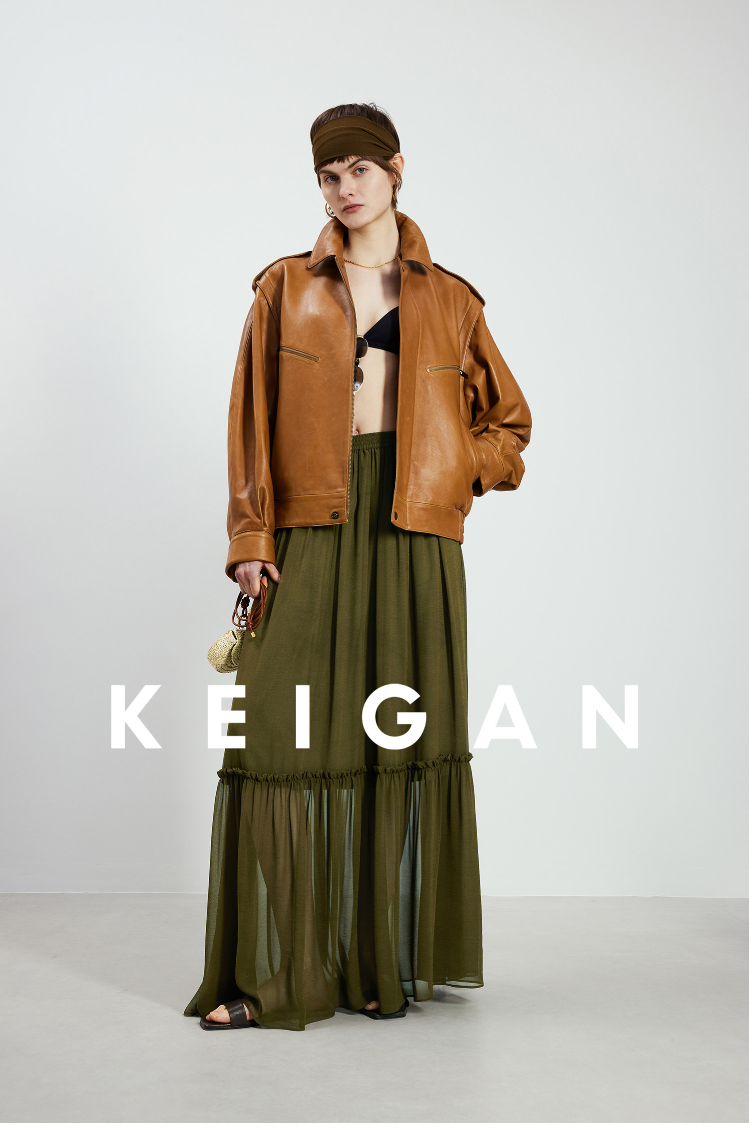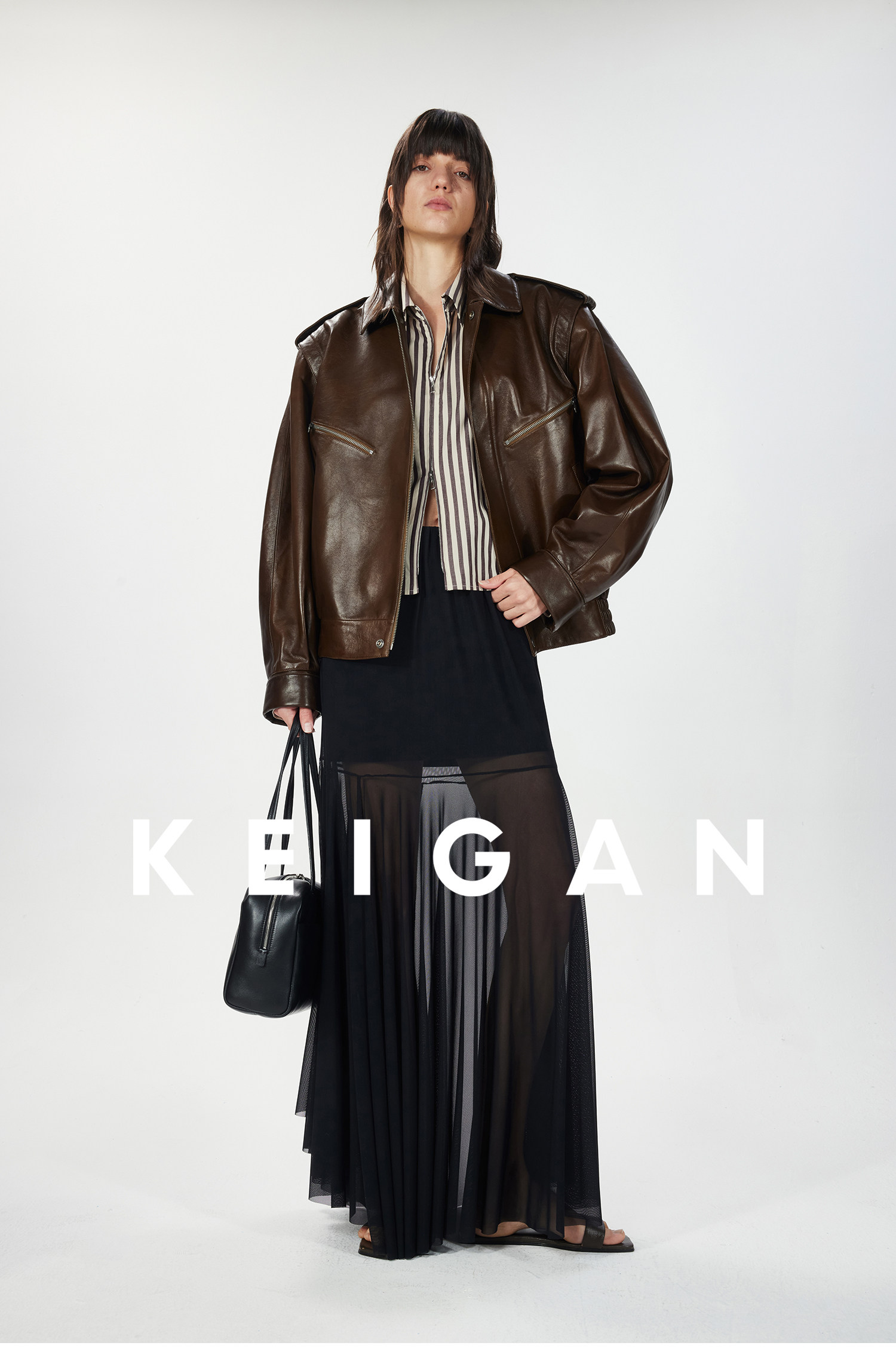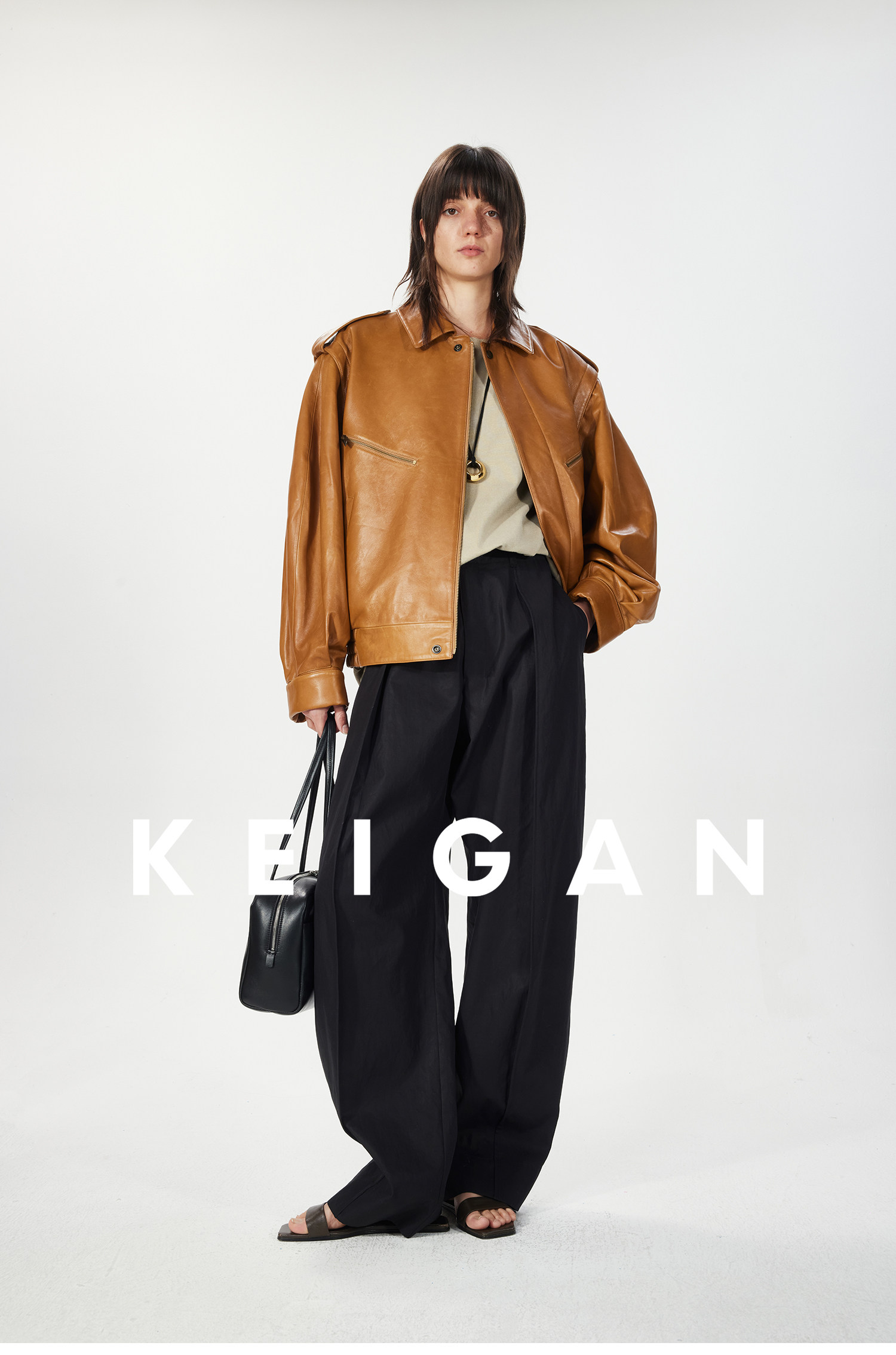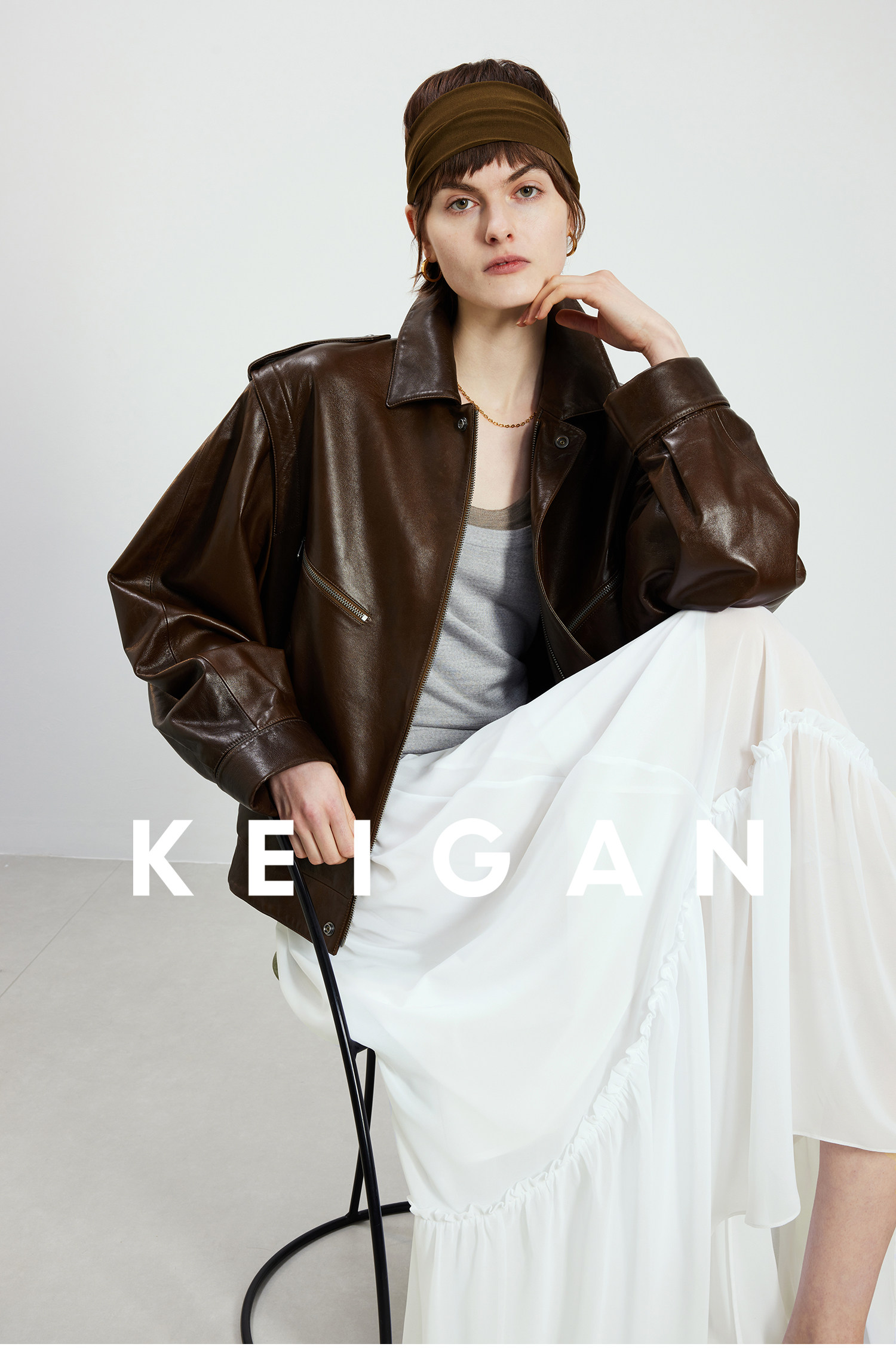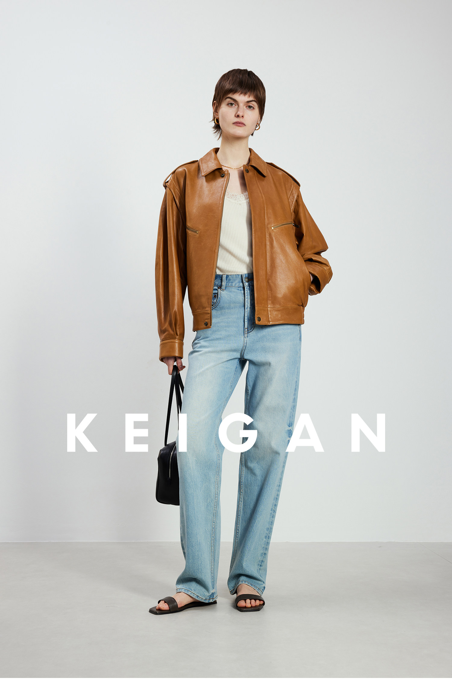 Open-Style/Modern Show Light and Flexible Oil-Waxed Lambskin Deconstructed Fashionable Lapel Silhouette Jacket