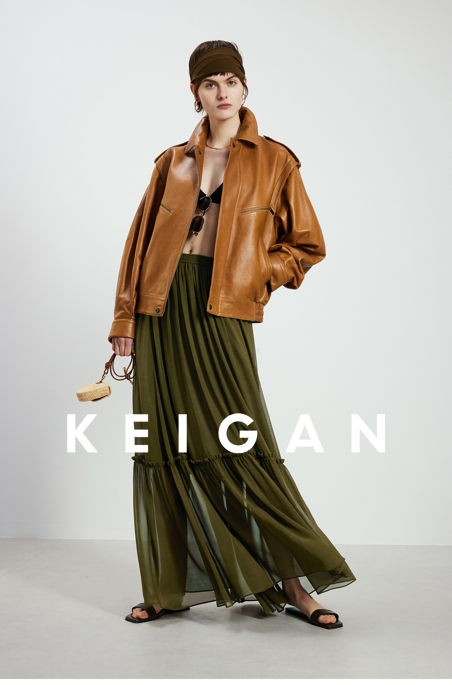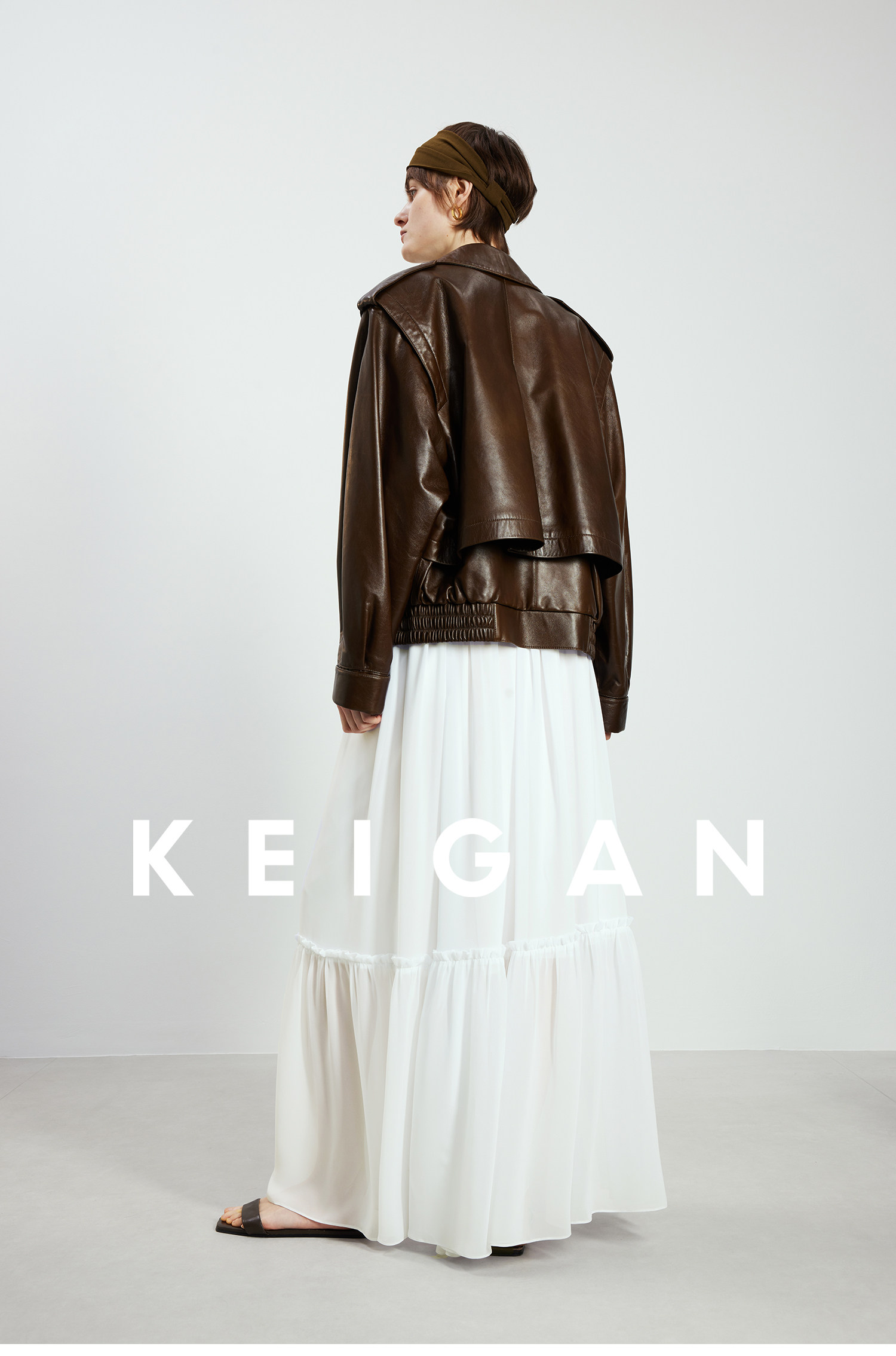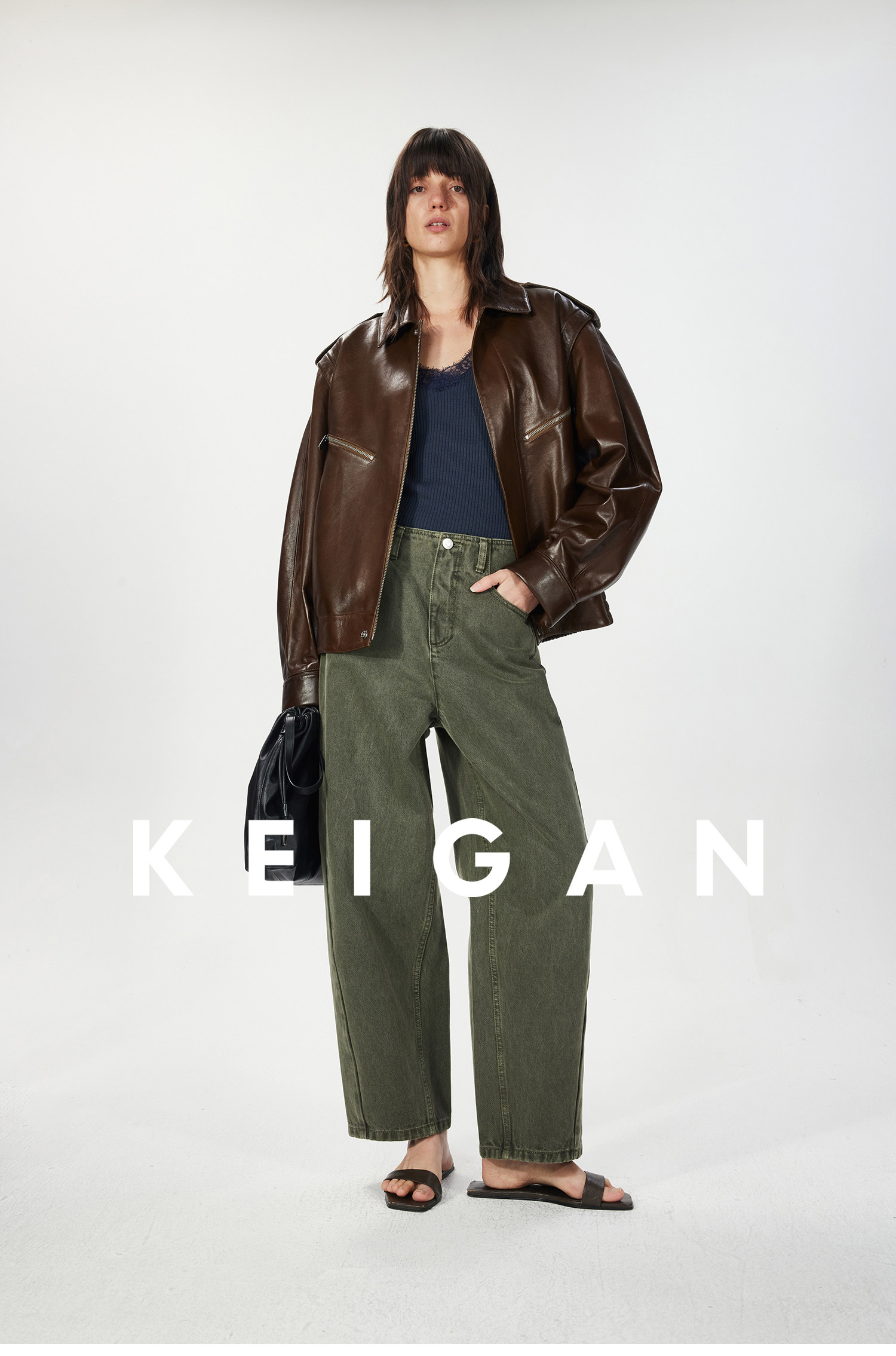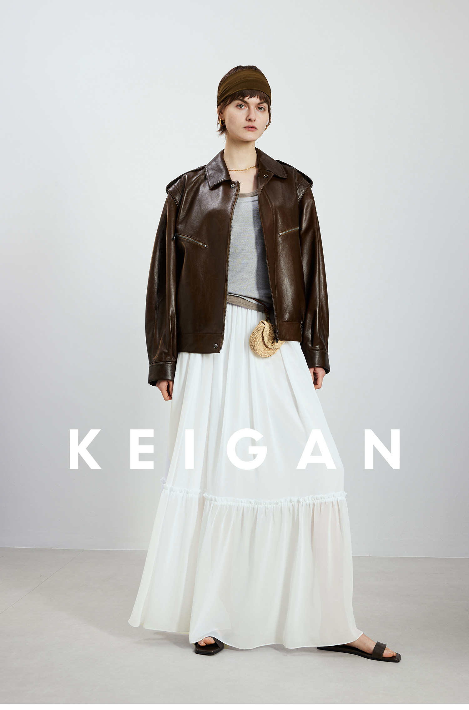 Open-Style/Modern Show Light and Flexible Oil-Waxed Lambskin Deconstructed Fashionable Lapel Silhouette Jacket
