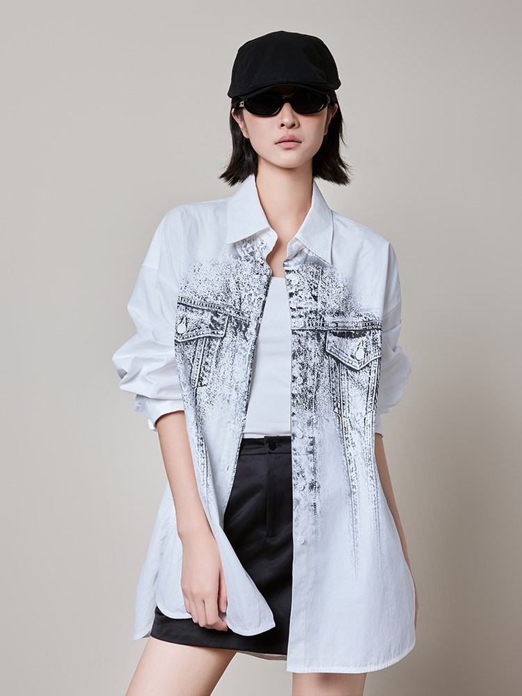 Meiyang【In Stock】Mirage Shirt Backstreet Girls All-Cotton Vintage Print Casual Shirt