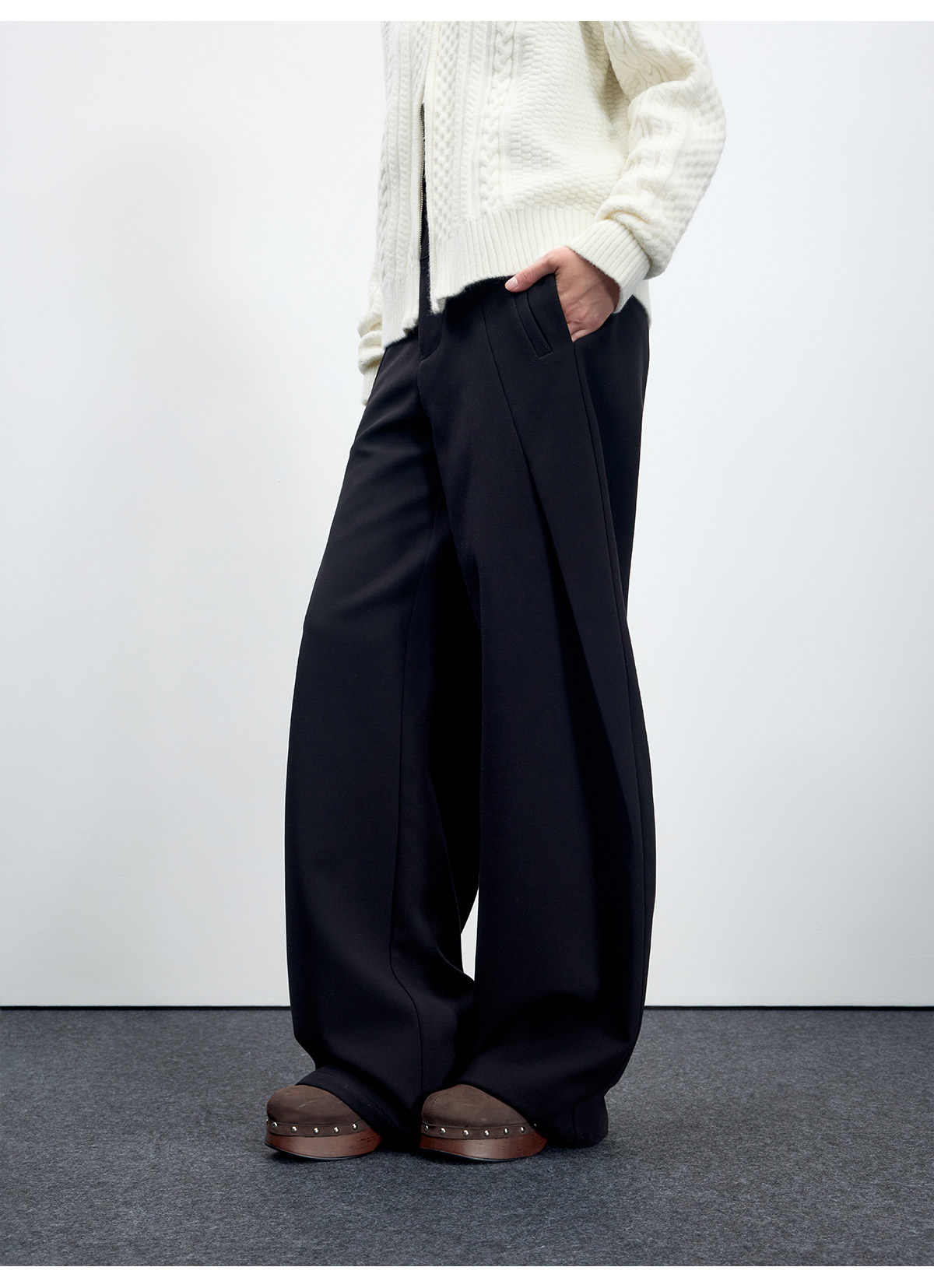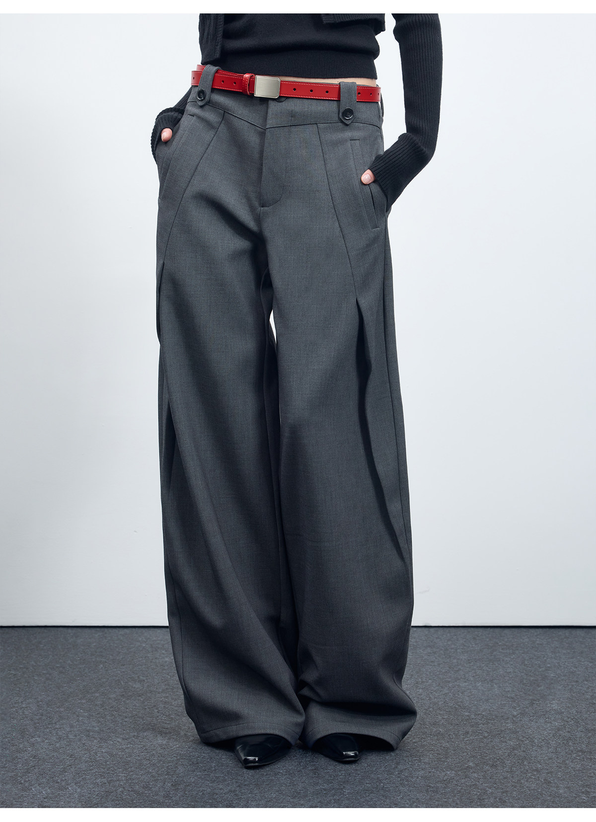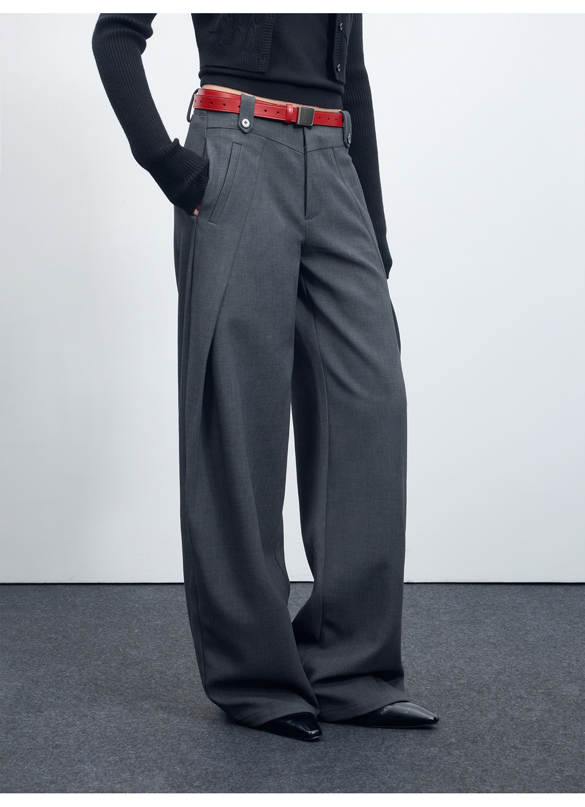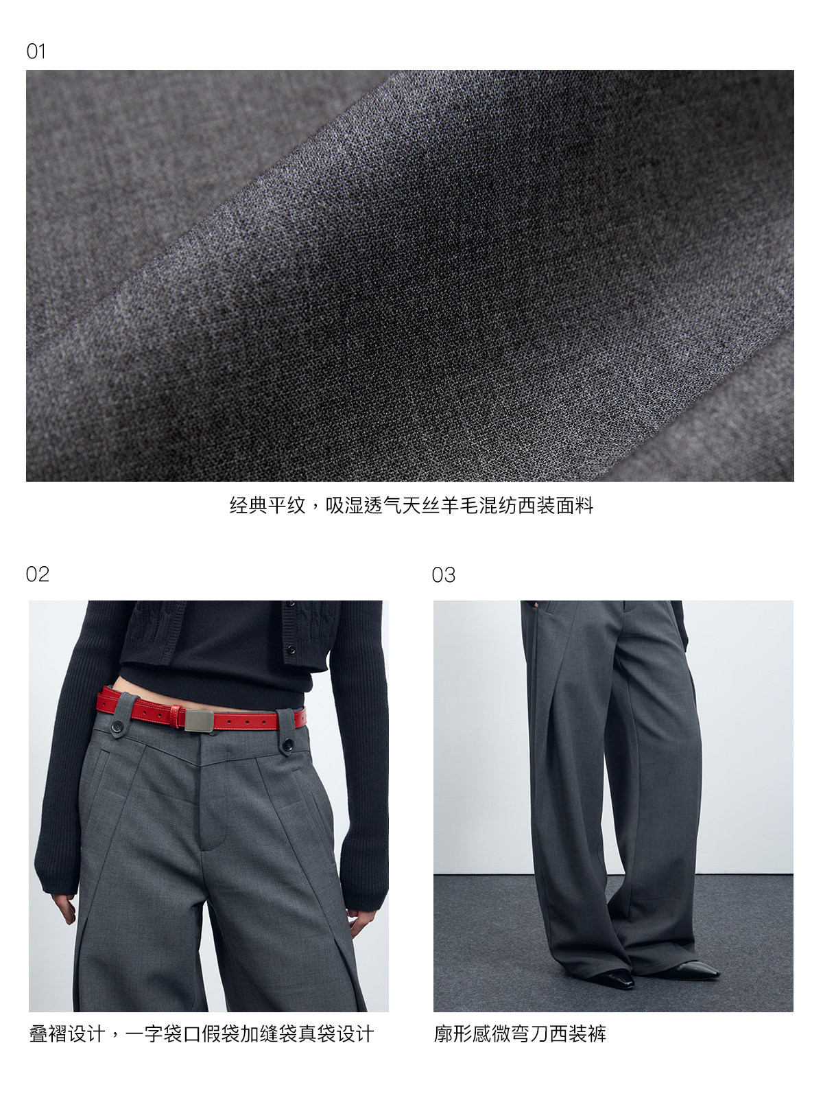 Escape from Chigang West Wool-Blend Silhouette Gray Micro-Curved Knife-Cut Suit Pants for Women, Autumn and Winter Wide-Leg Casual Pants