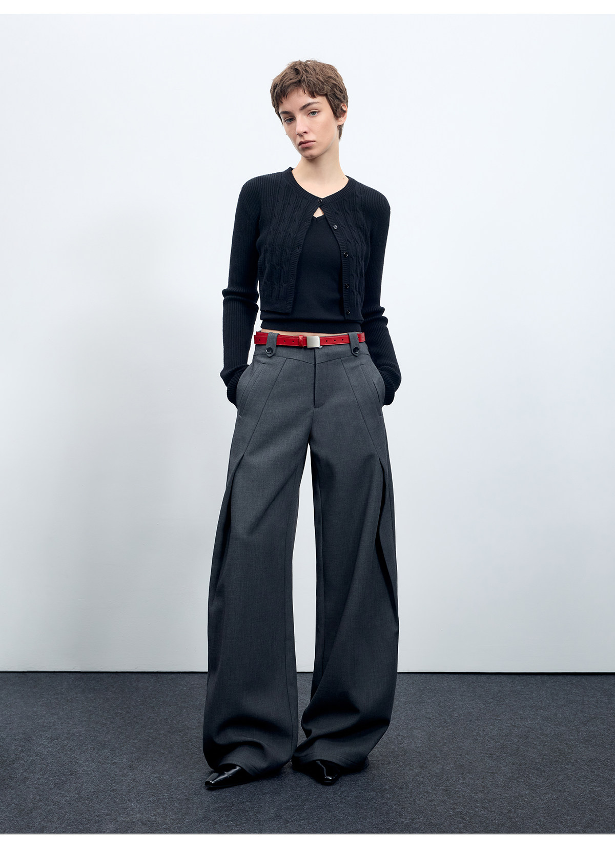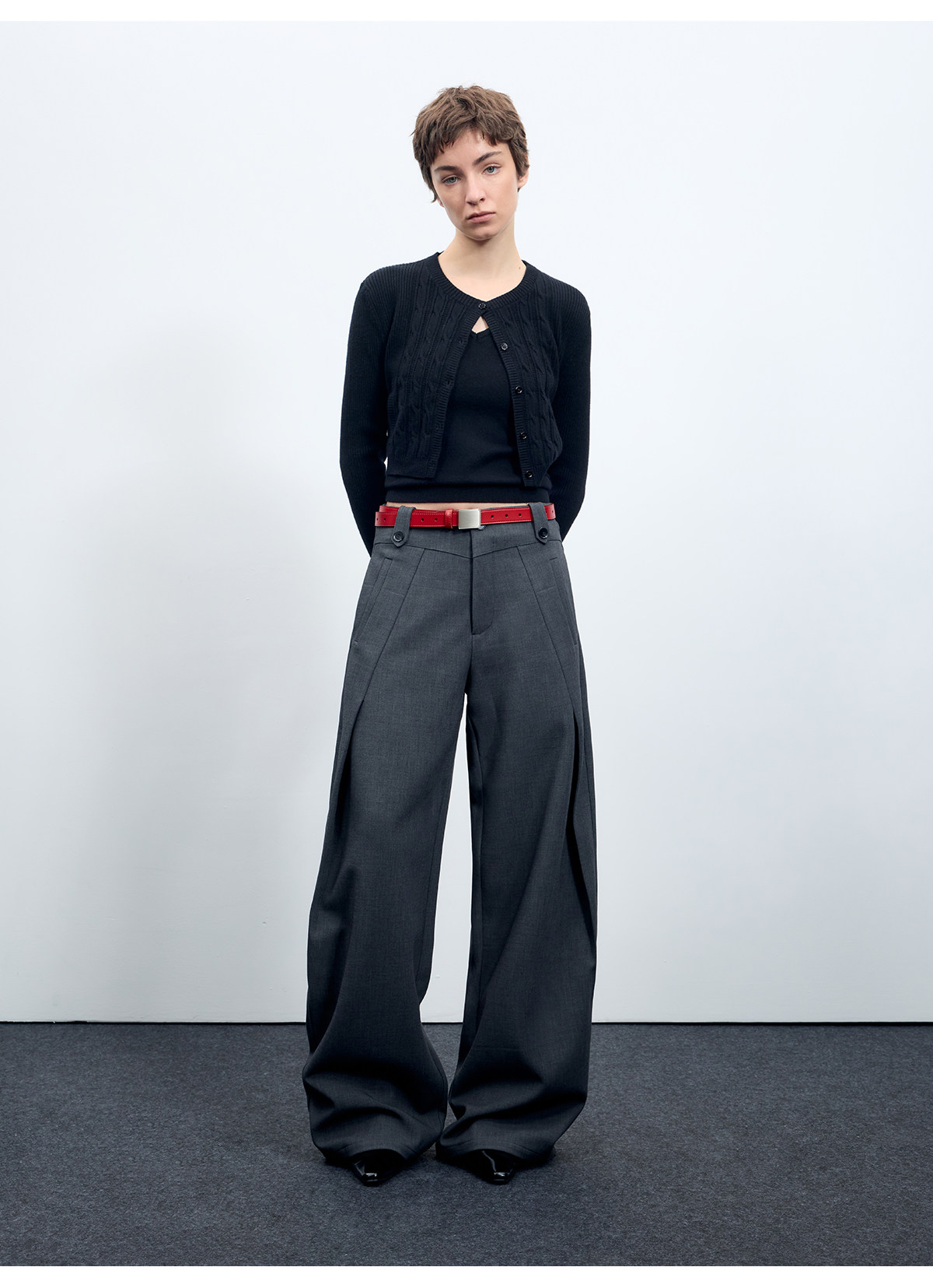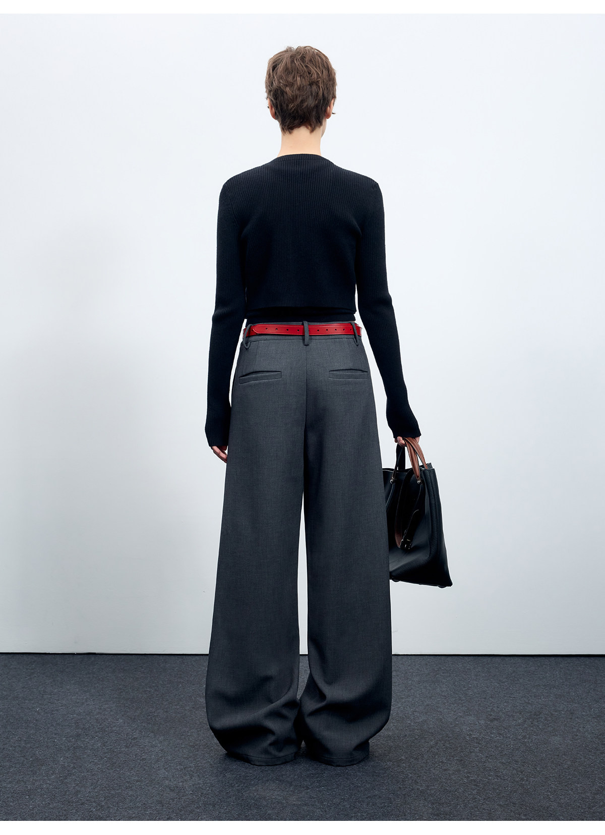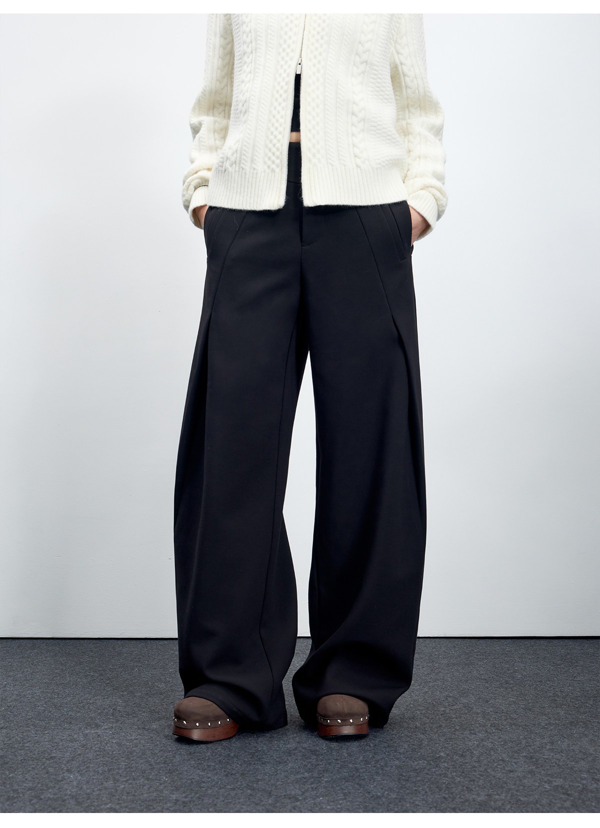 Escape from Chigang West Wool-Blend Silhouette Gray Micro-Curved Knife-Cut Suit Pants for Women, Autumn and Winter Wide-Leg Casual Pants