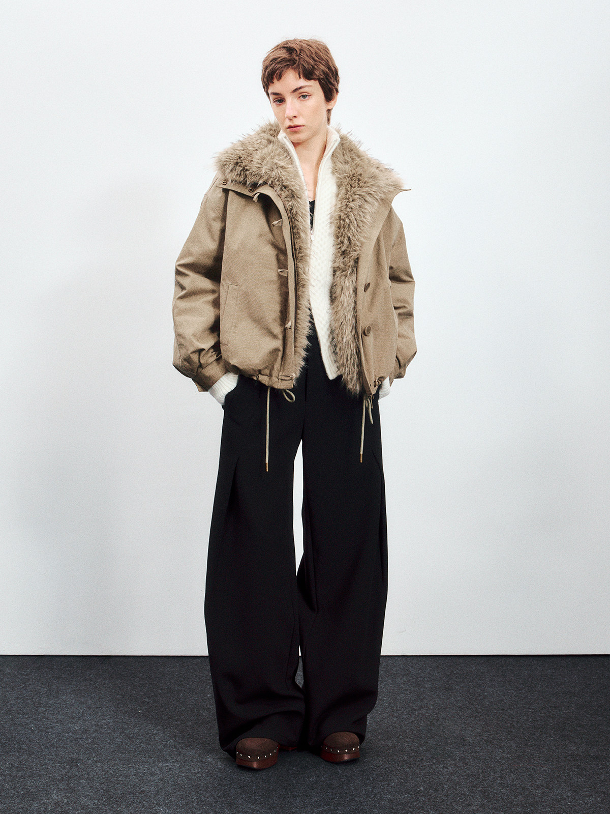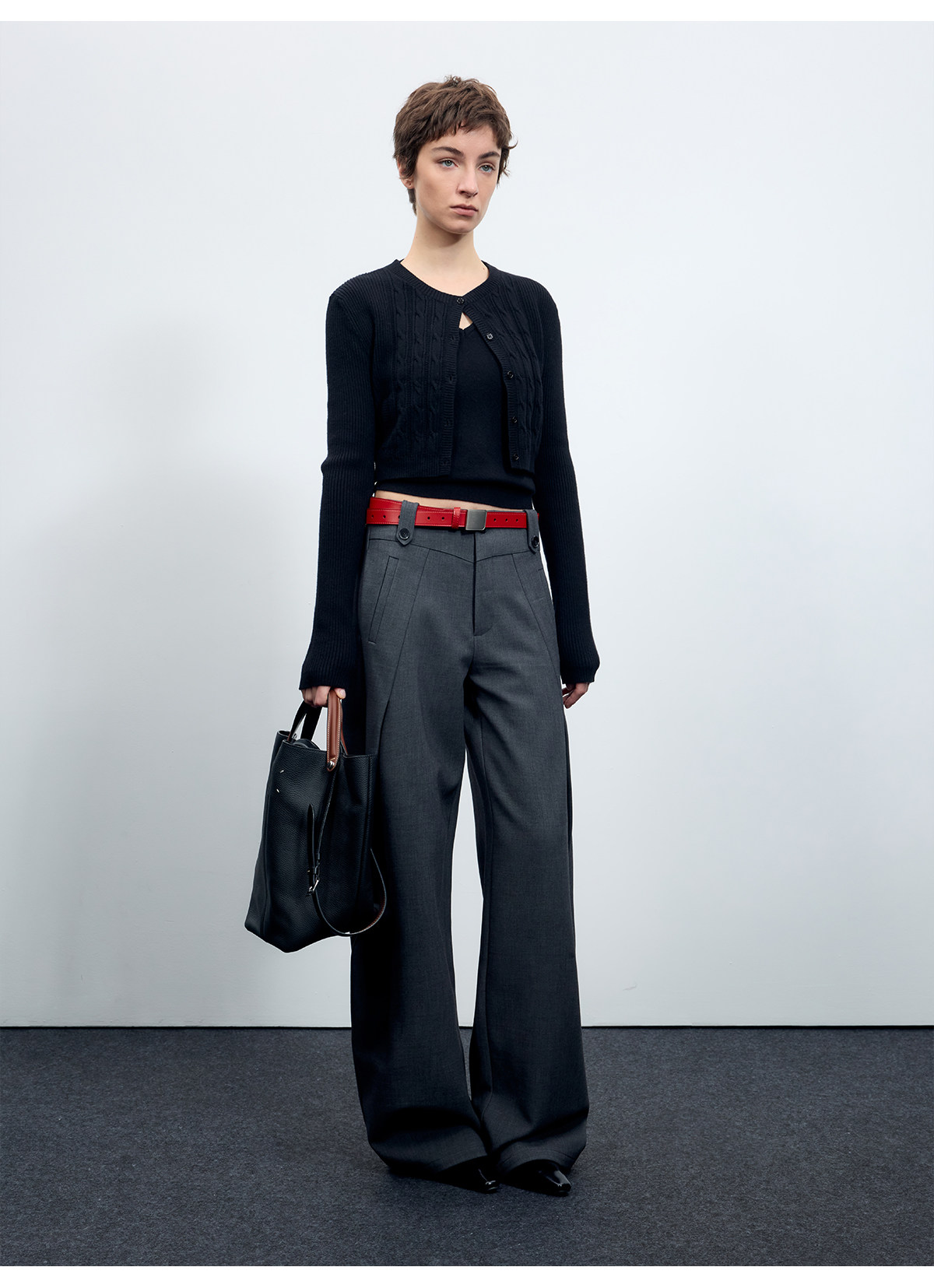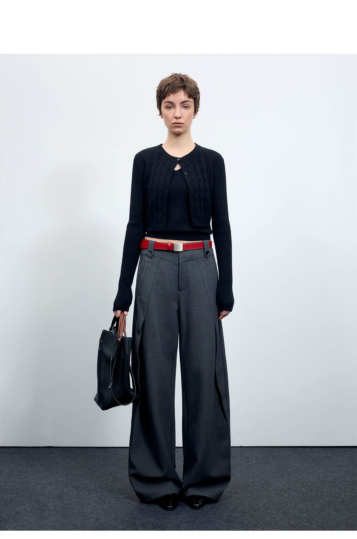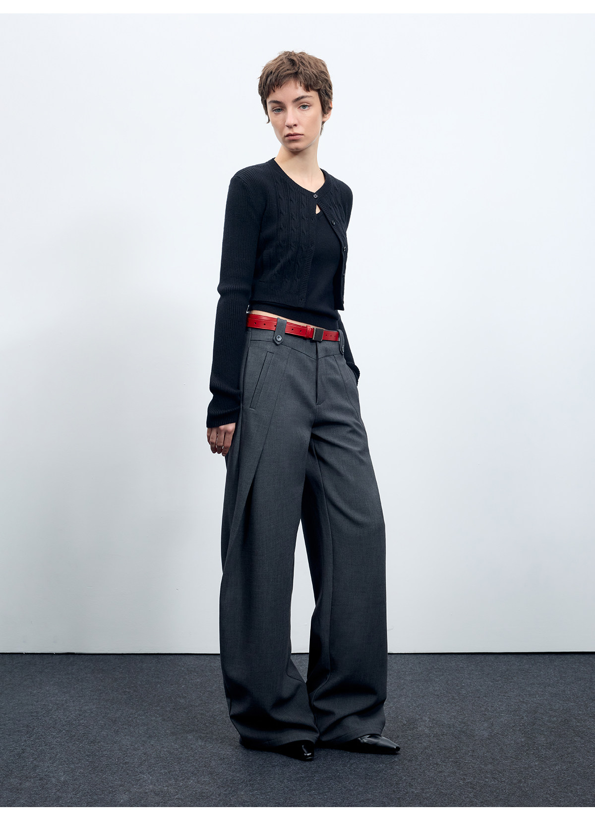 Escape from Chigang West Wool-Blend Silhouette Gray Micro-Curved Knife-Cut Suit Pants for Women, Autumn and Winter Wide-Leg Casual Pants