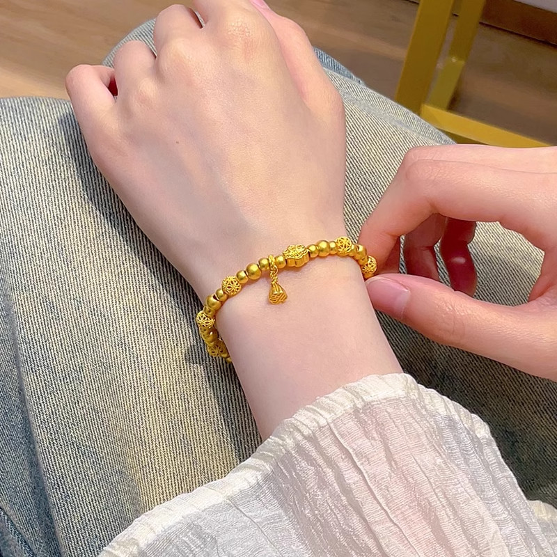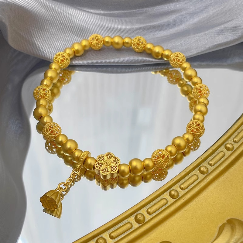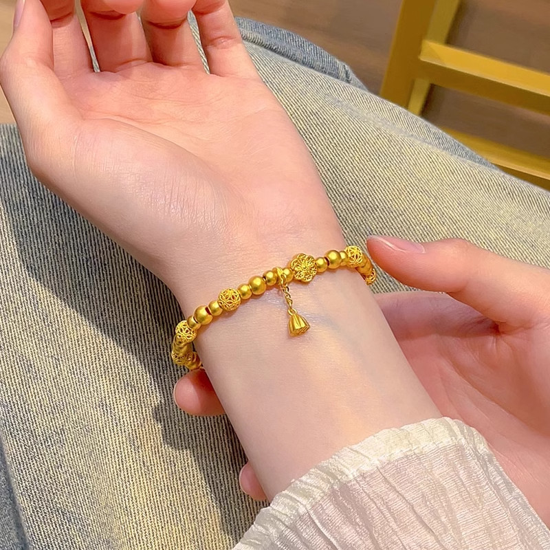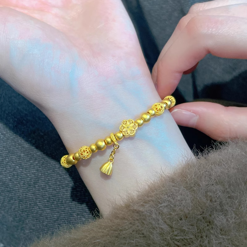 Rui Nuo Gold Six-Phase Flower Fortune Bracelet for Women, Same Style as Yang Mi, 999 Pure Gold Two-Generation Happiness Transfer Bead Bracelet
