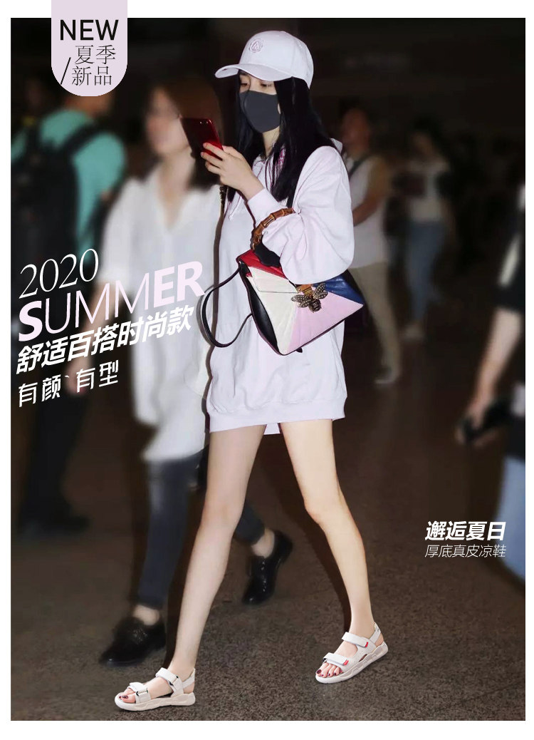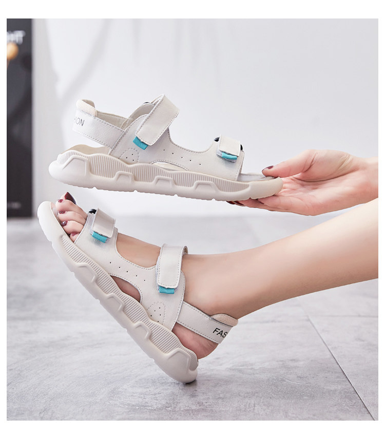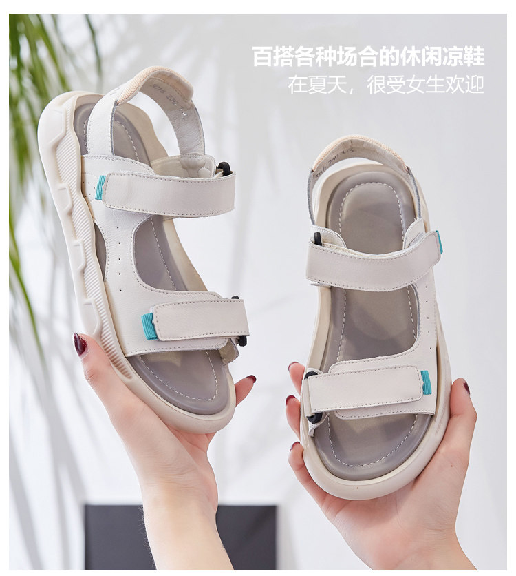 Genuine Leather Sandals for Women 2025 Summer New Style Outer Wear Soft Sole Lightweight and Comfortable Cowhide Sports Casual Flats Shoes for Pregnant Women