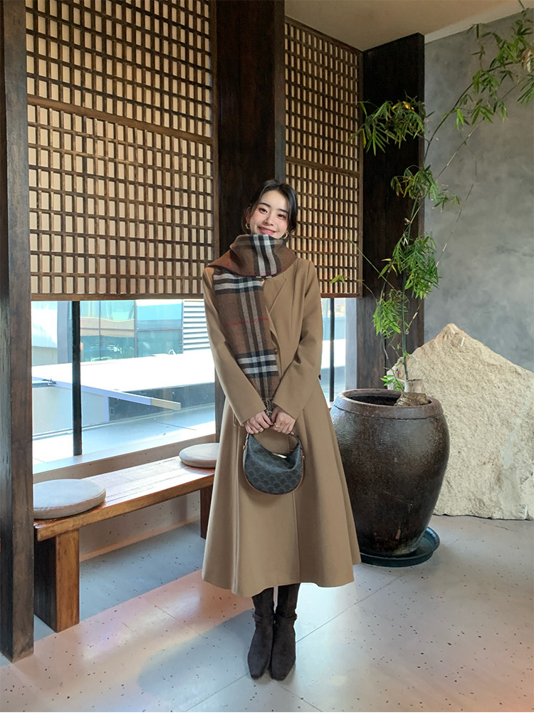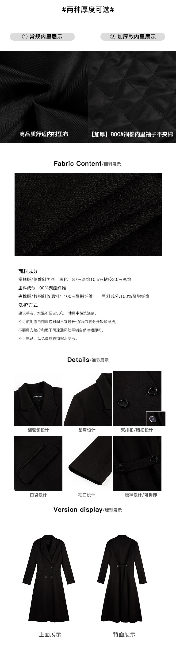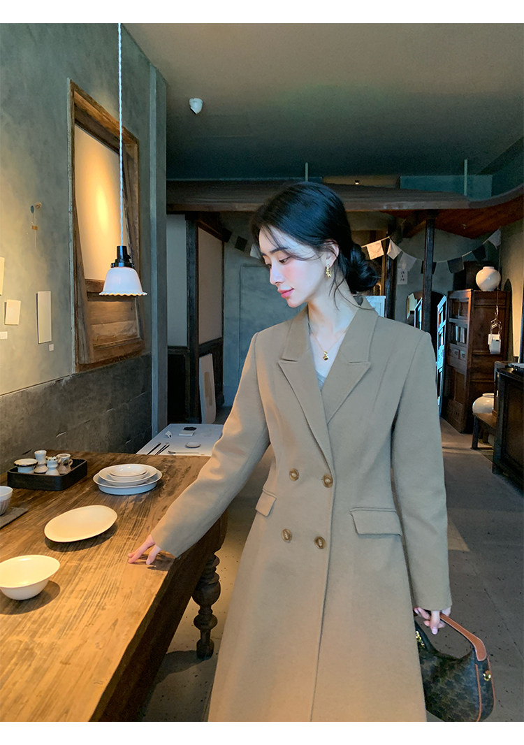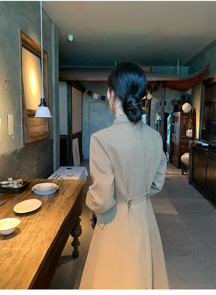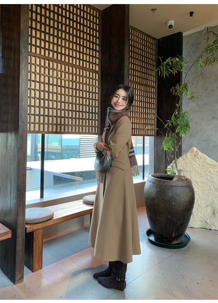 Pusumede Black Hepburn-Style Woolen Coat for Women, High-End, Waist-Cinching, Slimming, Long, Elegant Woolen Coat